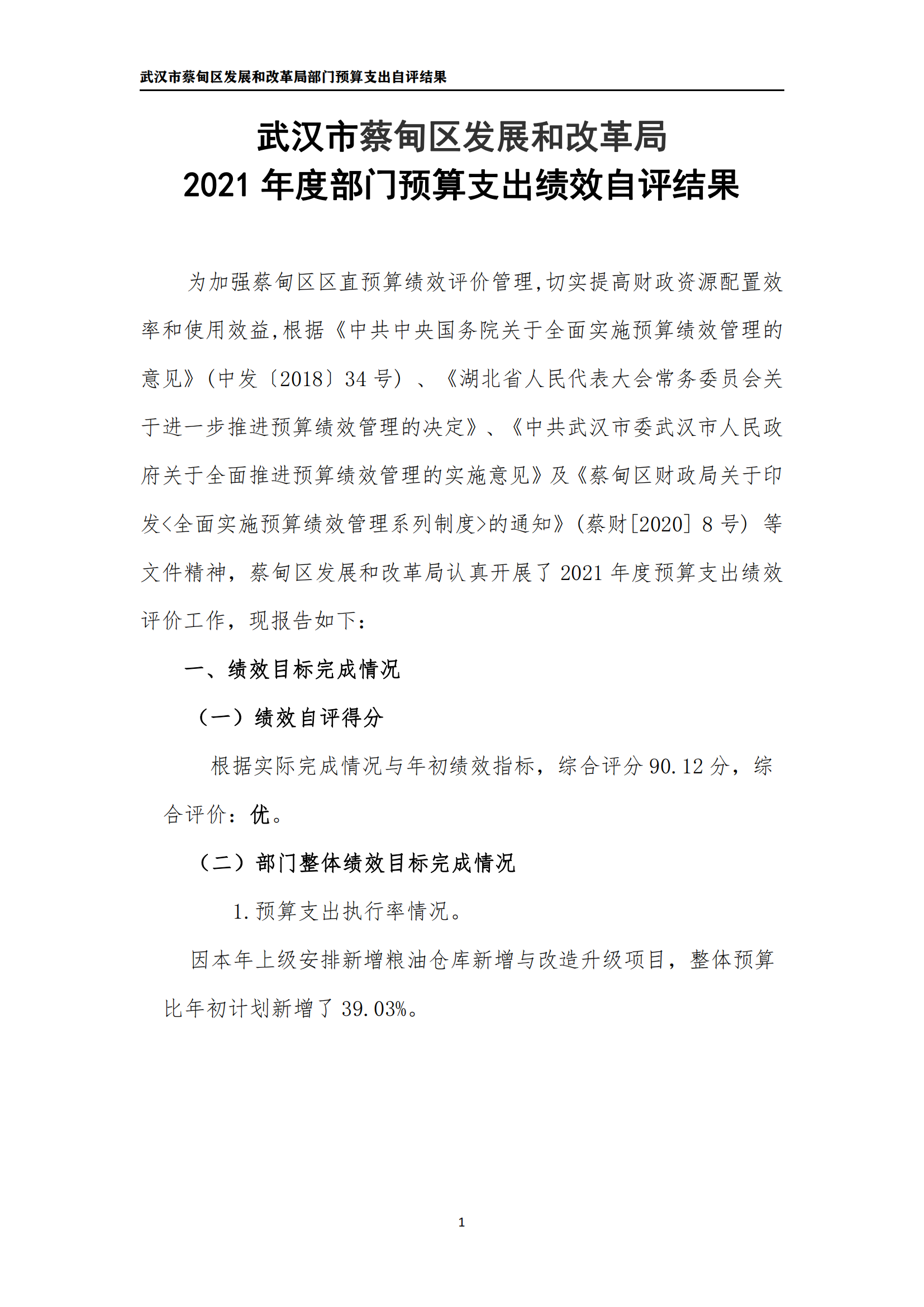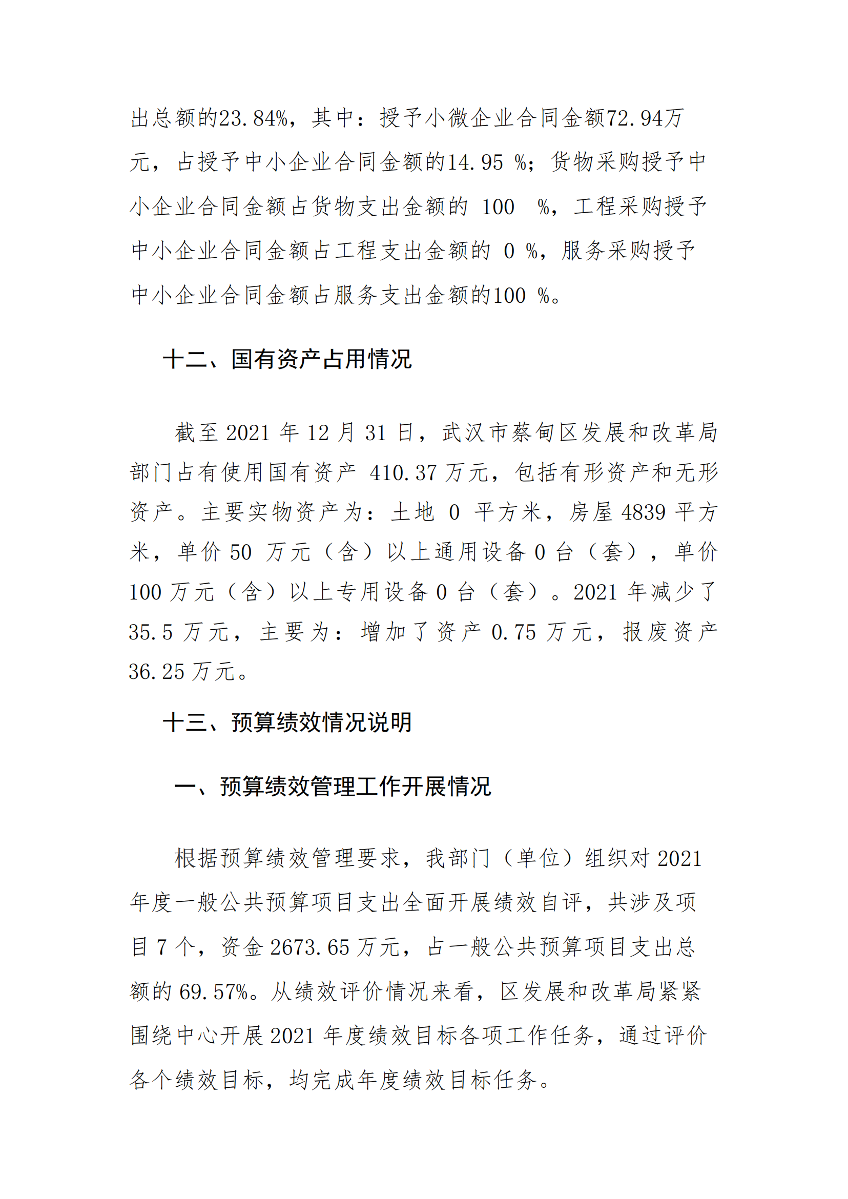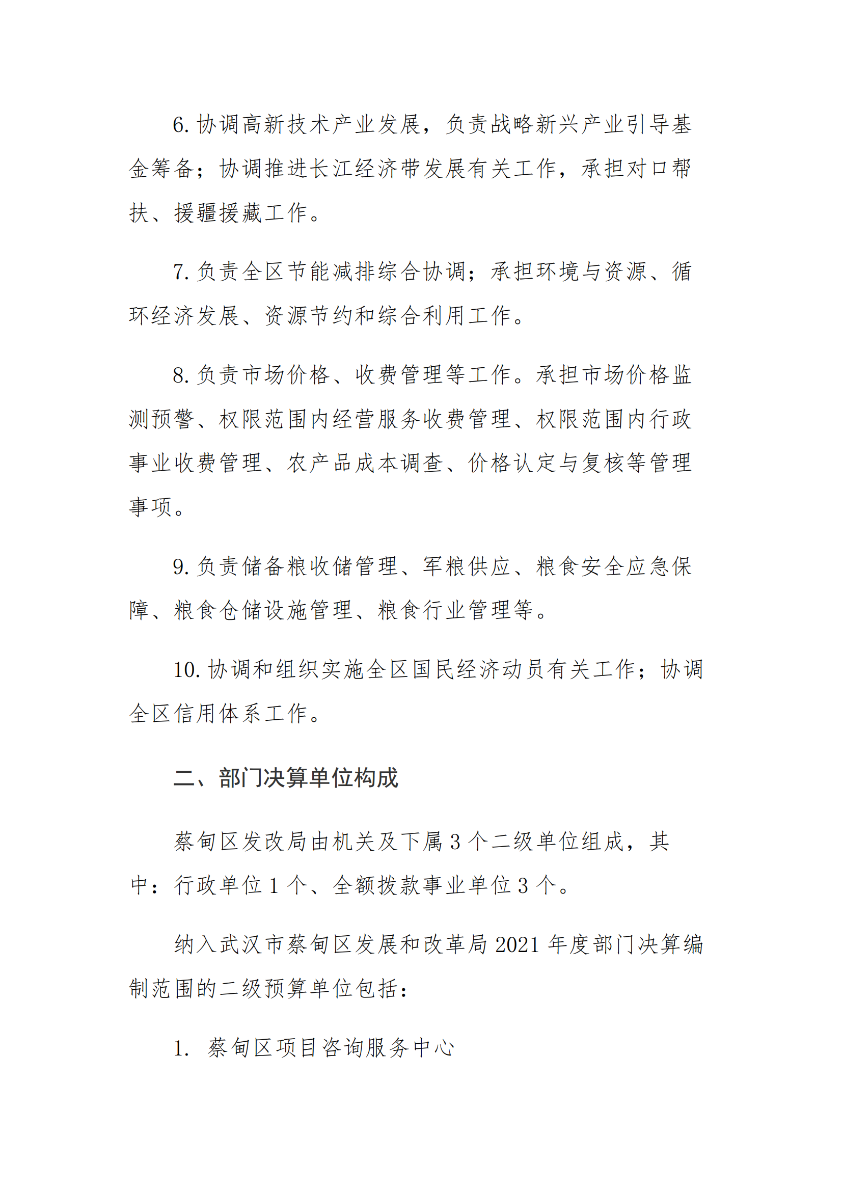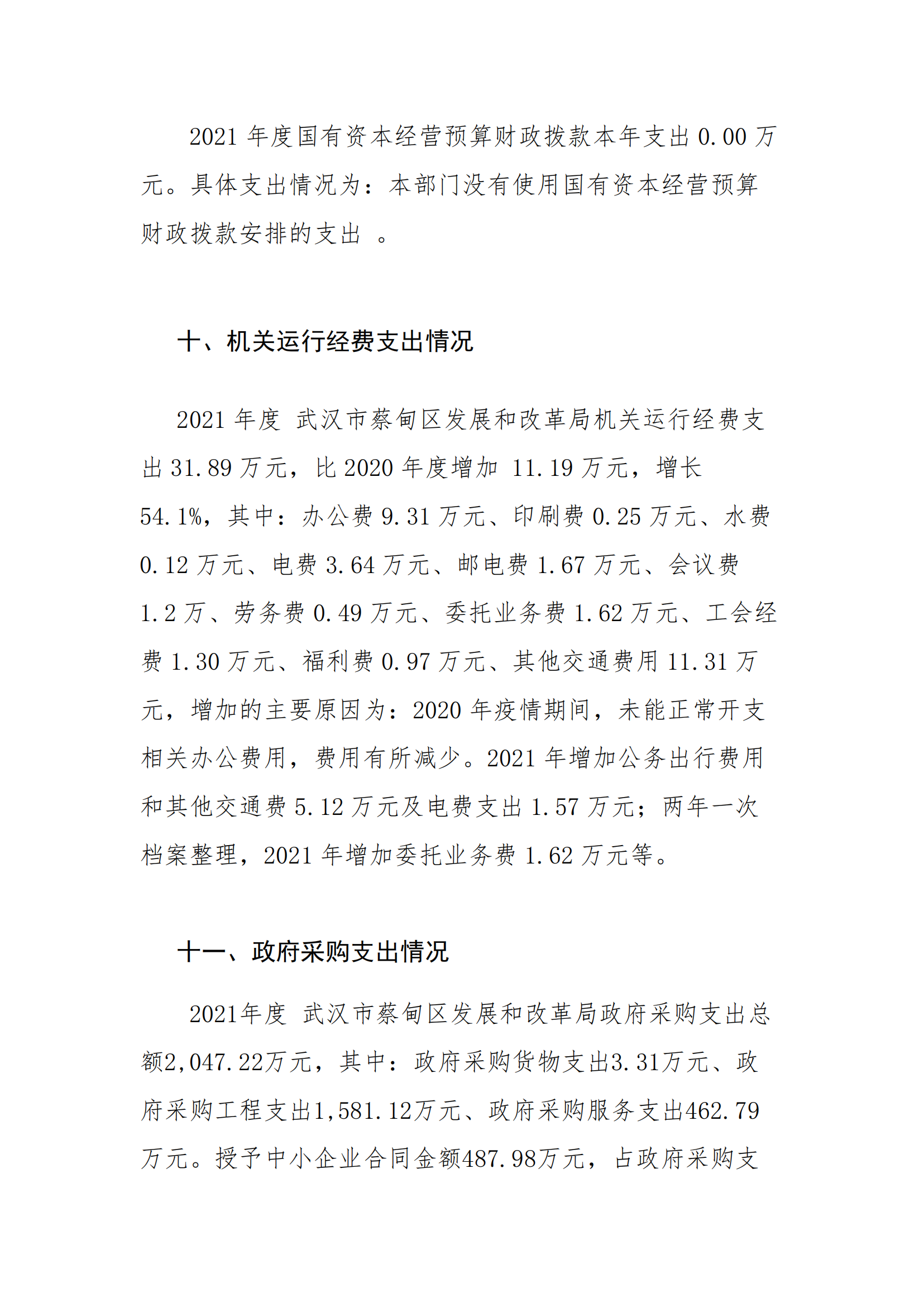 武汉市蔡甸区发展和改革局2021年决算公开