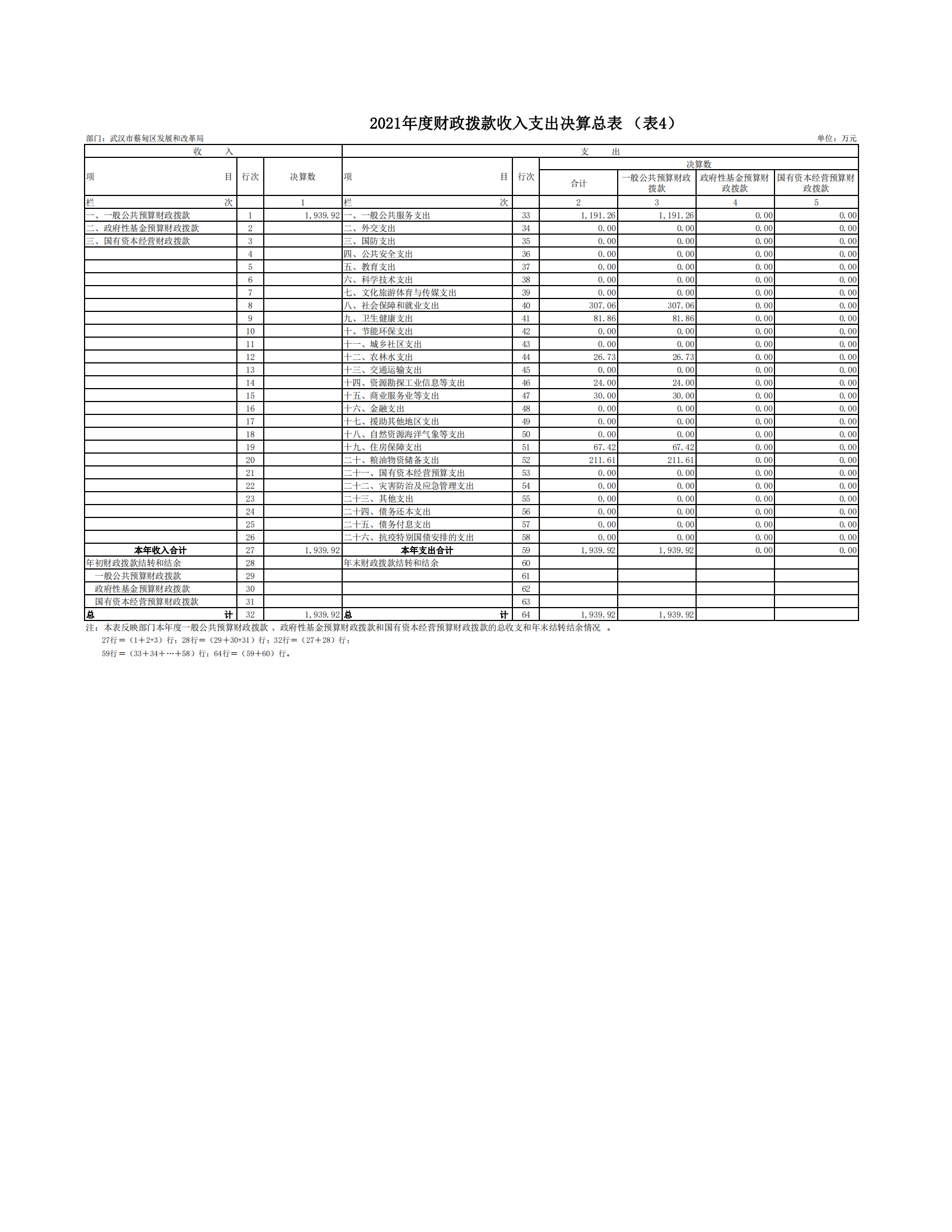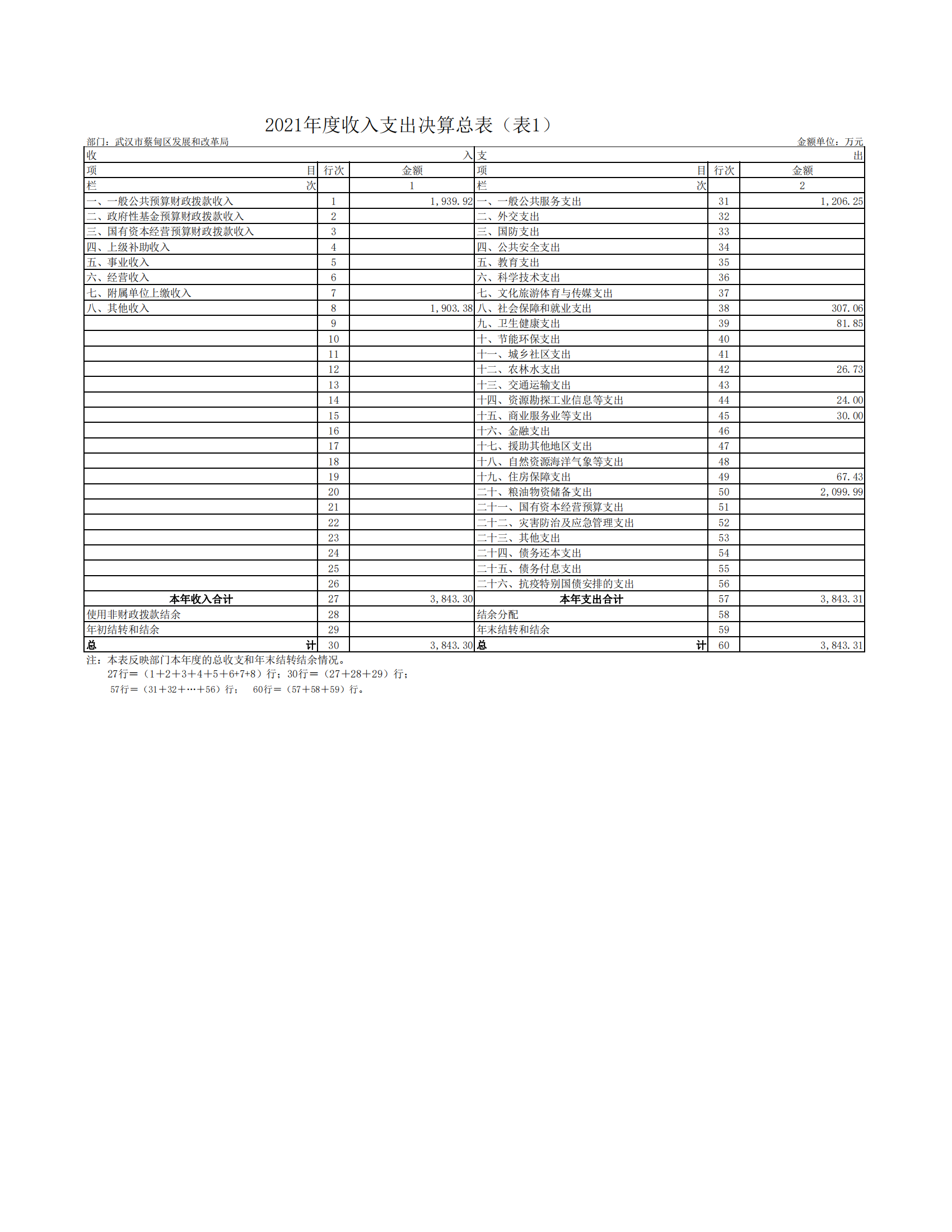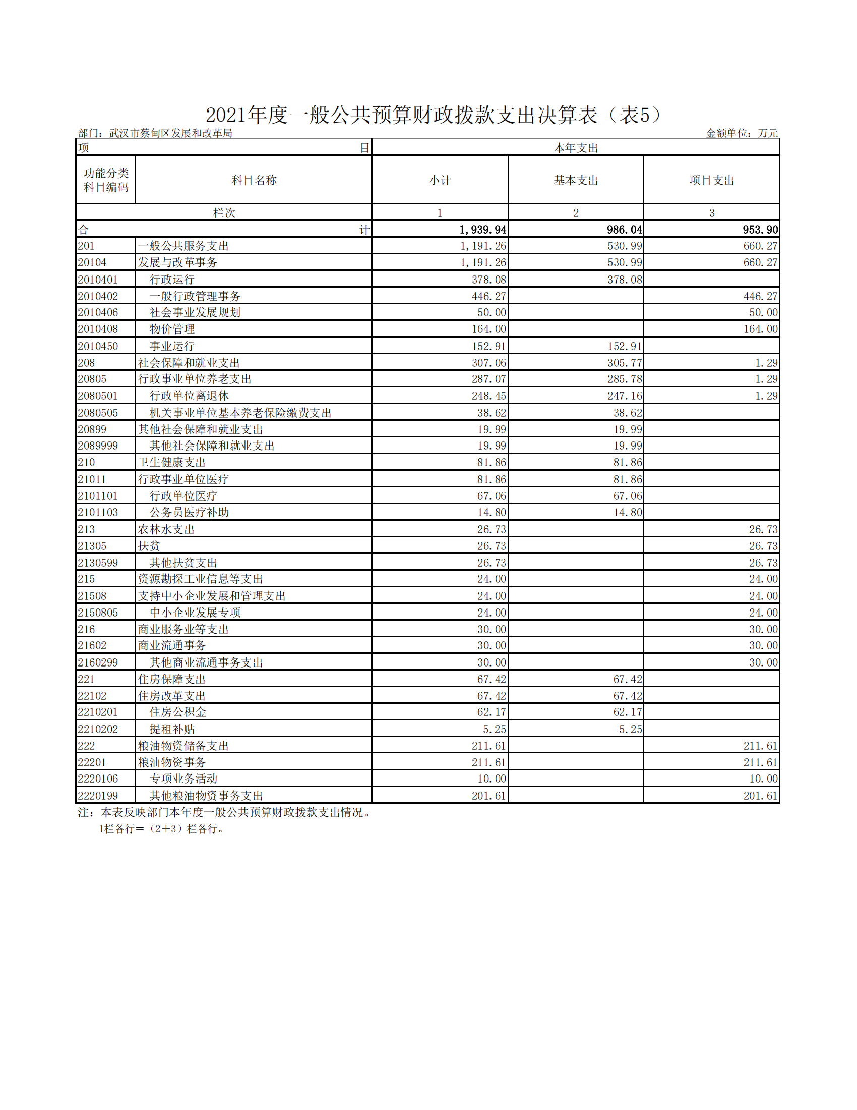 武汉市蔡甸区发展和改革局2021年决算公开