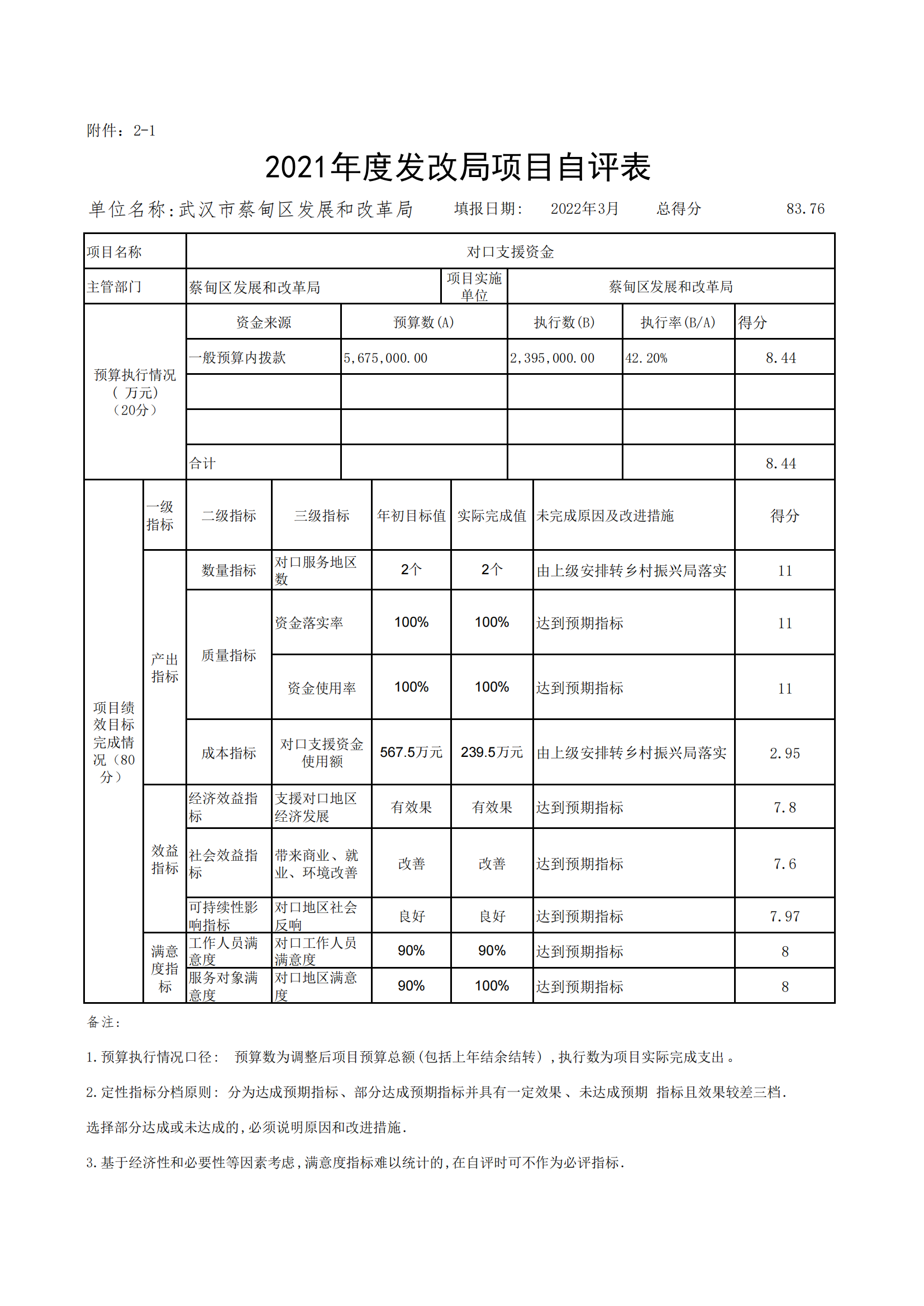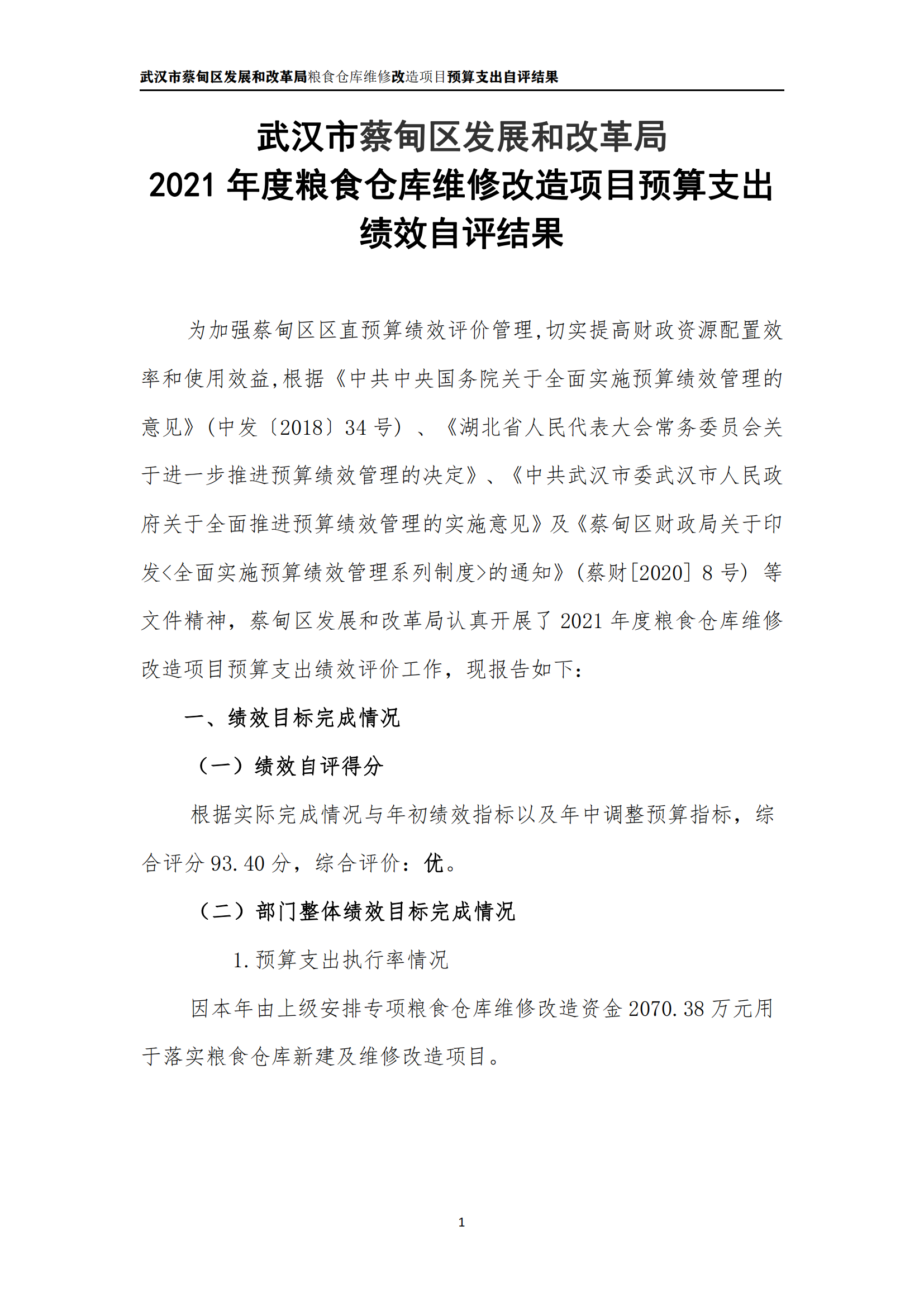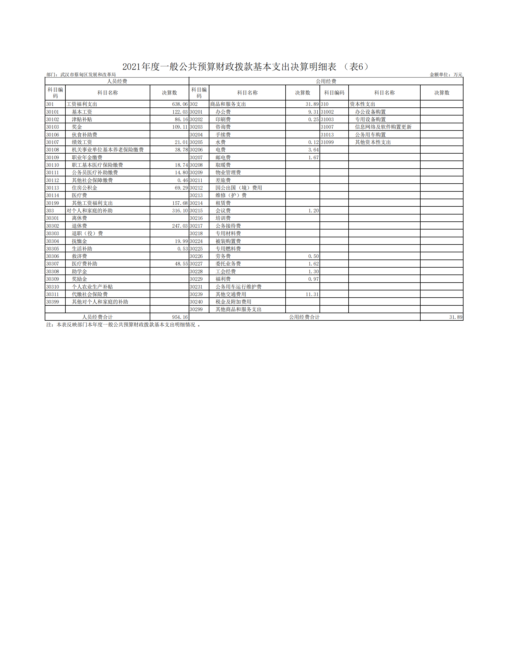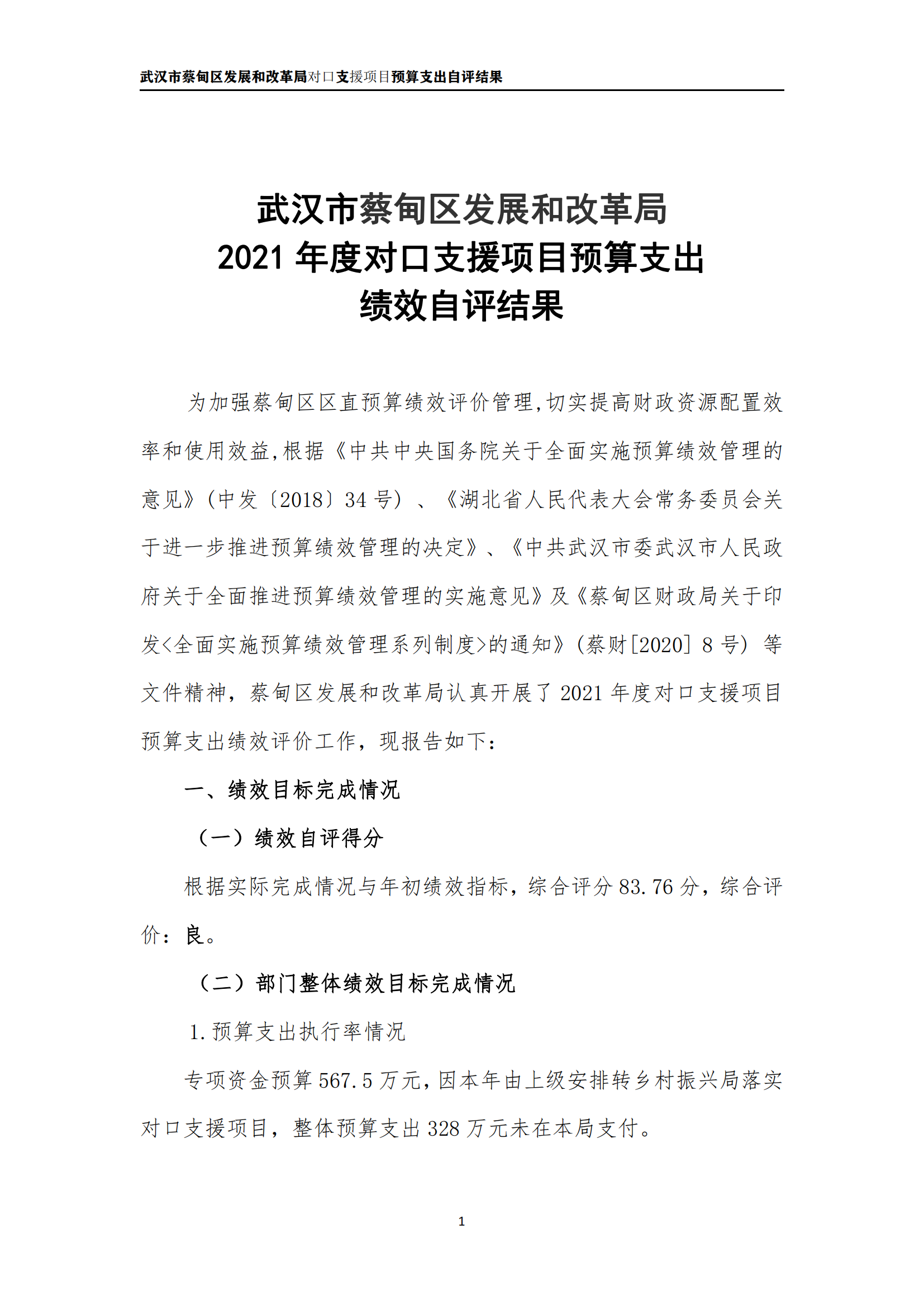 武汉市蔡甸区发展和改革局2021年决算公开