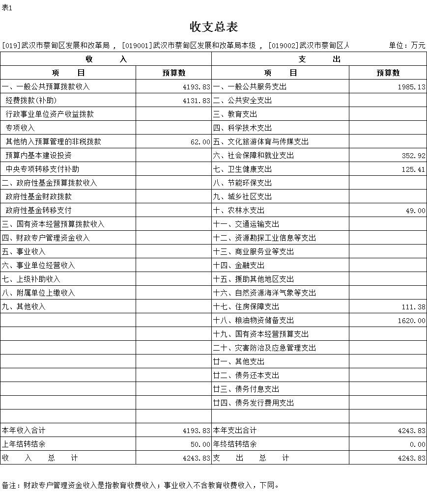 一、部门收支总表