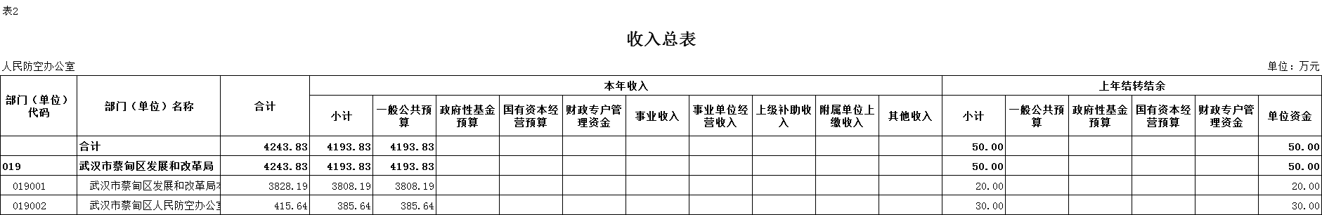 二、部门收入总表
