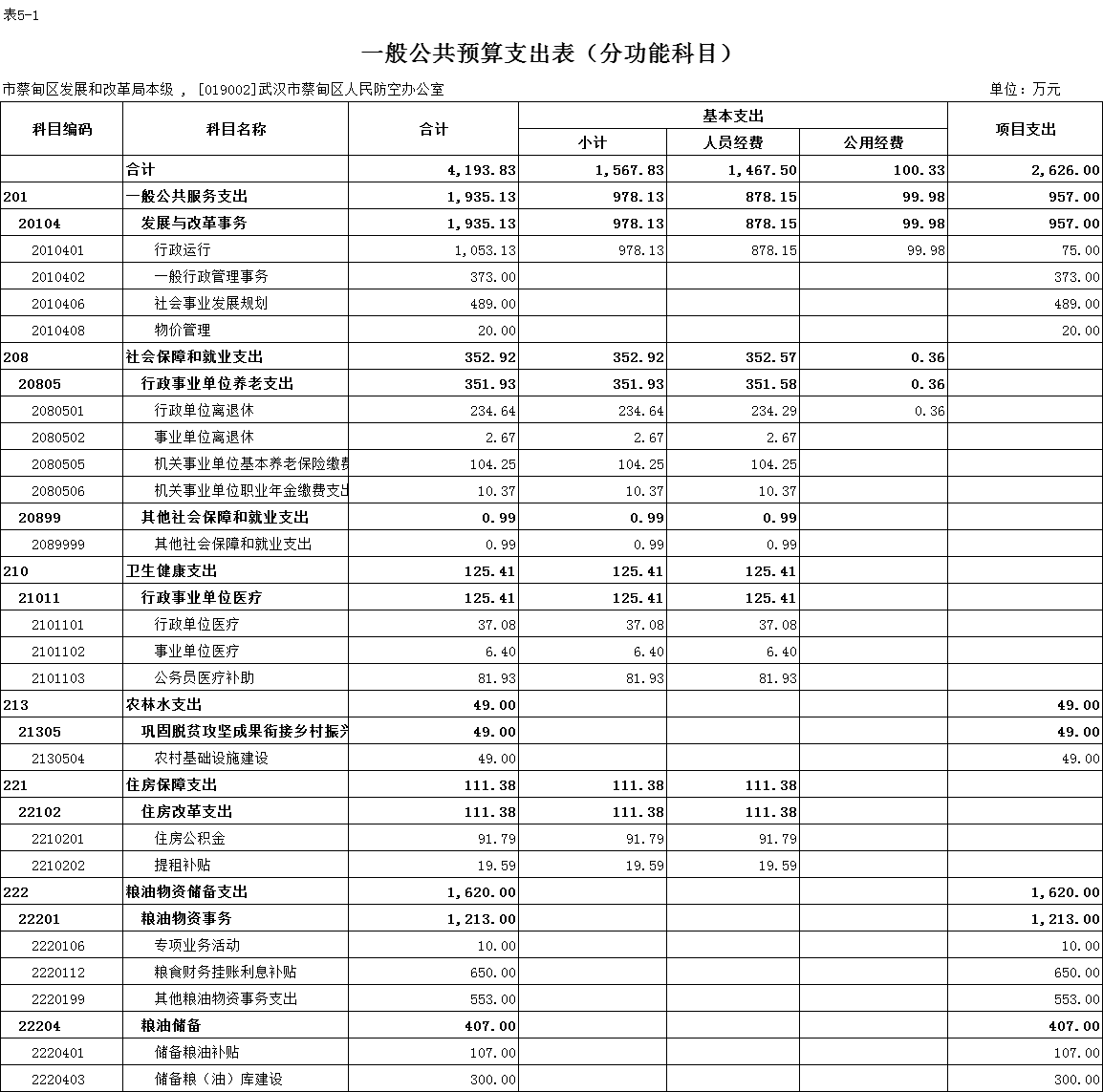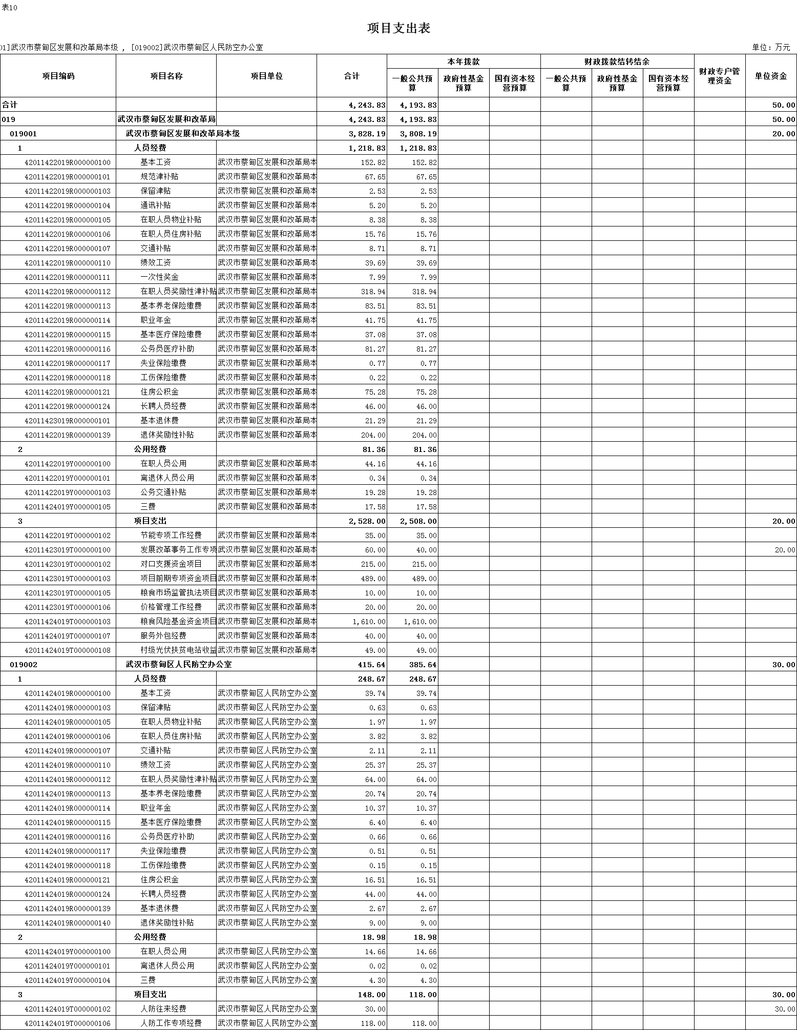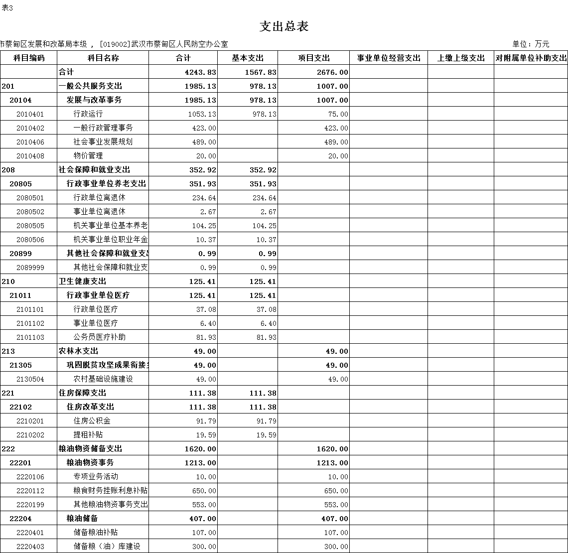 - 部门支出总表