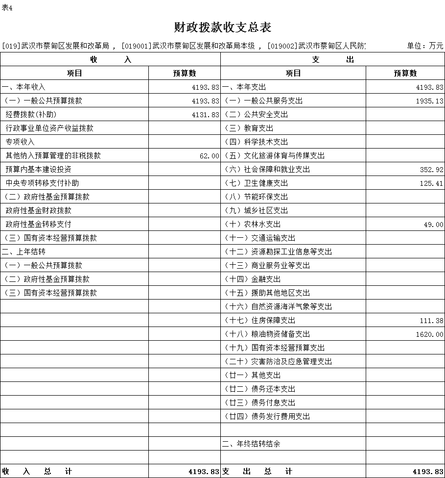 四、财政拨款收支总表