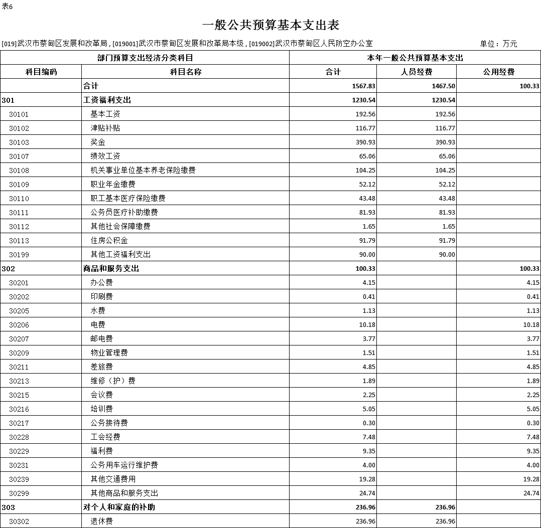六、一般公共预算基本支出表