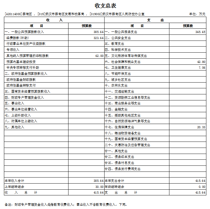 一、部门收支总表