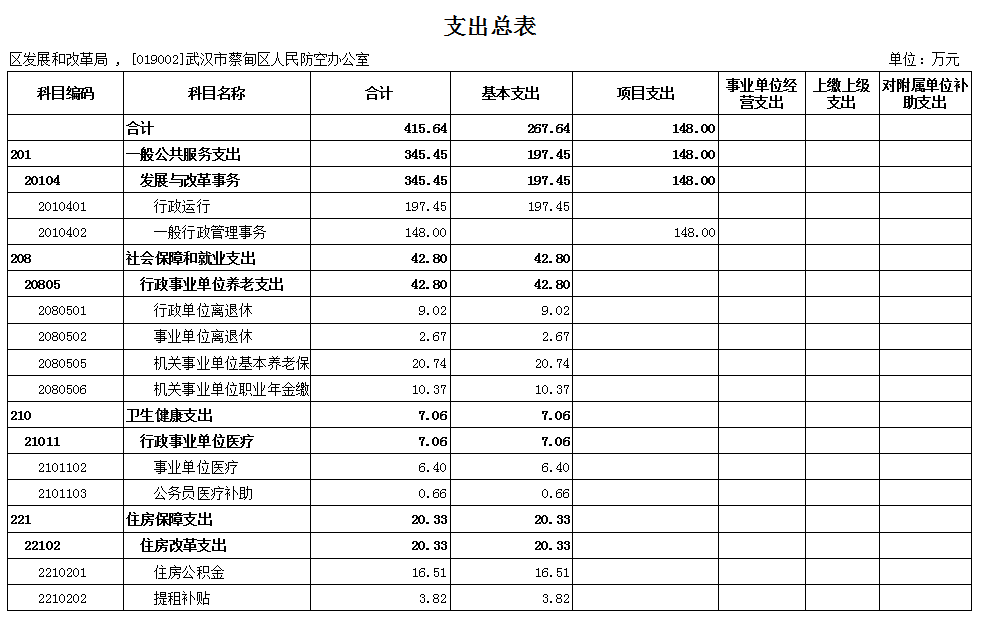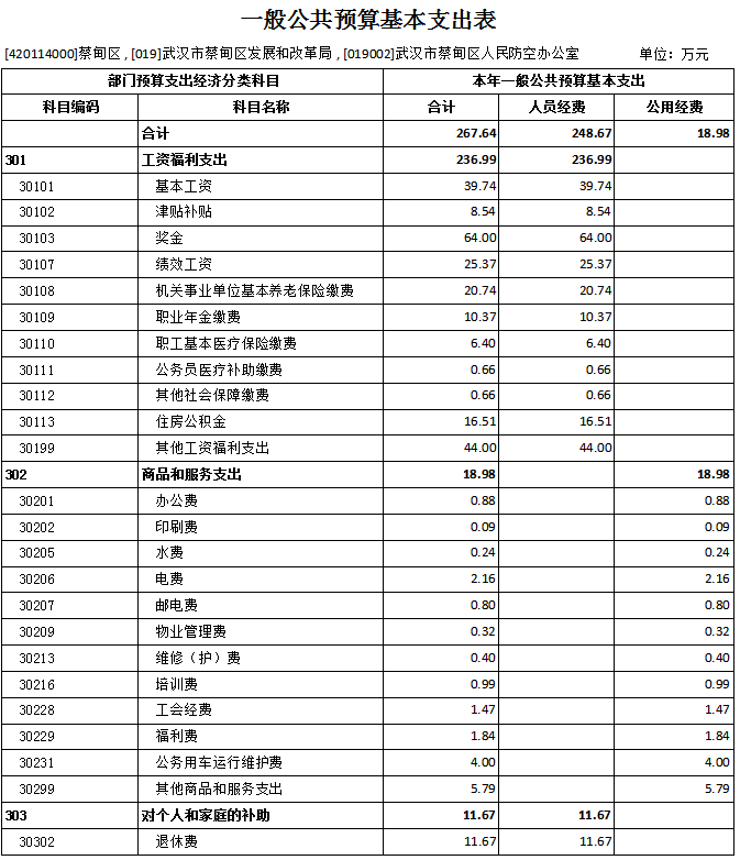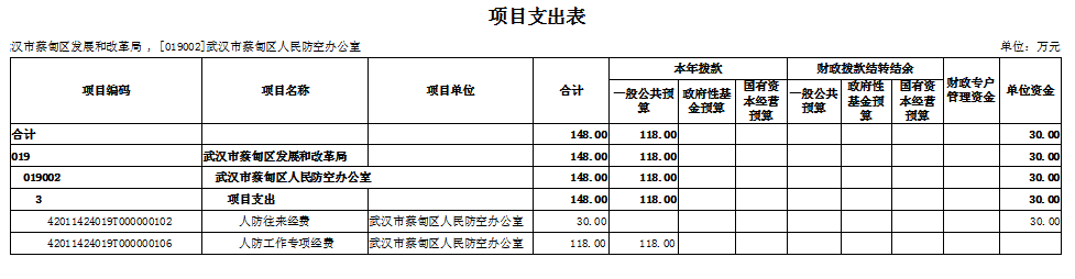 蔡甸区人民防空办公室2024年部门预算表