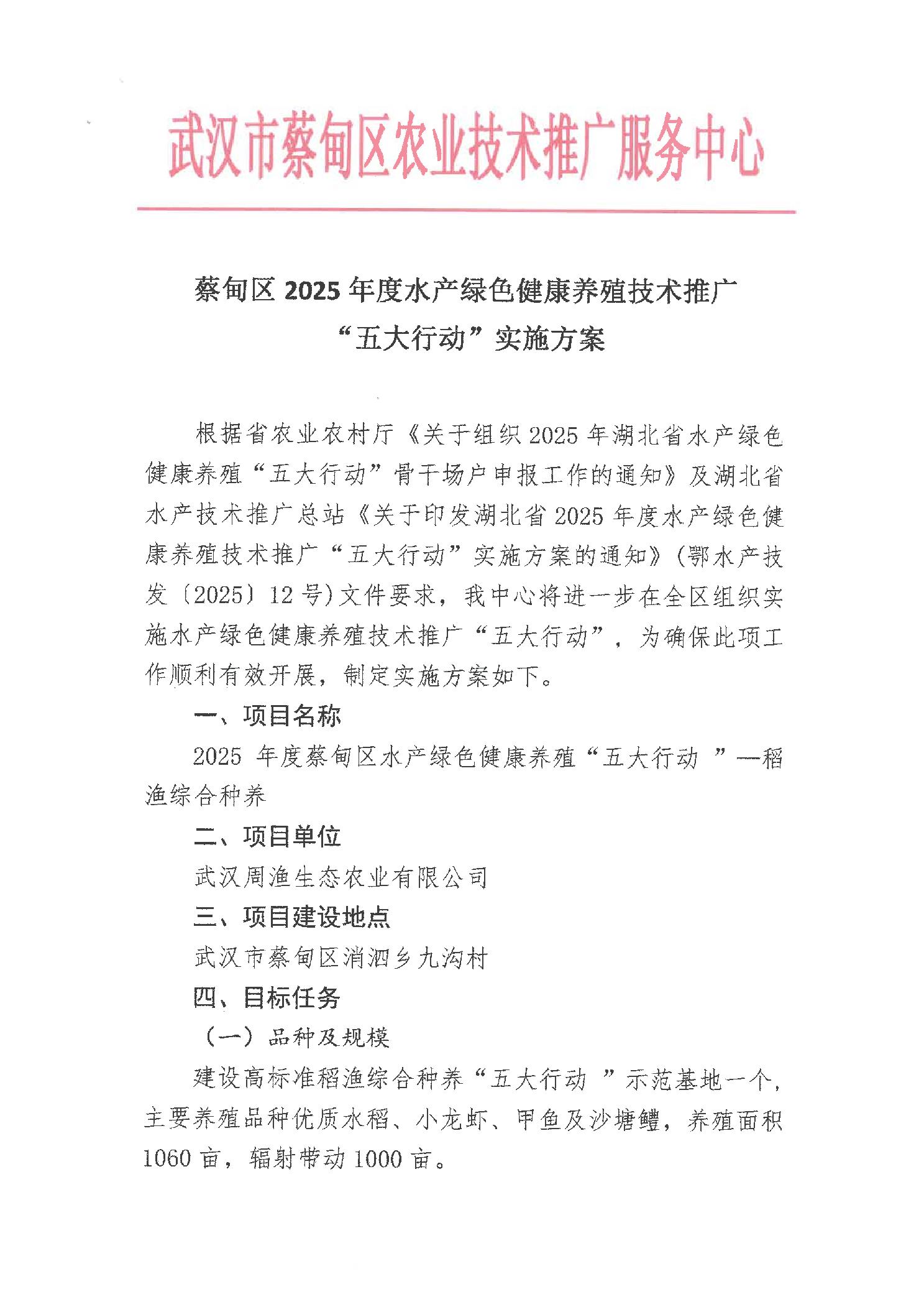 蔡甸区2025年度水产绿色健康养殖技术推广“五大行动”实施方案