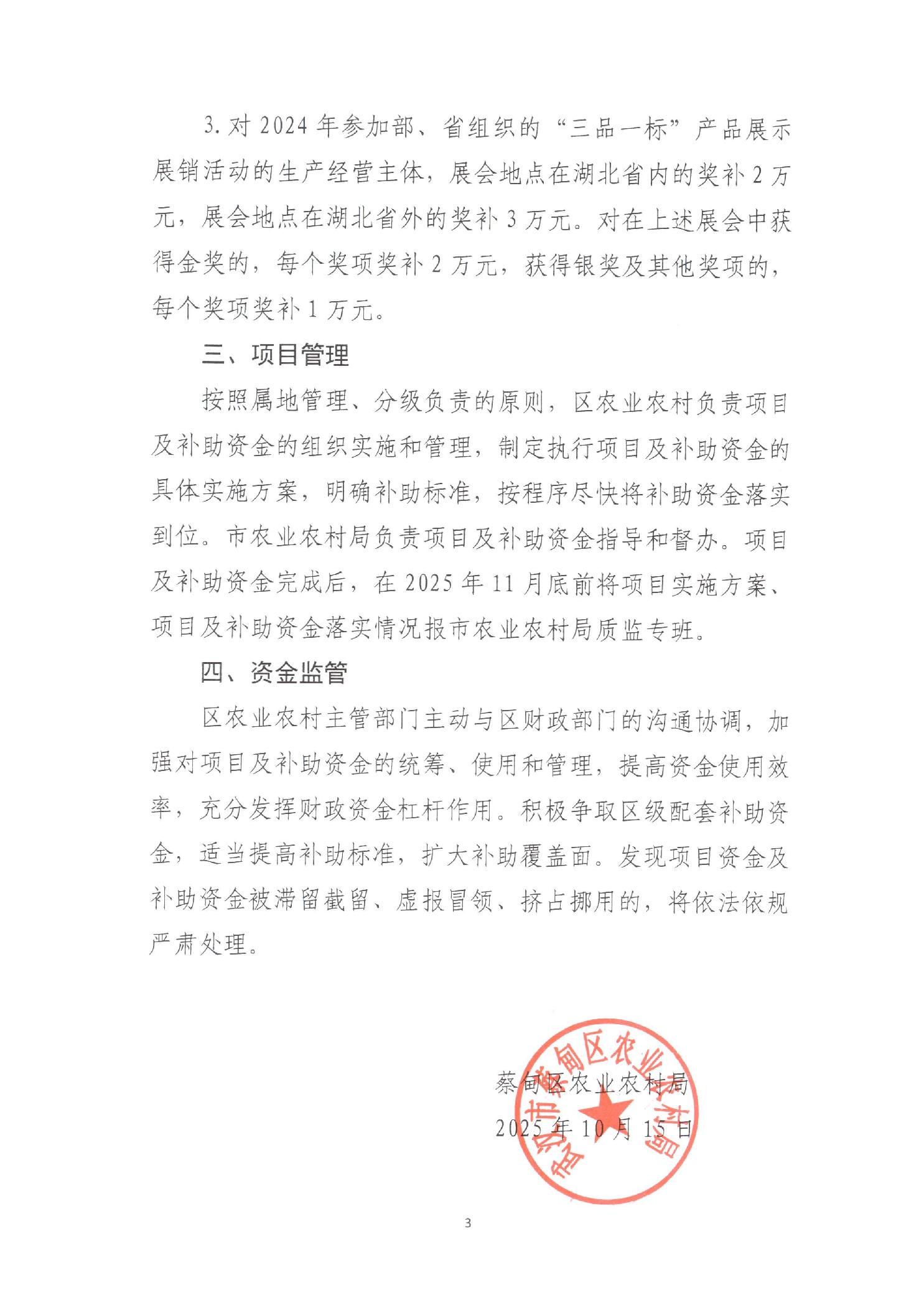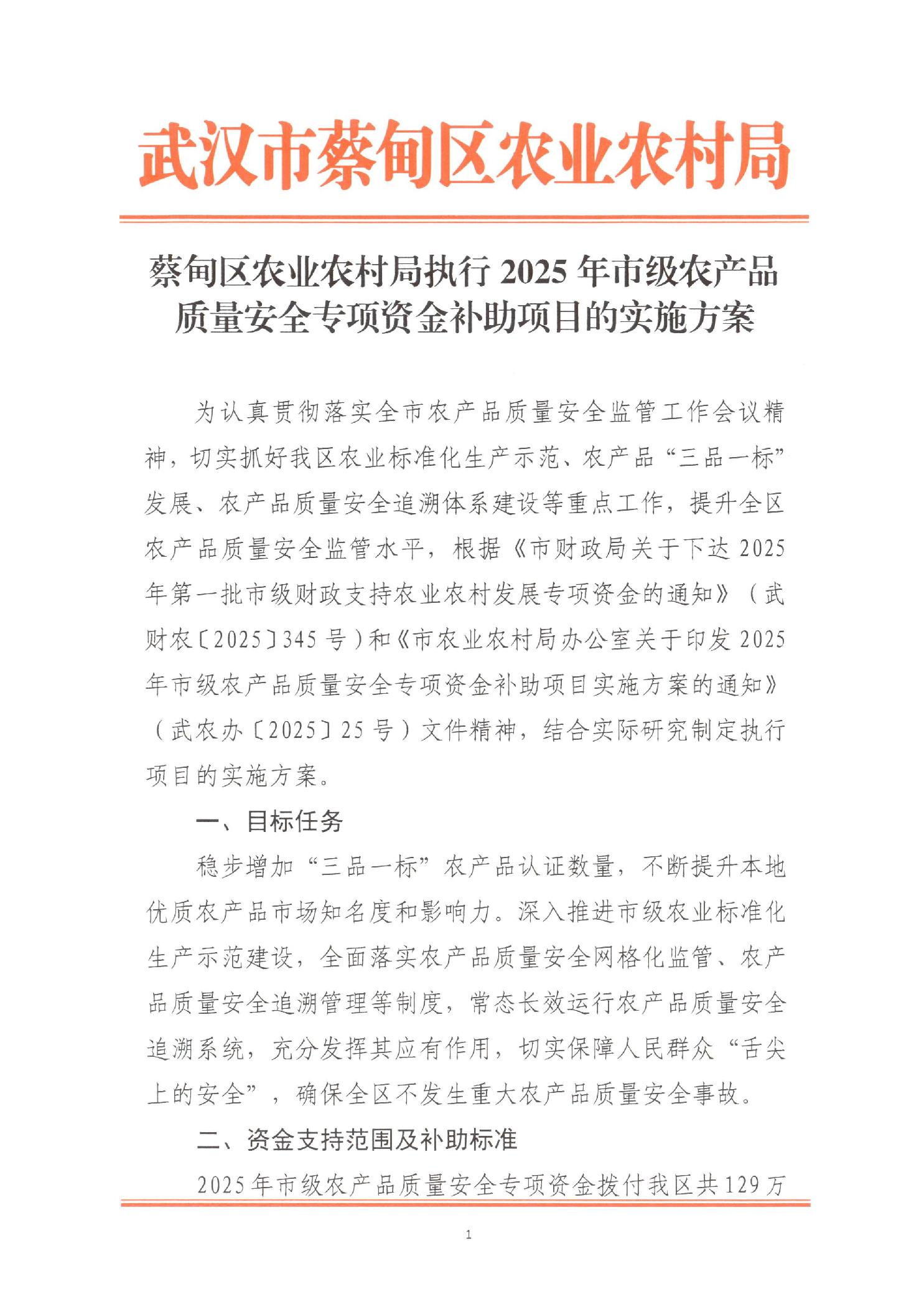 关于执行2025年市级农产品质量安全专项资金补助项目的实施方案