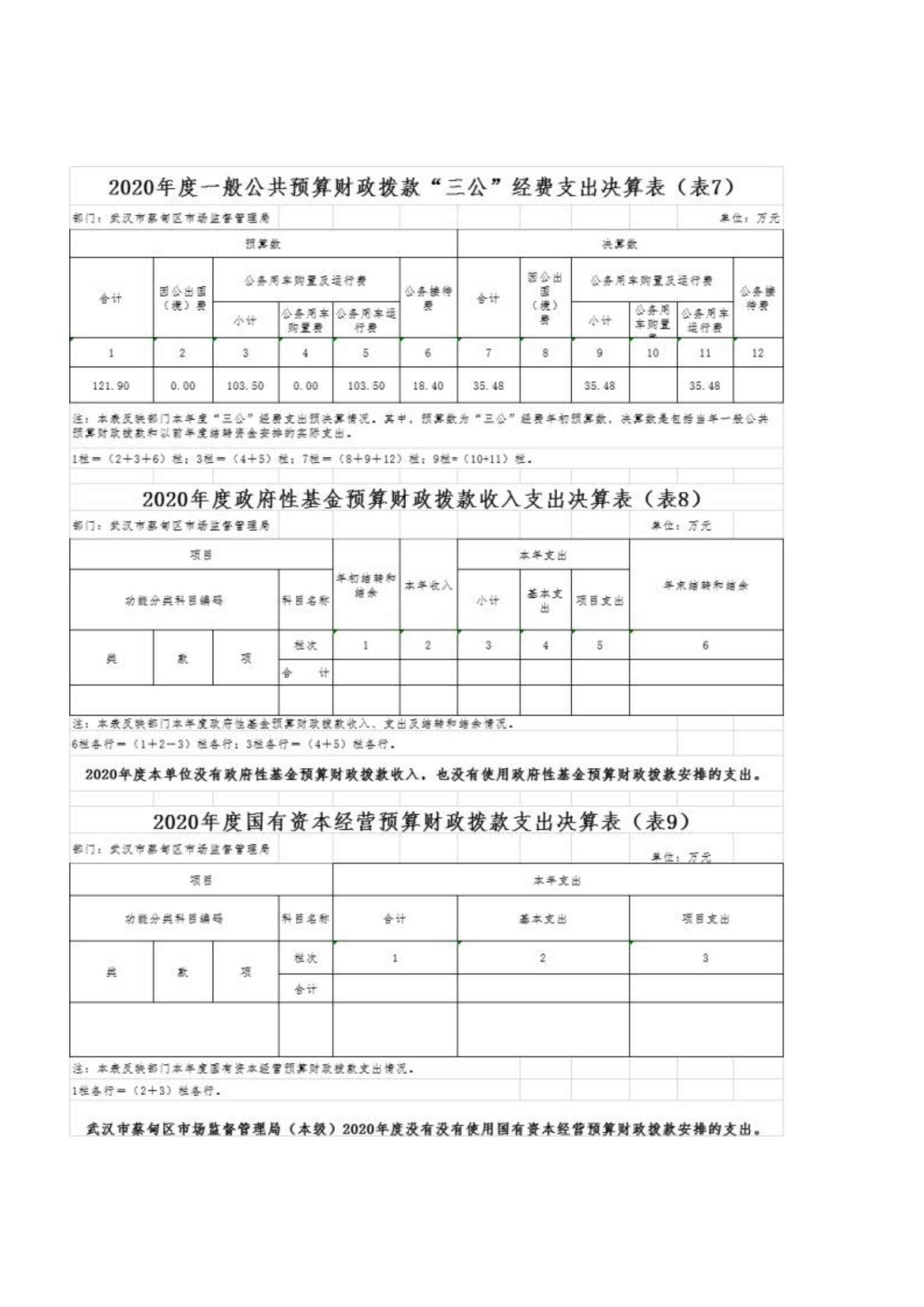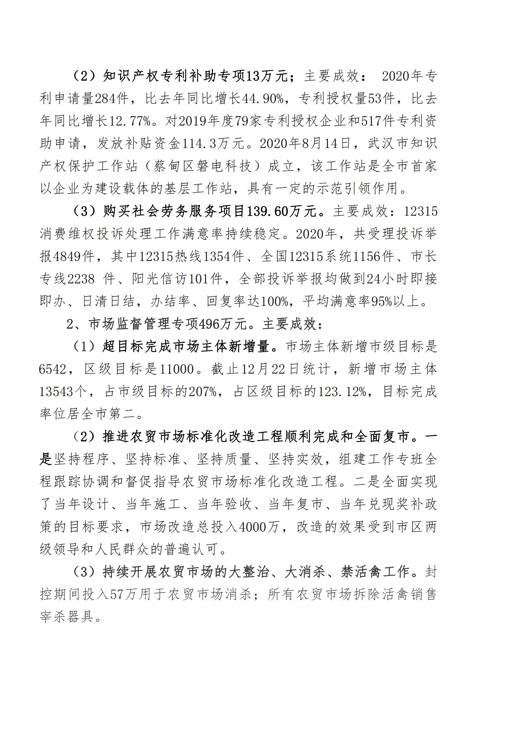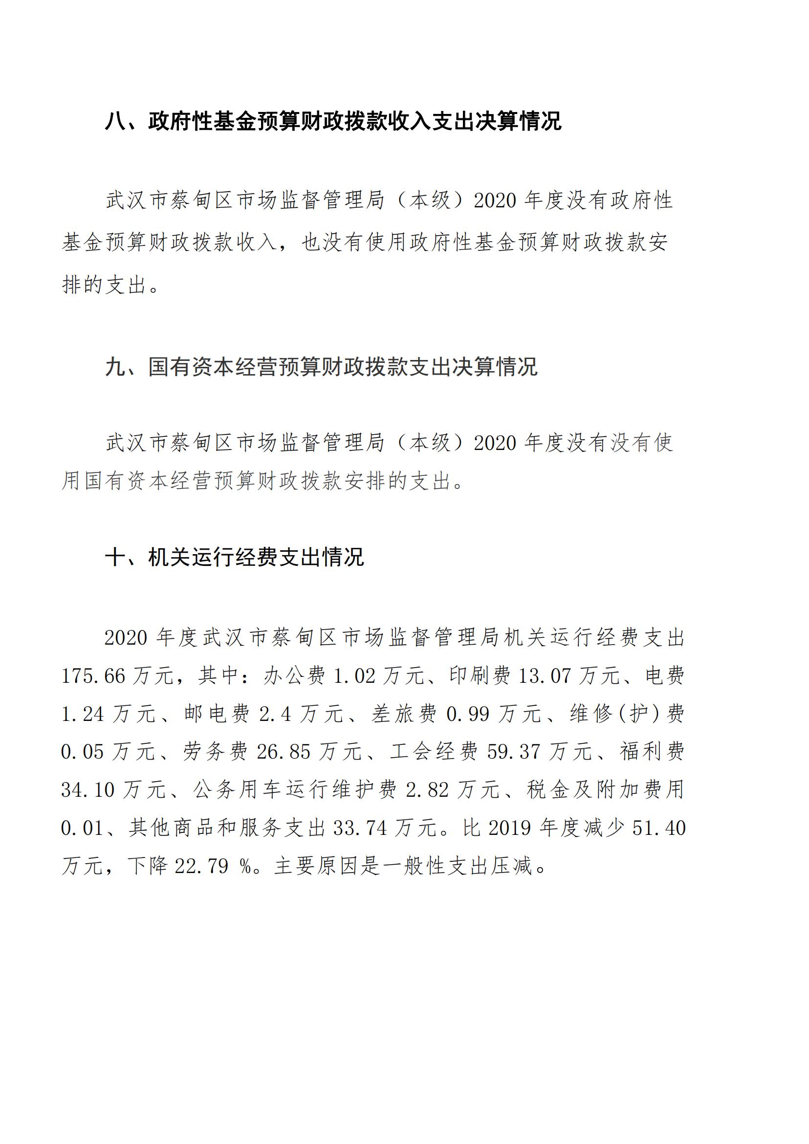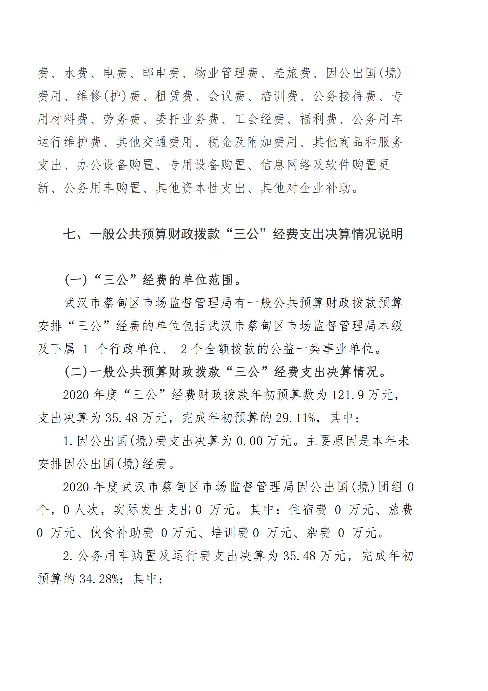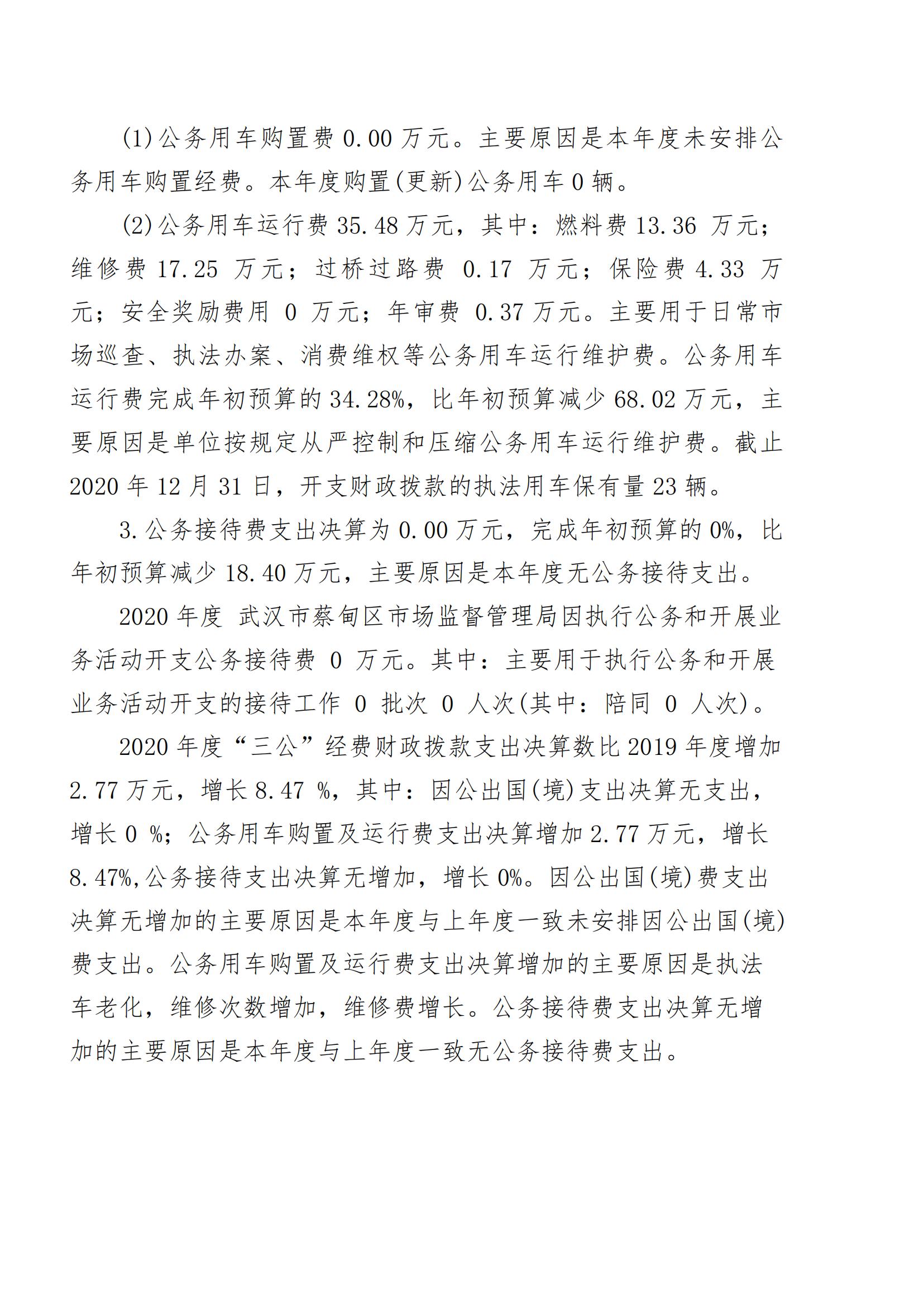 蔡甸区市场监督管理局2020年部门决算及“三公”经费公开说明