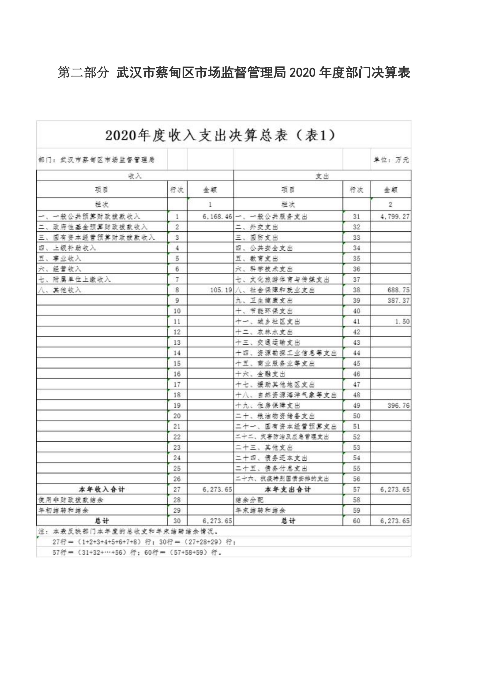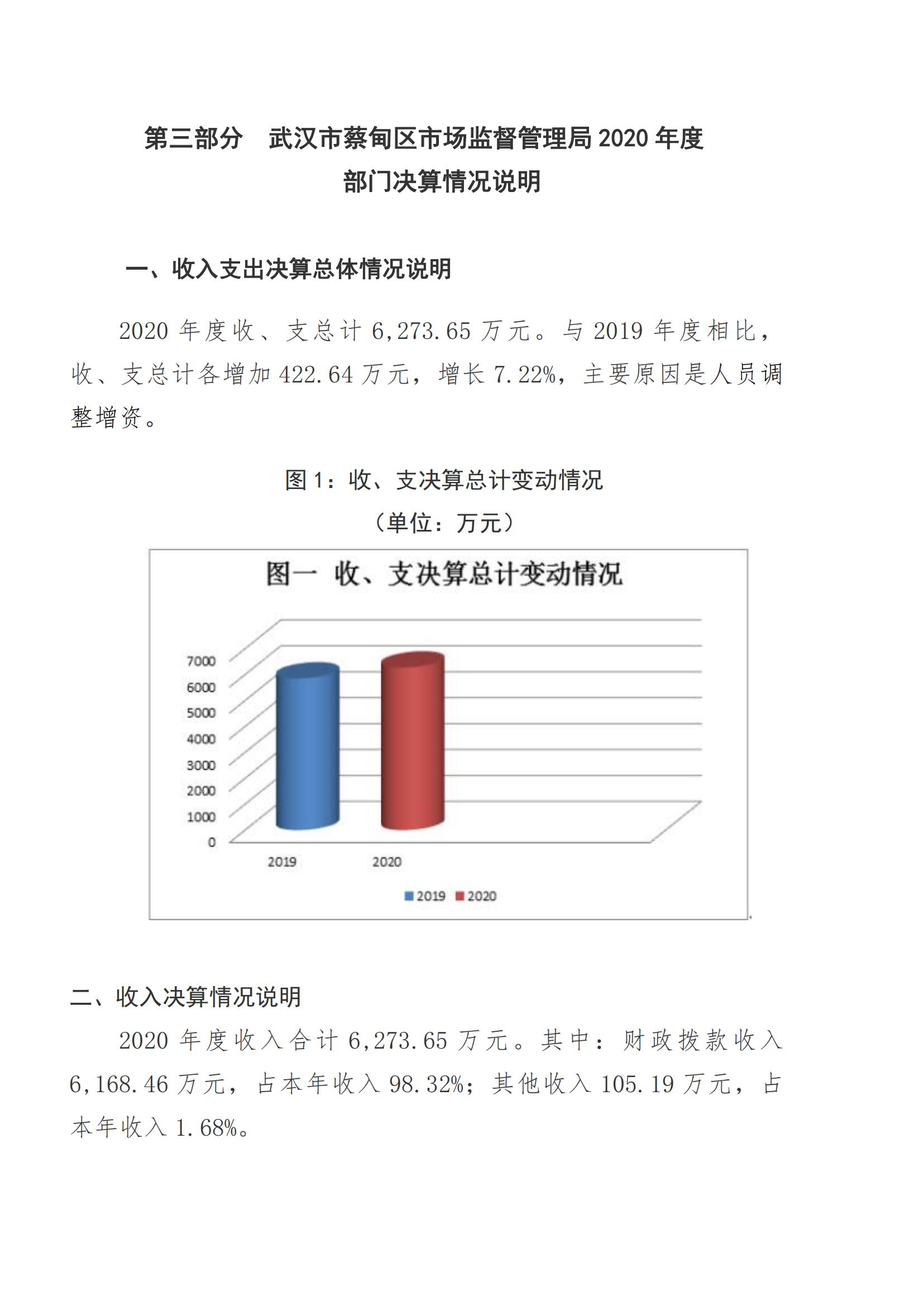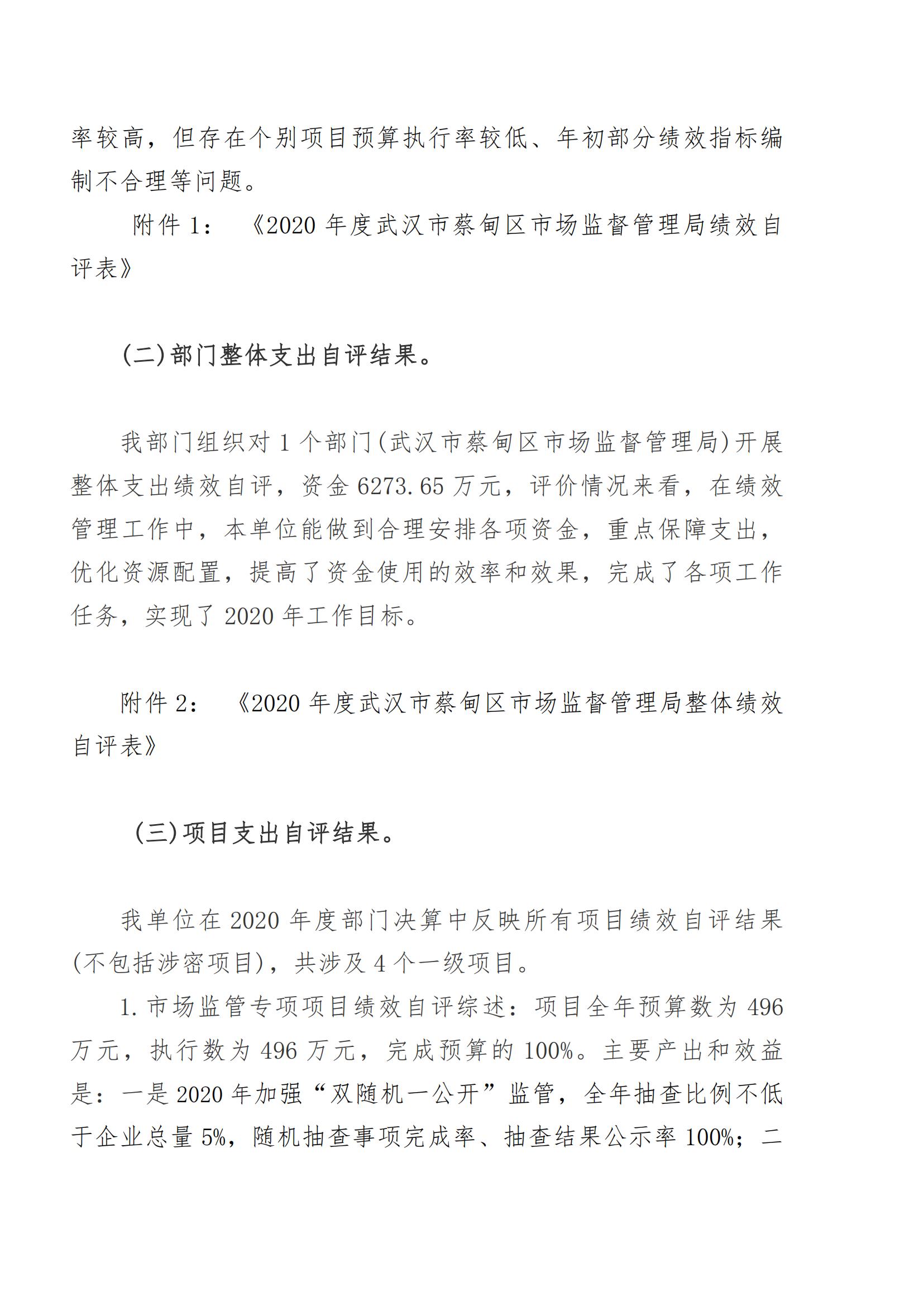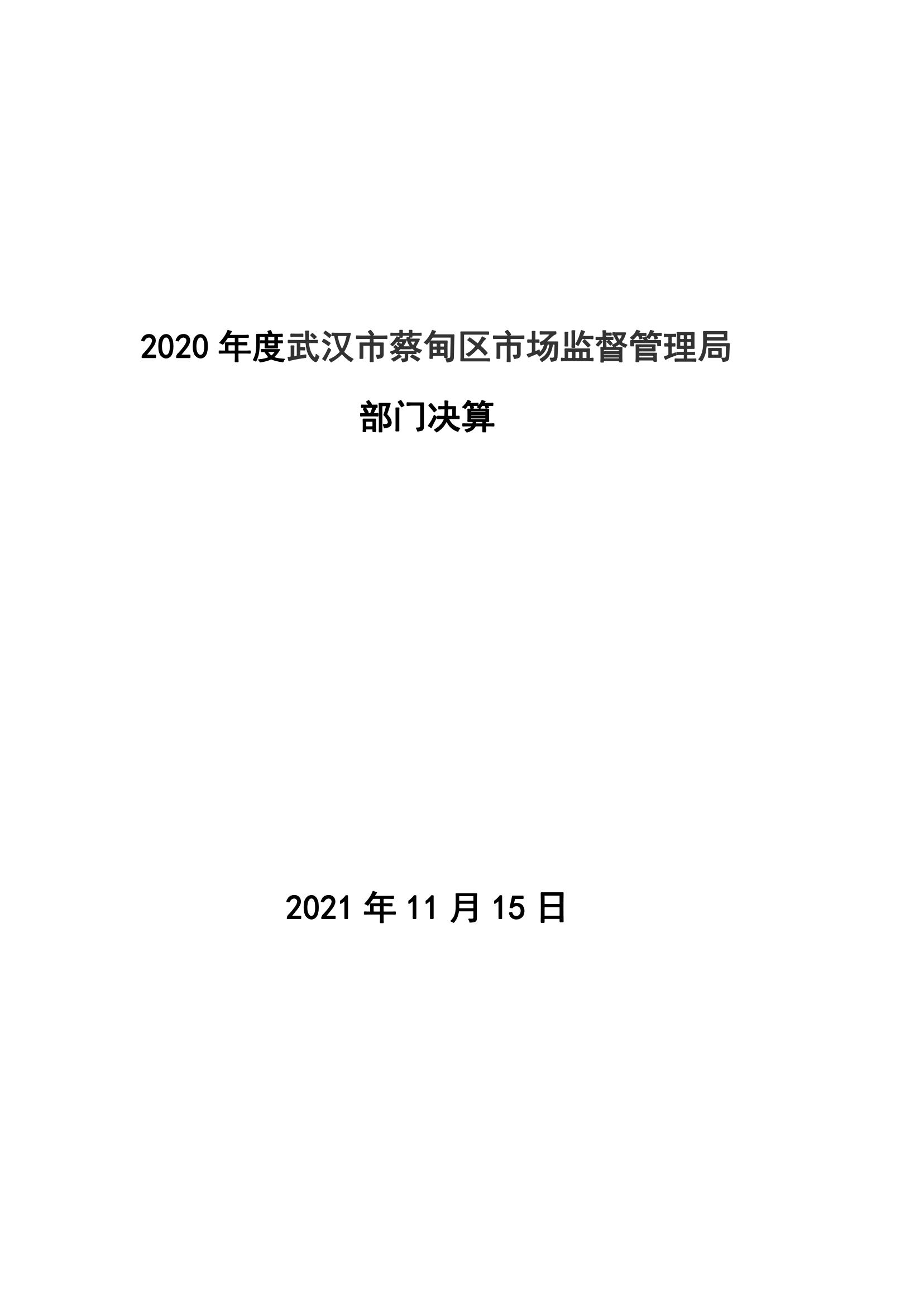 蔡甸区市场监督管理局2020年部门决算及“三公”经费公开说明