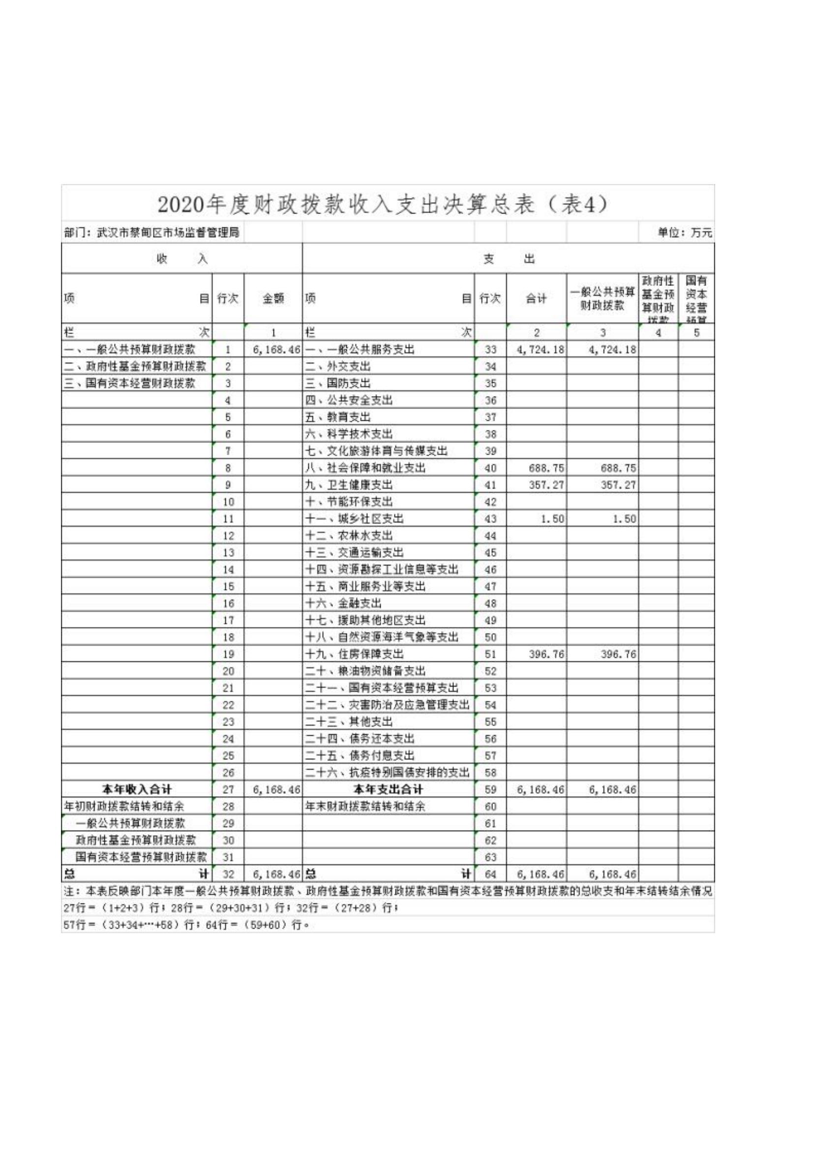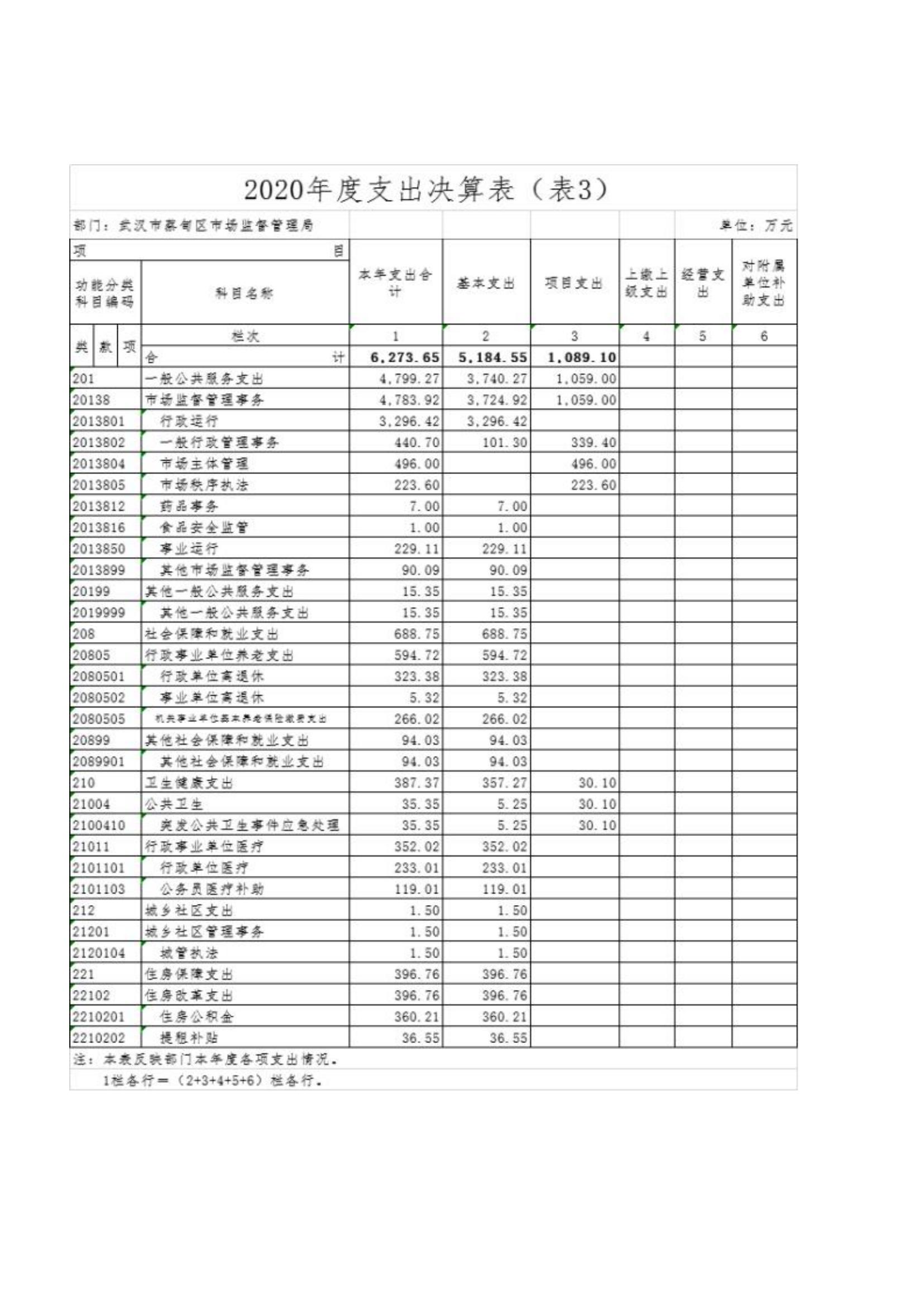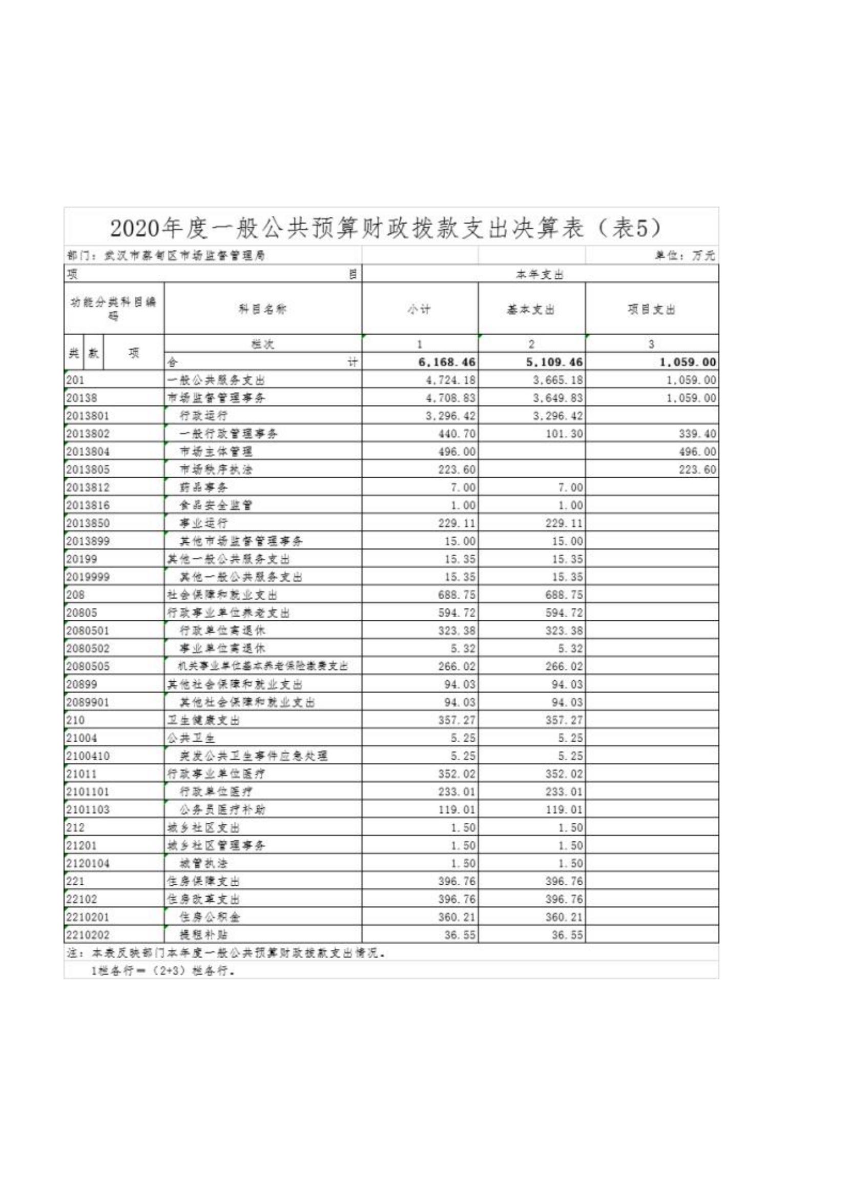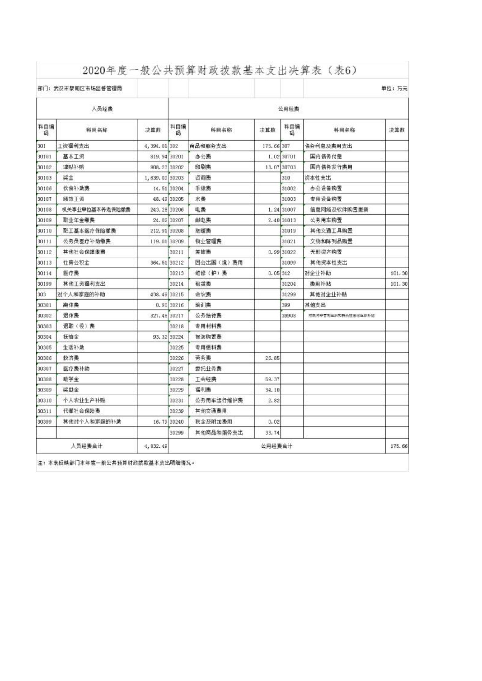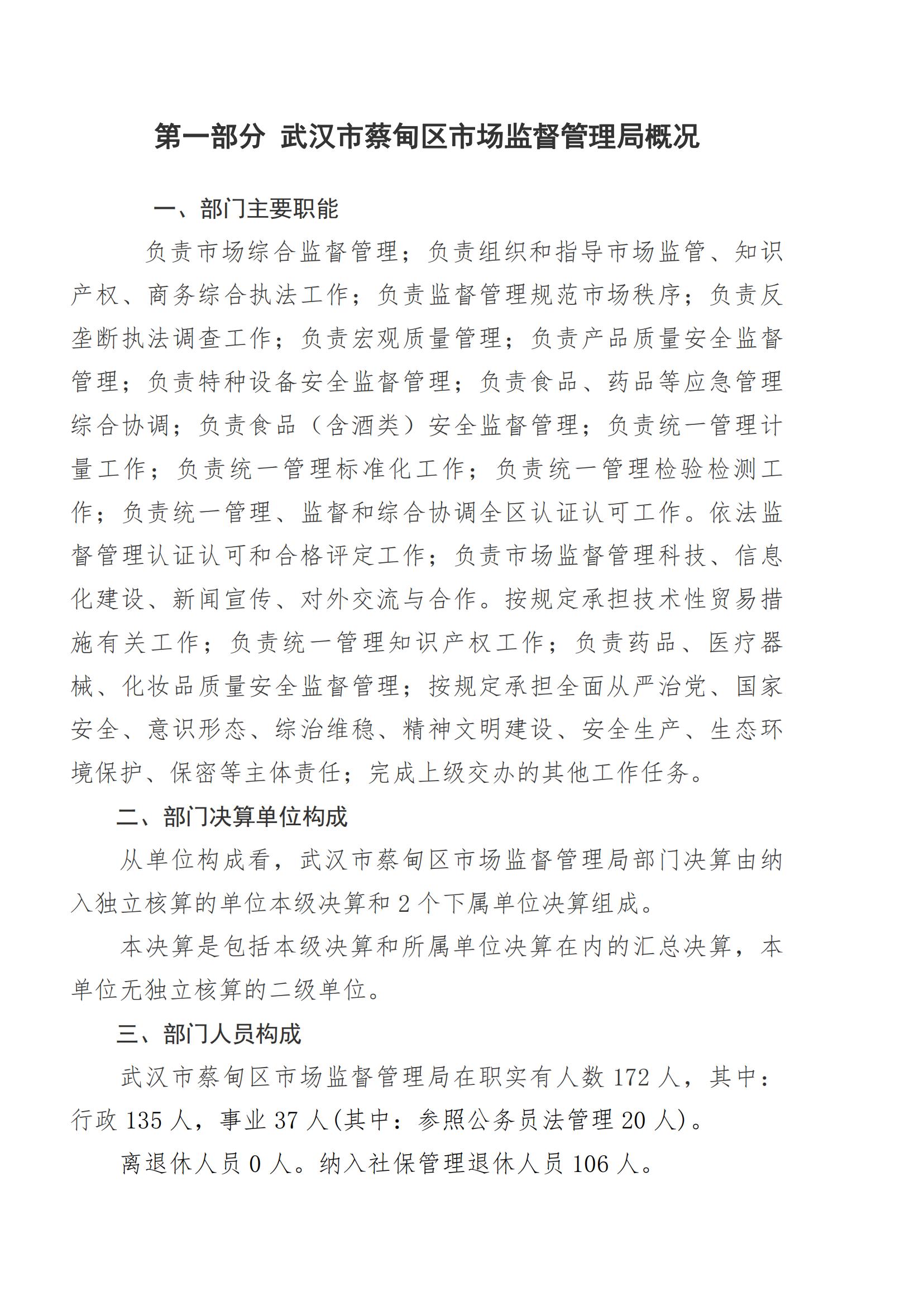 蔡甸区市场监督管理局2020年部门决算及“三公”经费公开说明