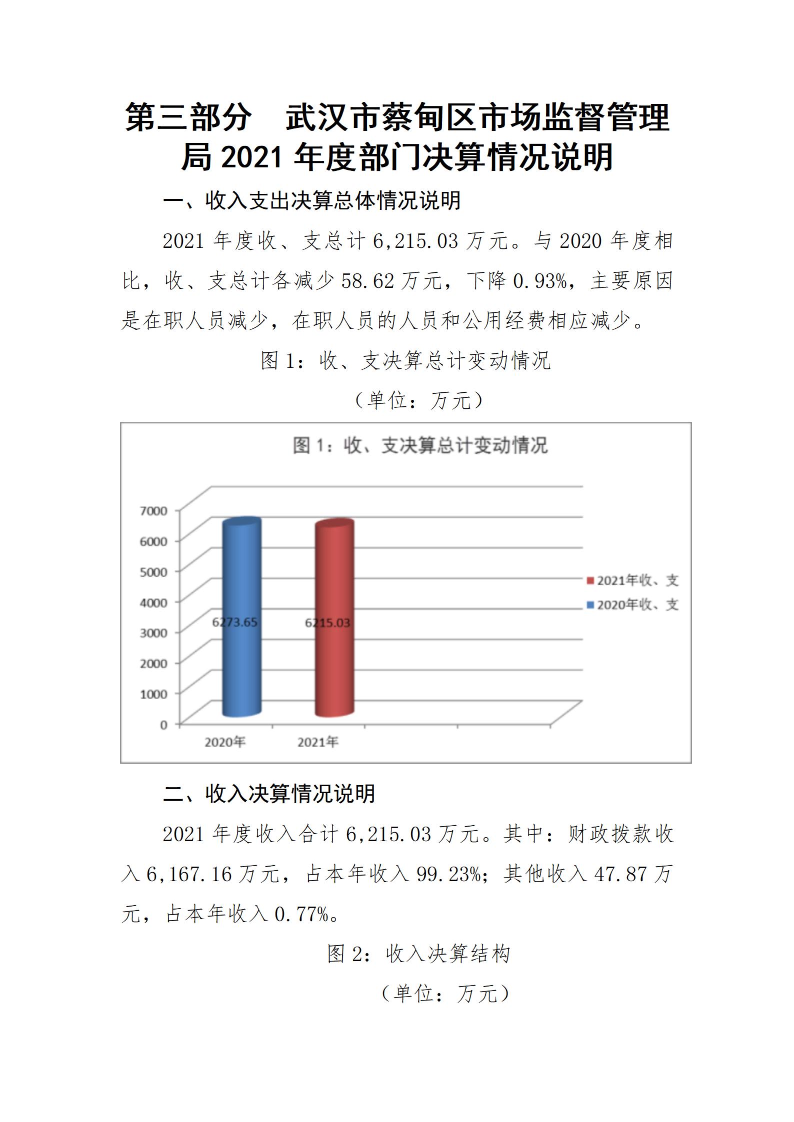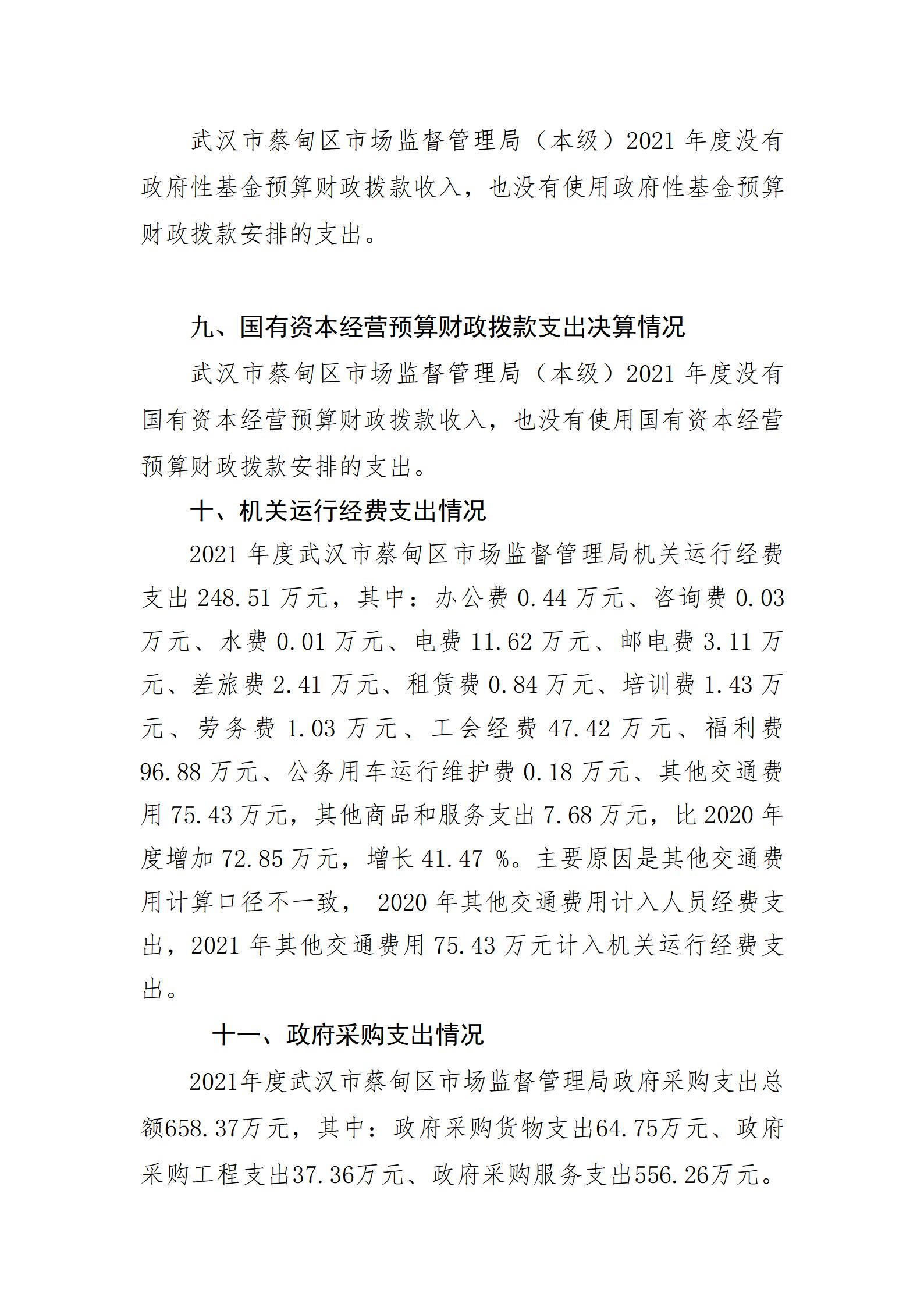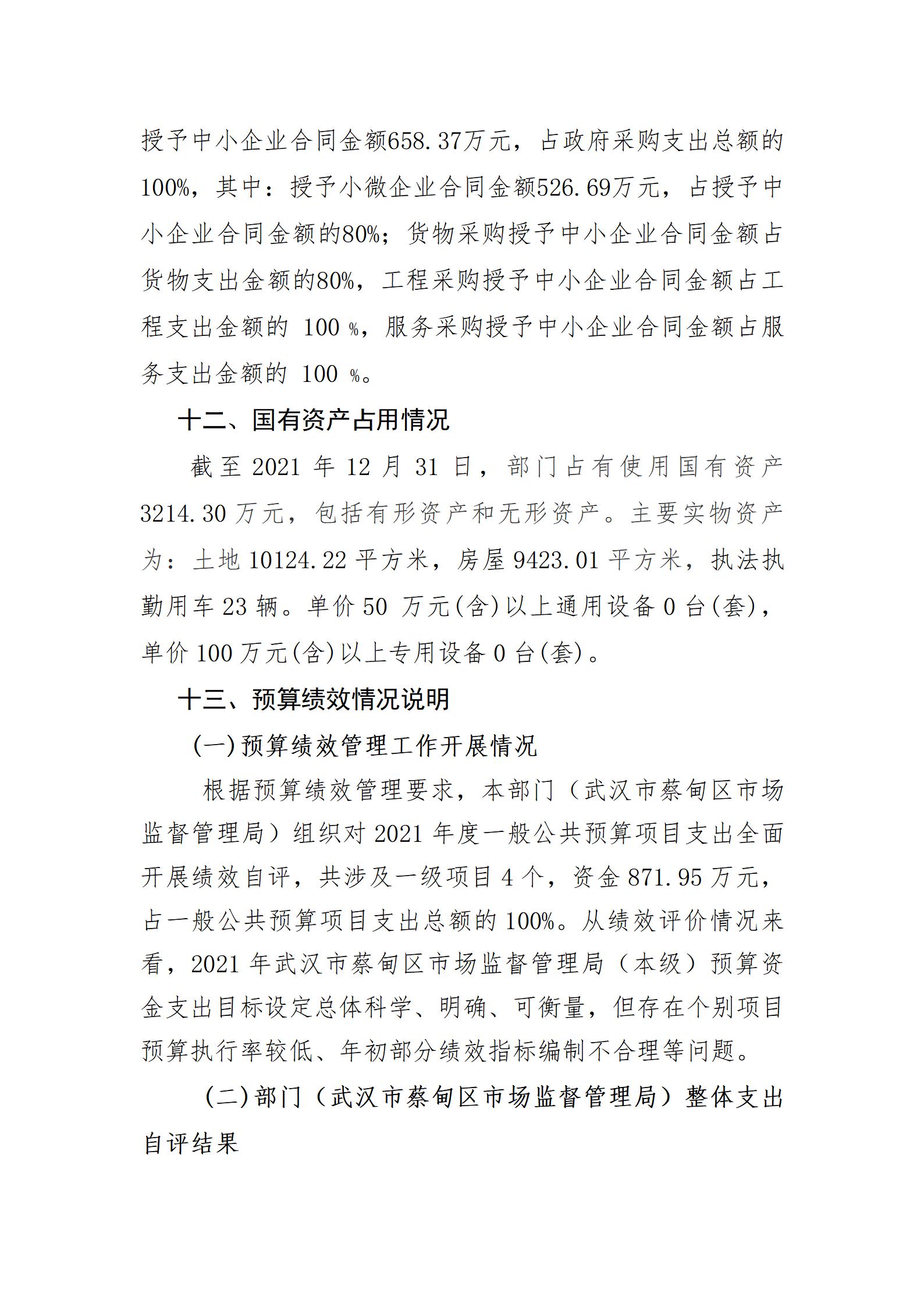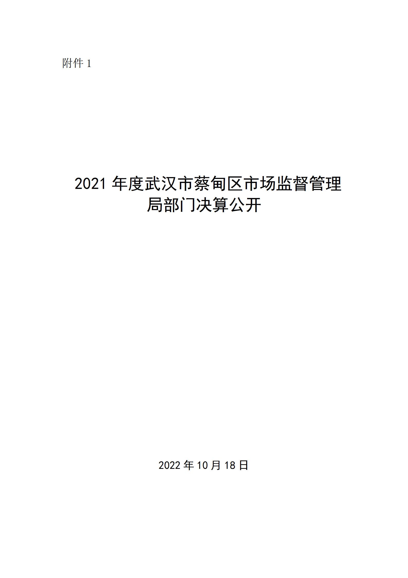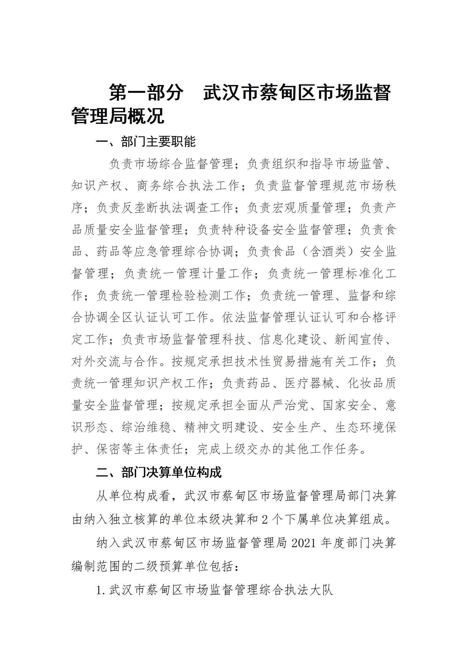 2021年度武汉市蔡甸区市场监督管理局部门决算公开