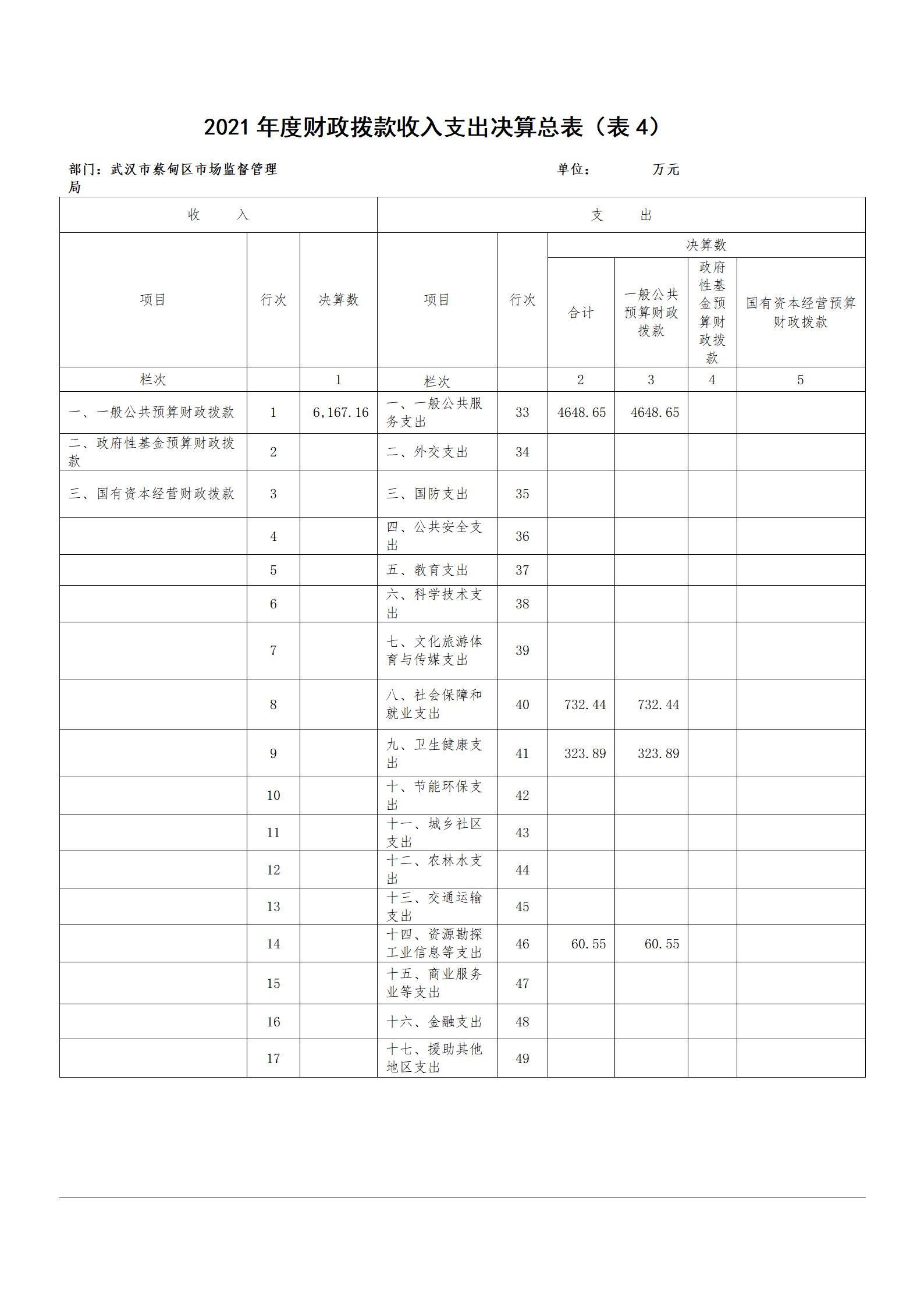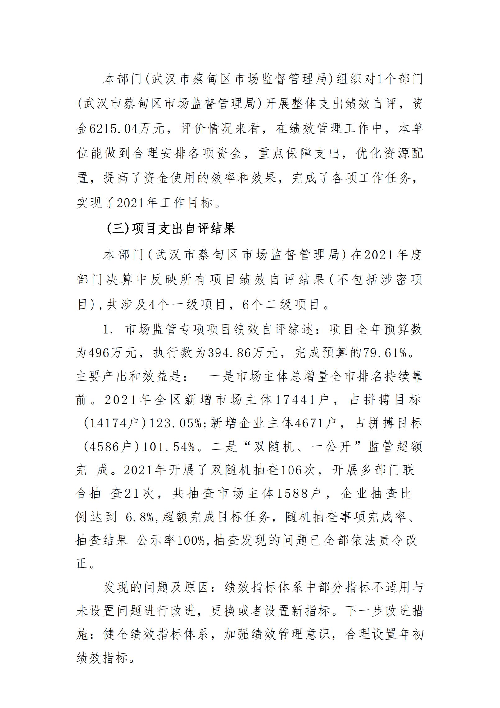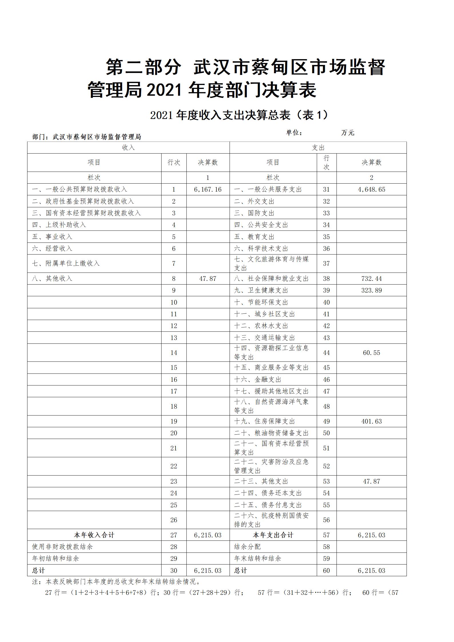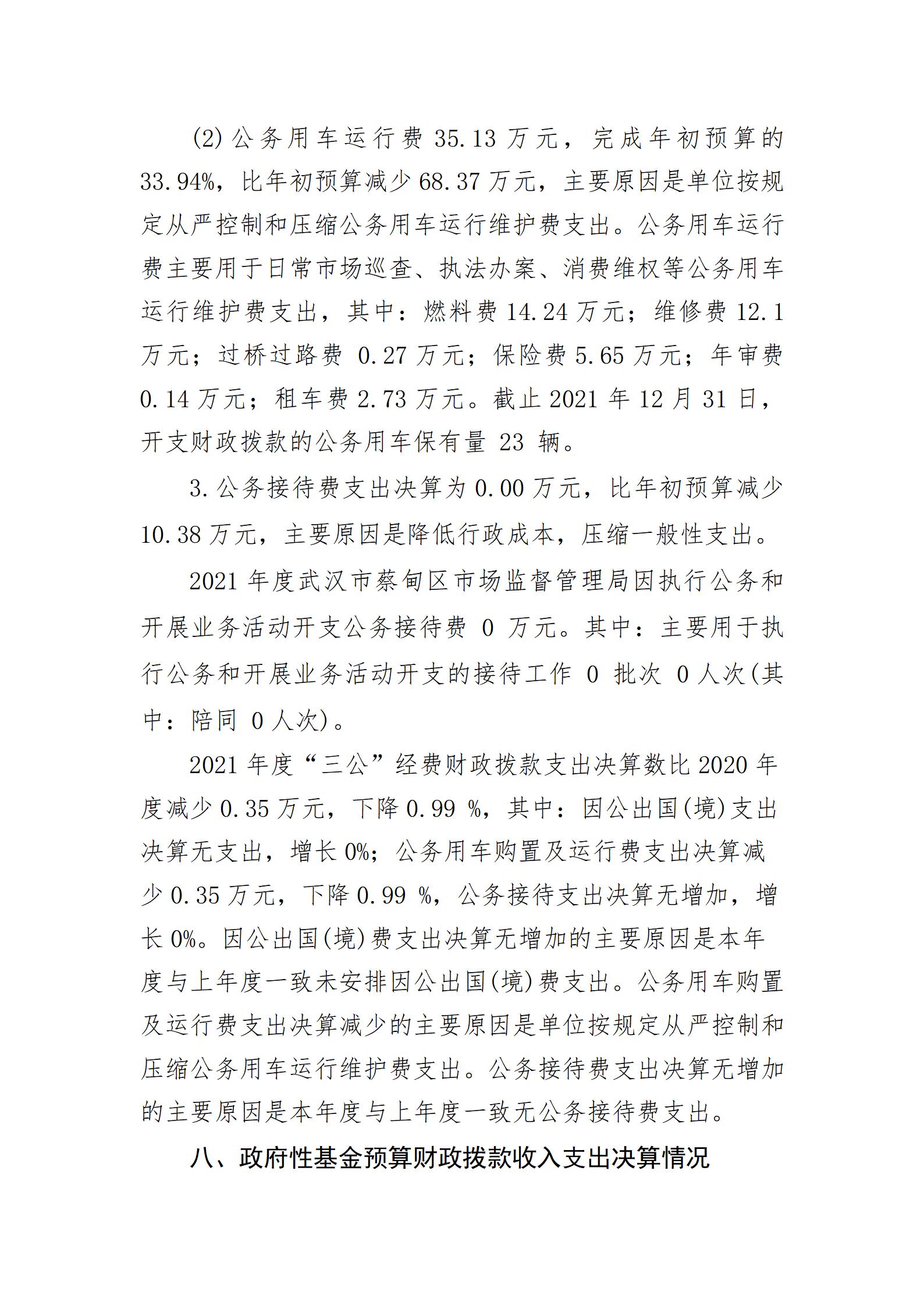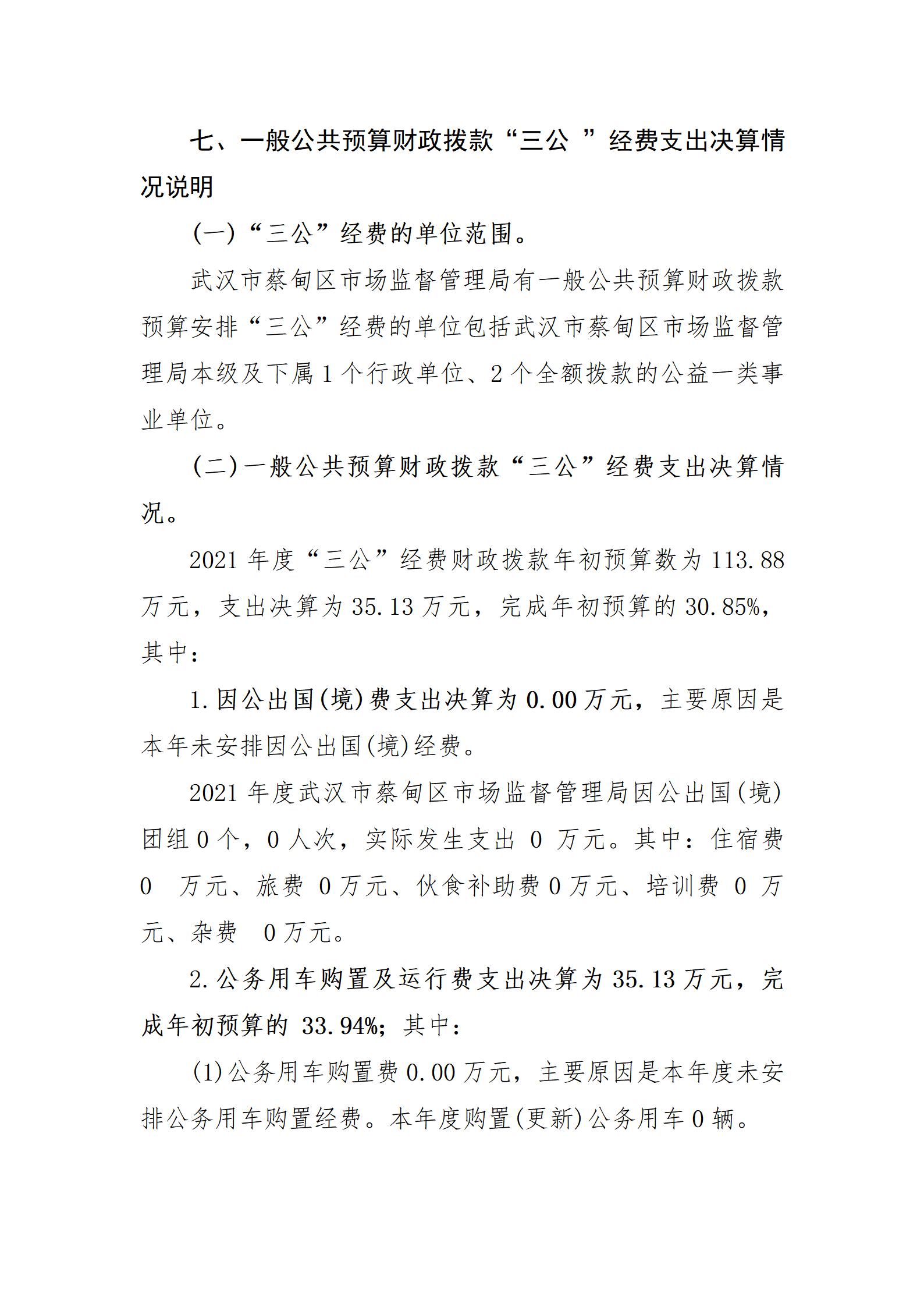 2021年度武汉市蔡甸区市场监督管理局部门决算公开