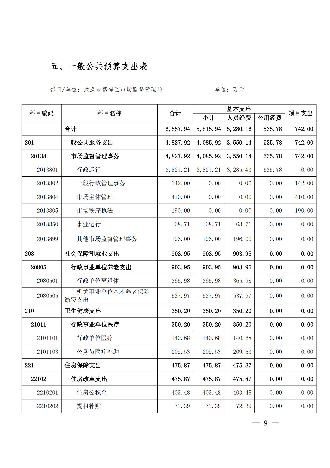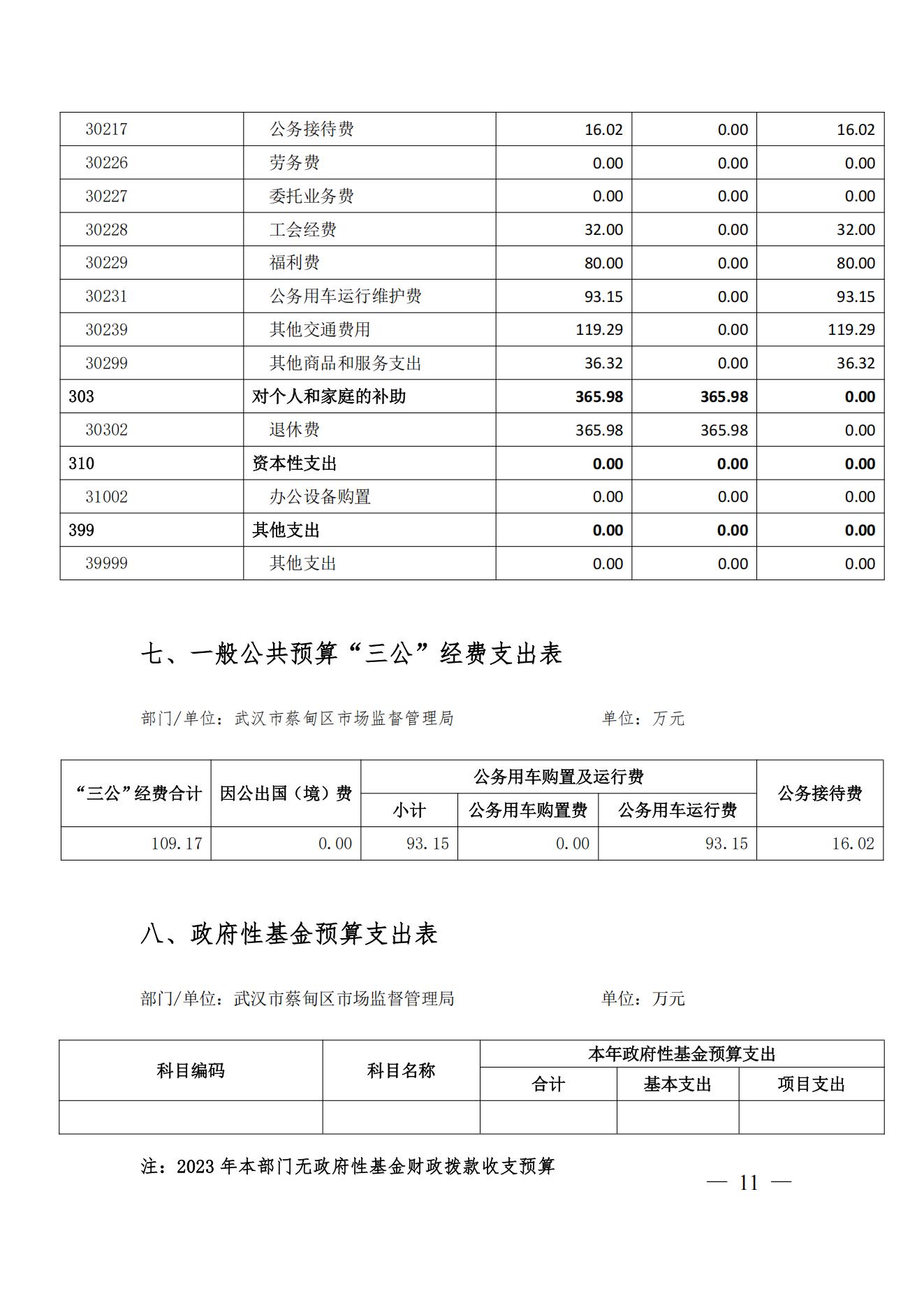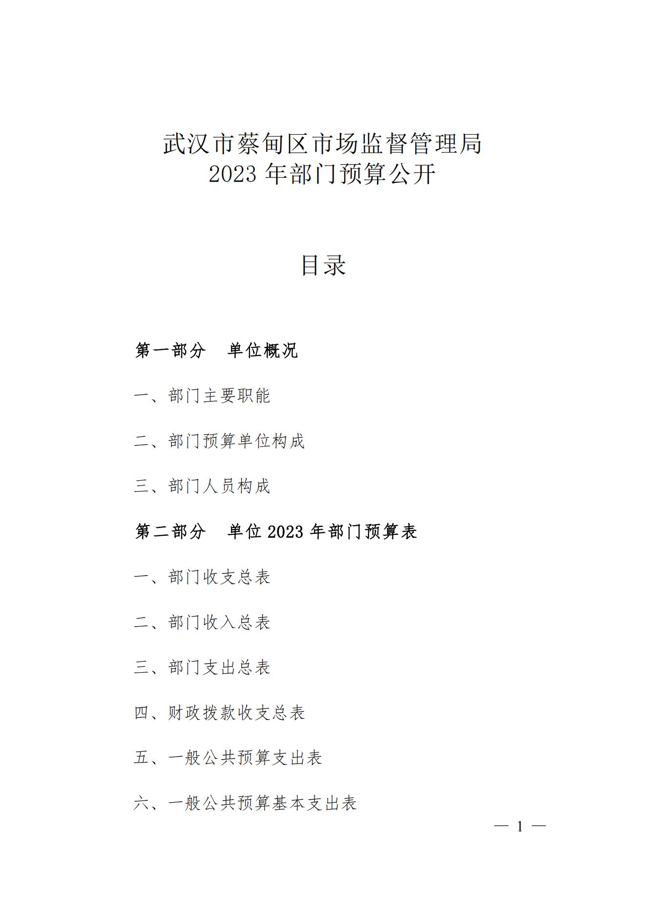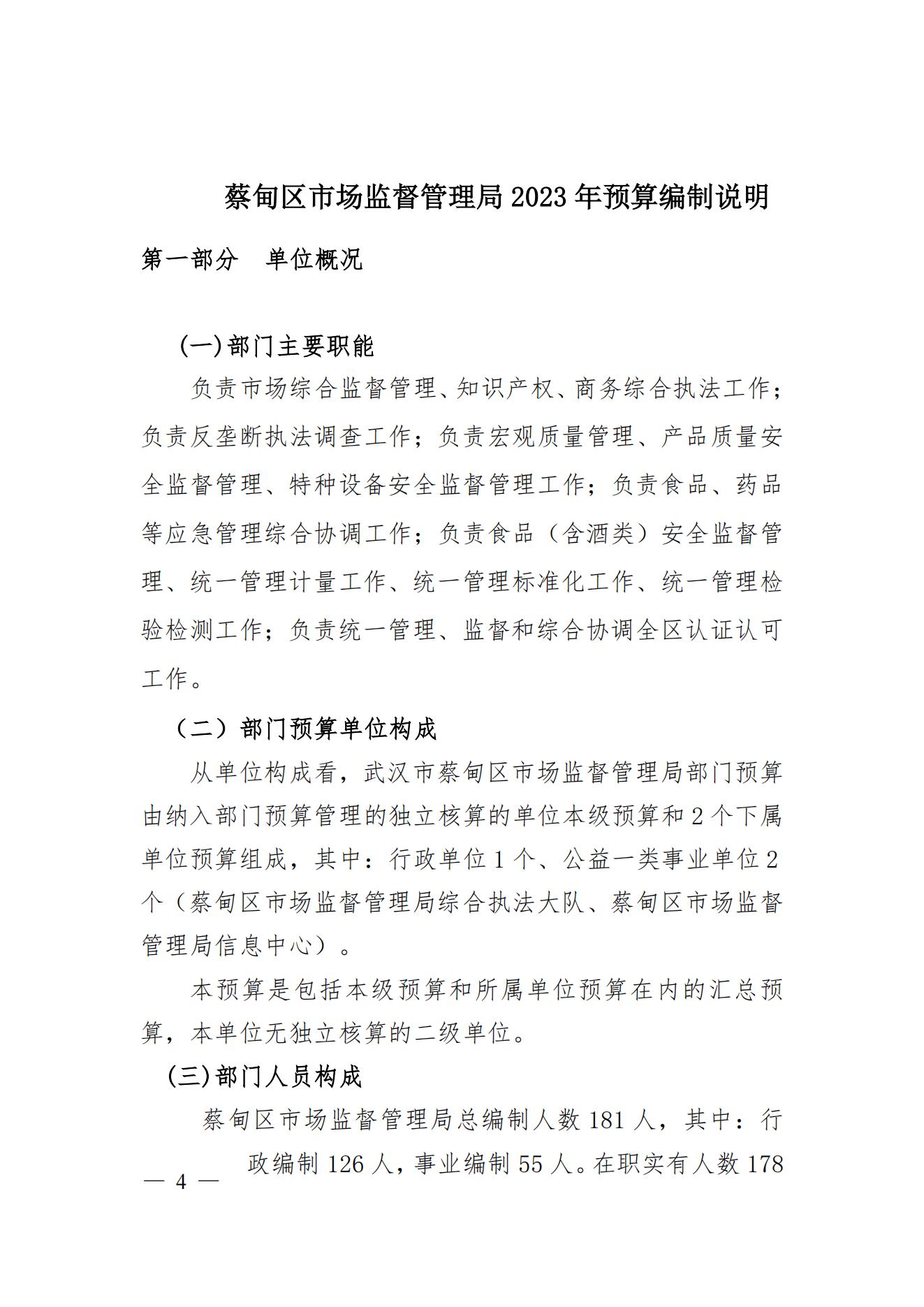 蔡甸区市场监督管理局2023年部门预算及“三公”经费公开说明