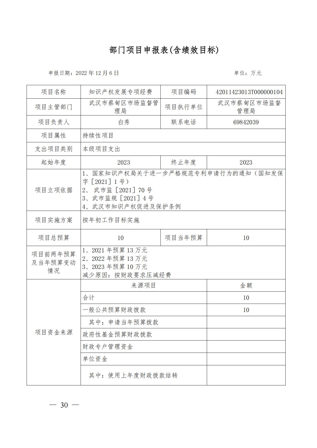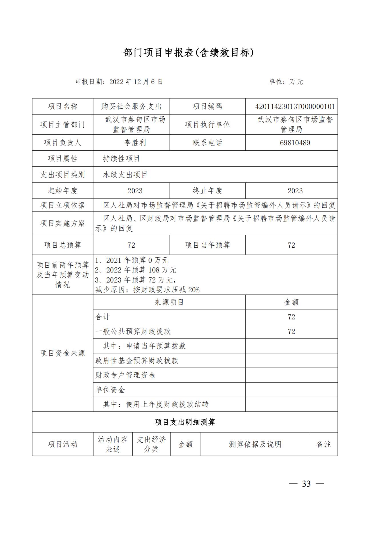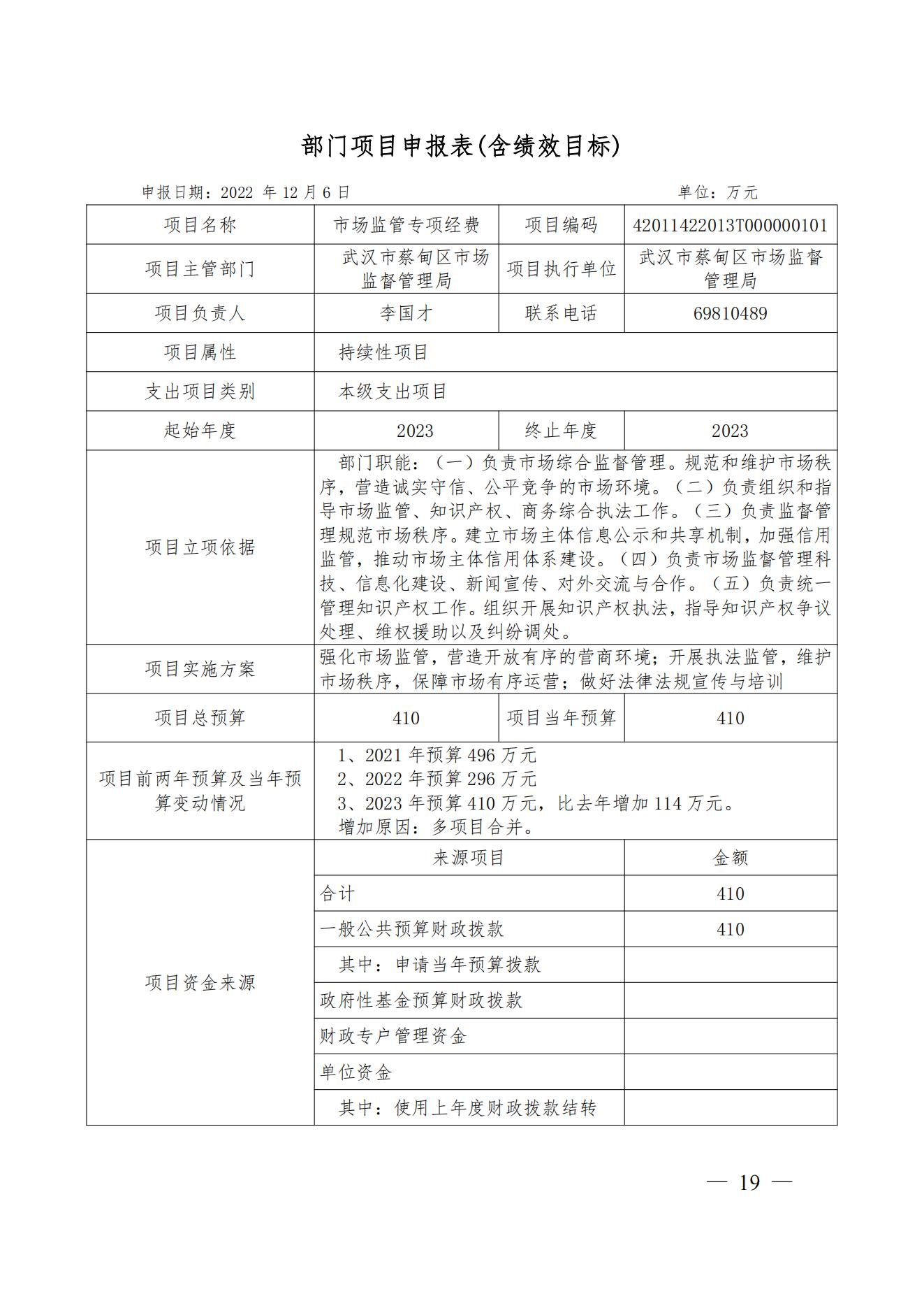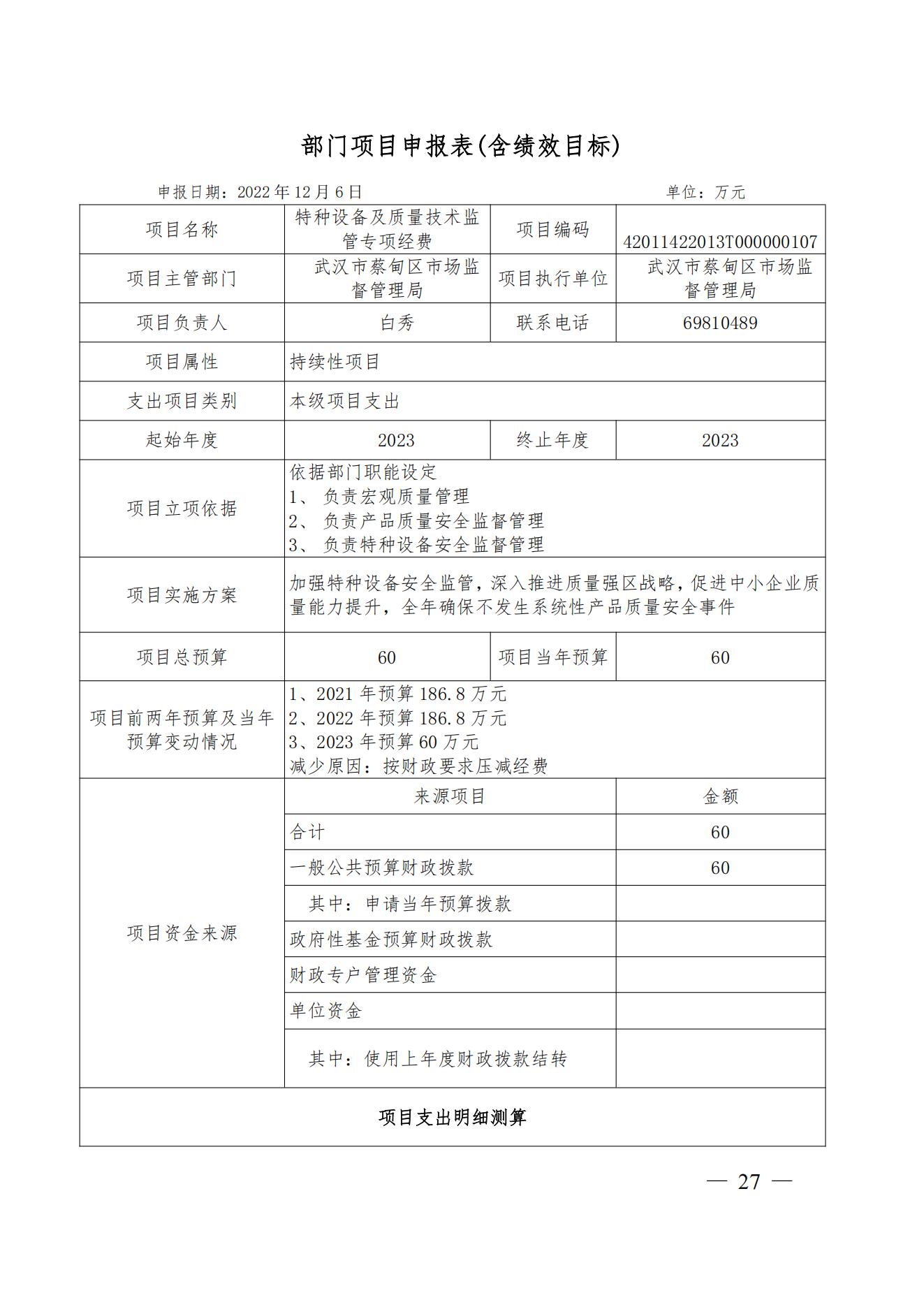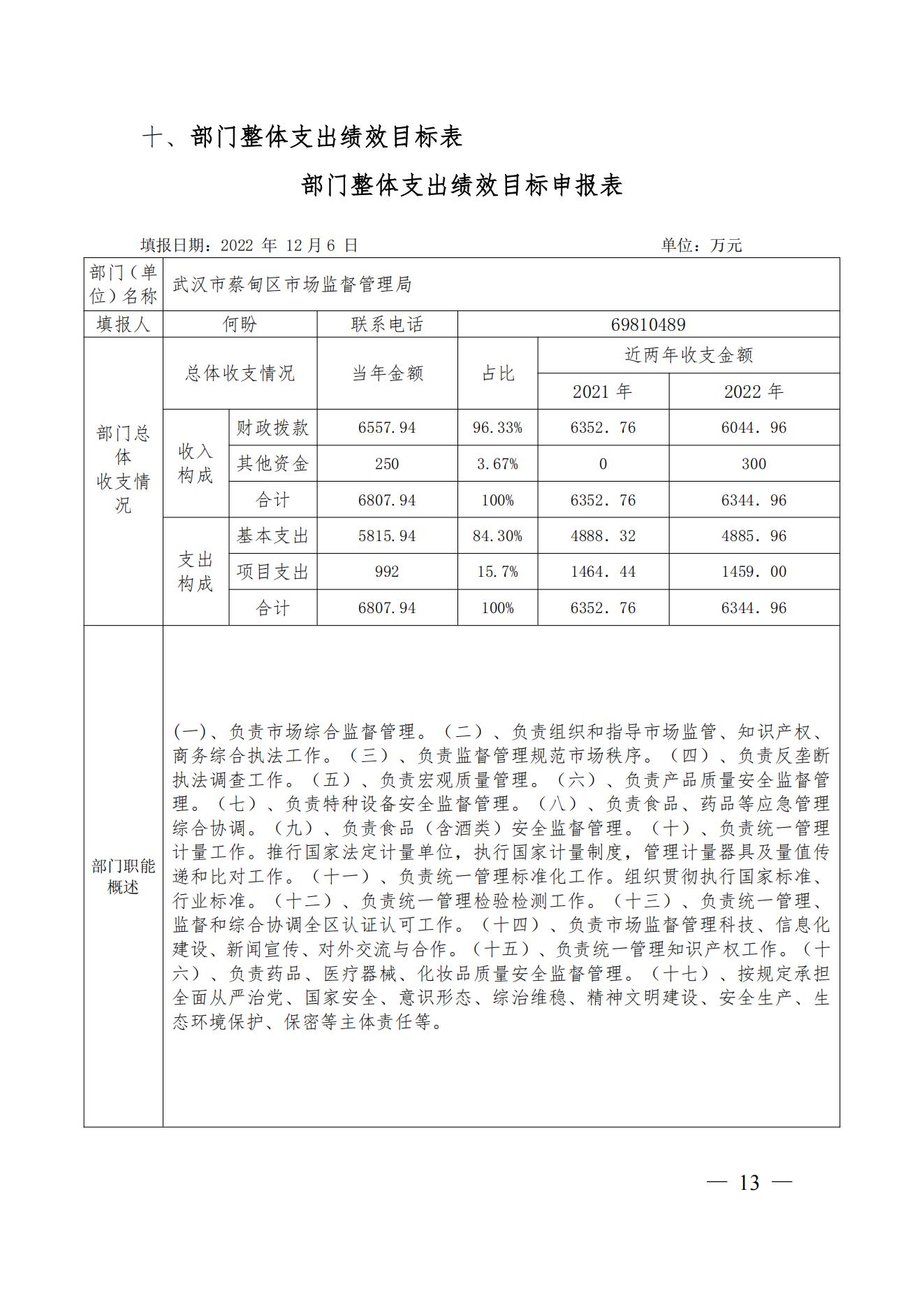 蔡甸区市场监督管理局2023年部门预算及“三公”经费公开说明