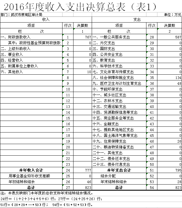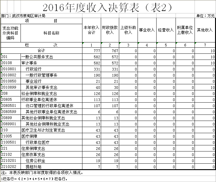 第二部分 武汉市蔡甸区审计局2016年度部门决算表