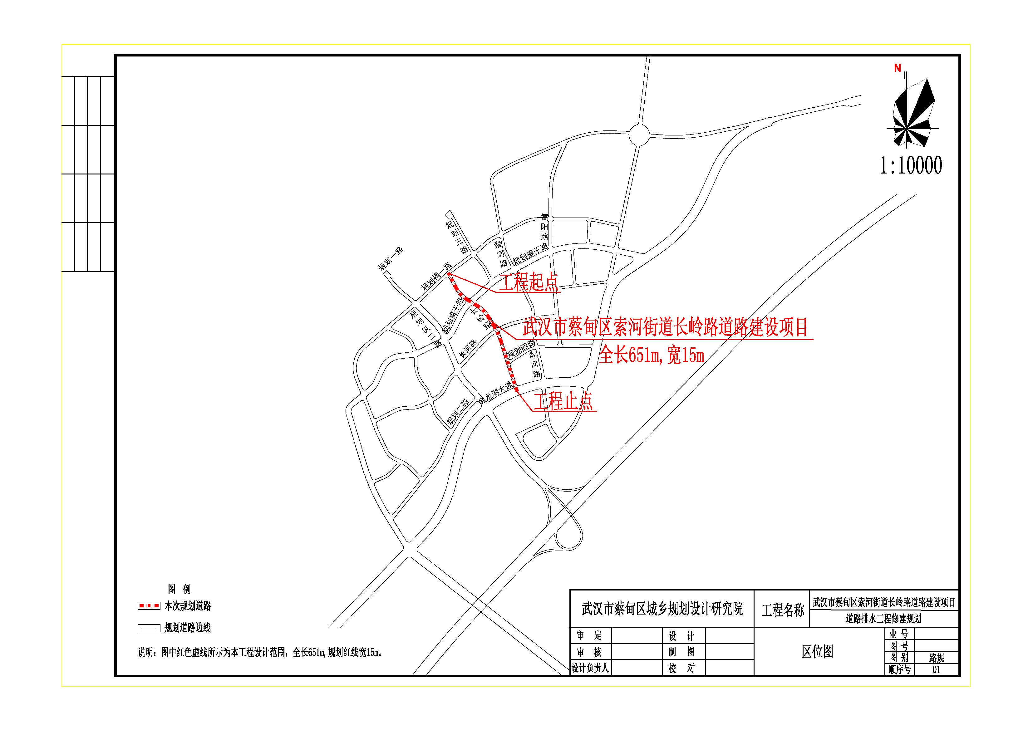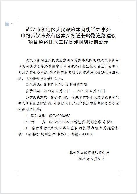 武汉市蔡甸区人民政府索河街道办事处 申报武汉市蔡甸区索河街道长岭路道路建设 项目道路排水工程修建规划批前公示