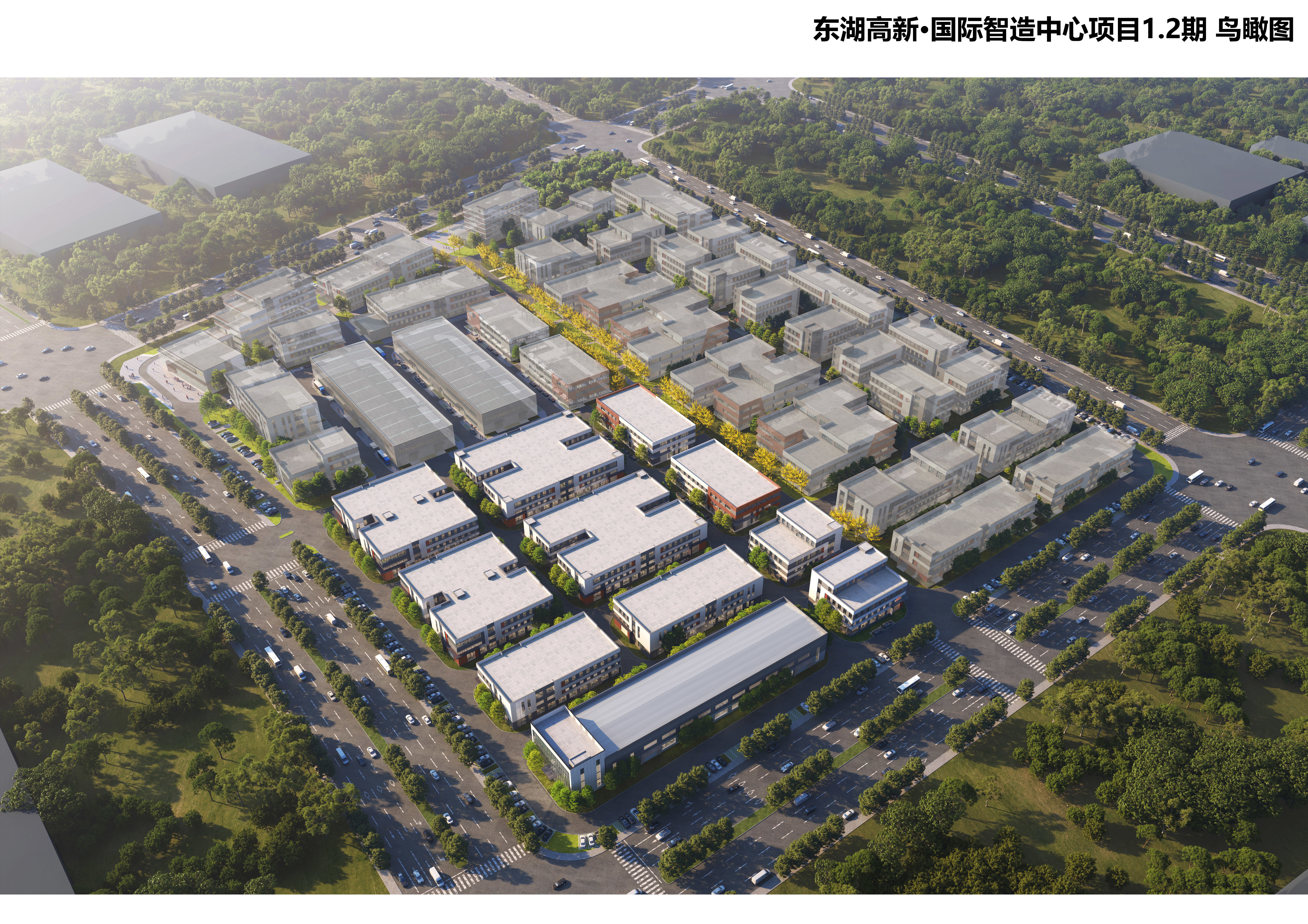 公示内容: 工业项目(东湖高新·国际智造中心)规划方案调整总平面、效果图(详见附图);