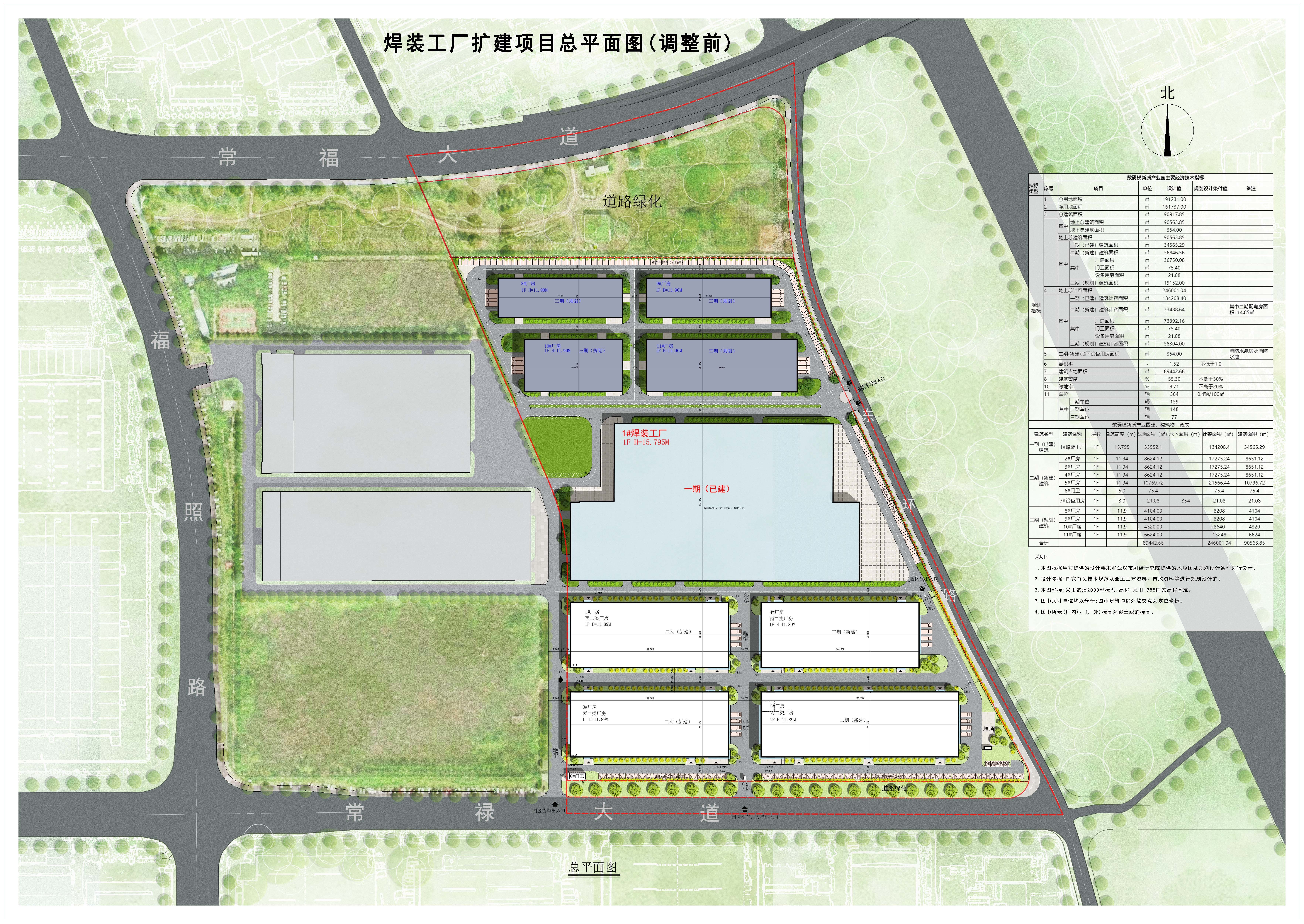 公示内容: 工业项目(焊装工厂扩建项目)规划总平面调整对比图、效果图(详见附图);