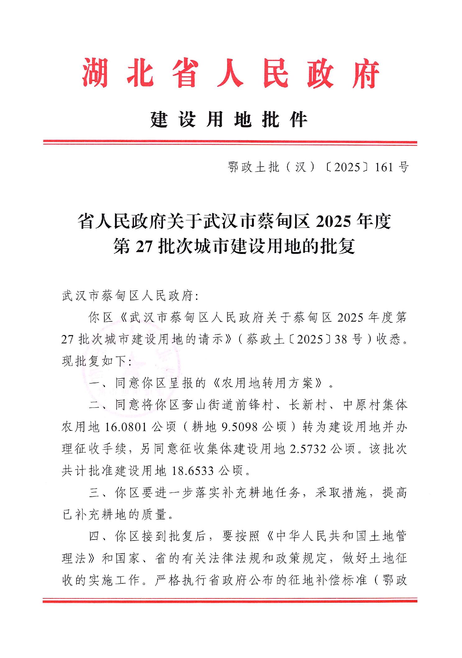 鄂政土批(汉)[2025]161号