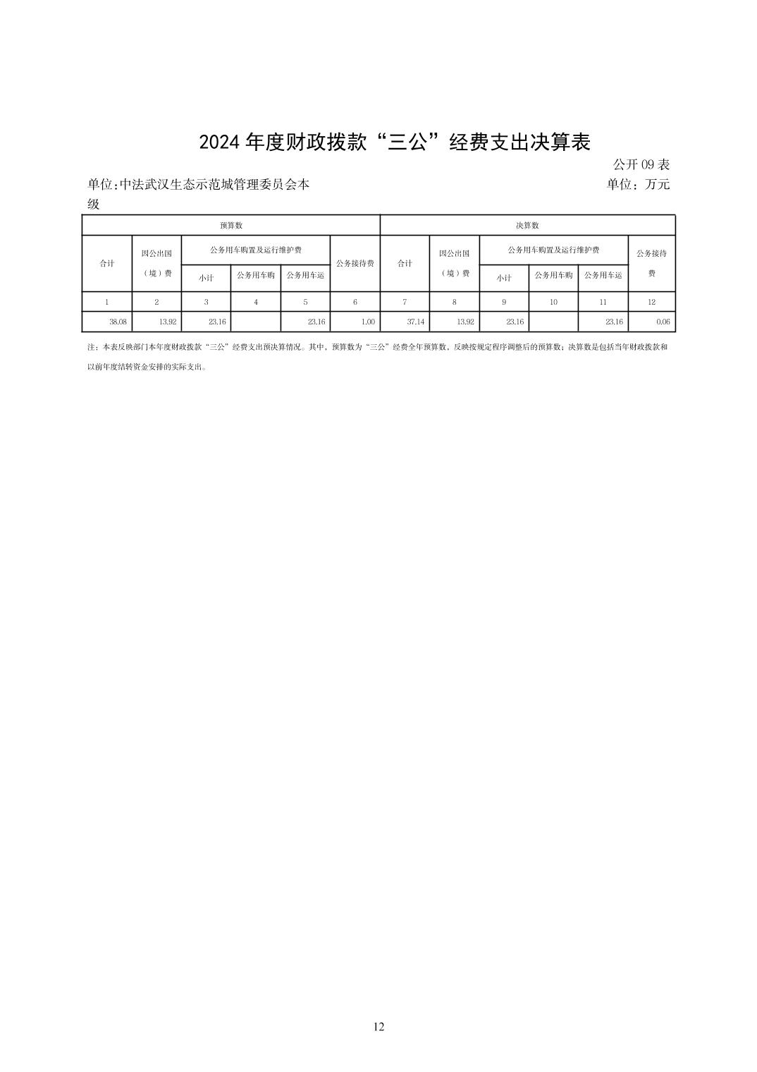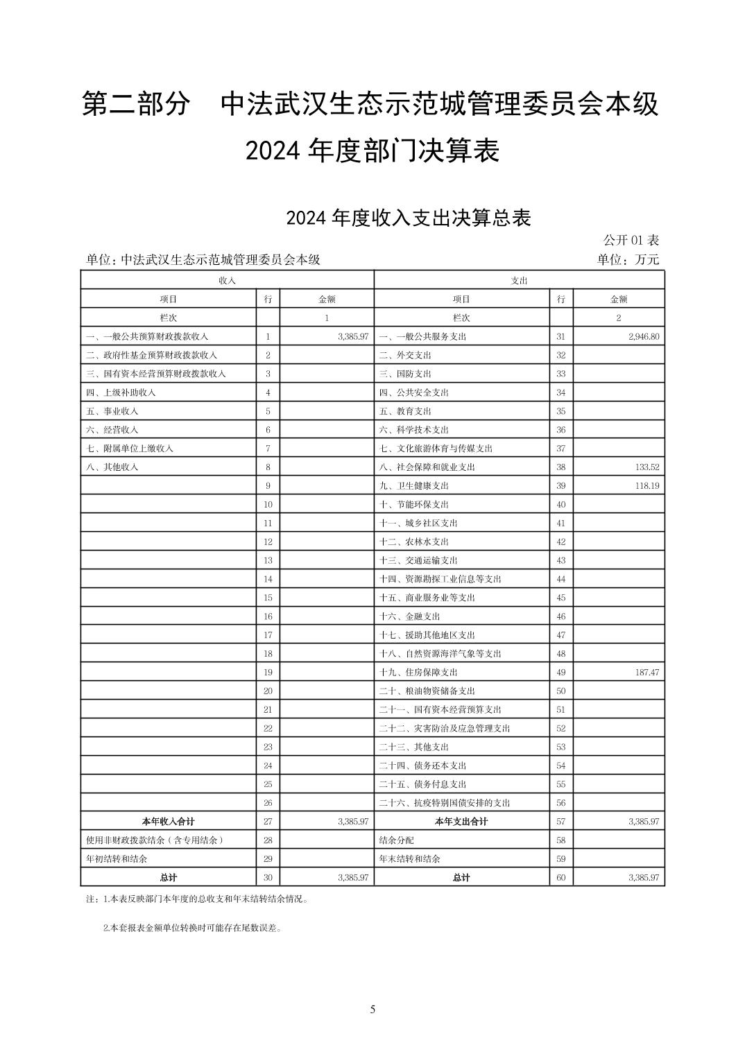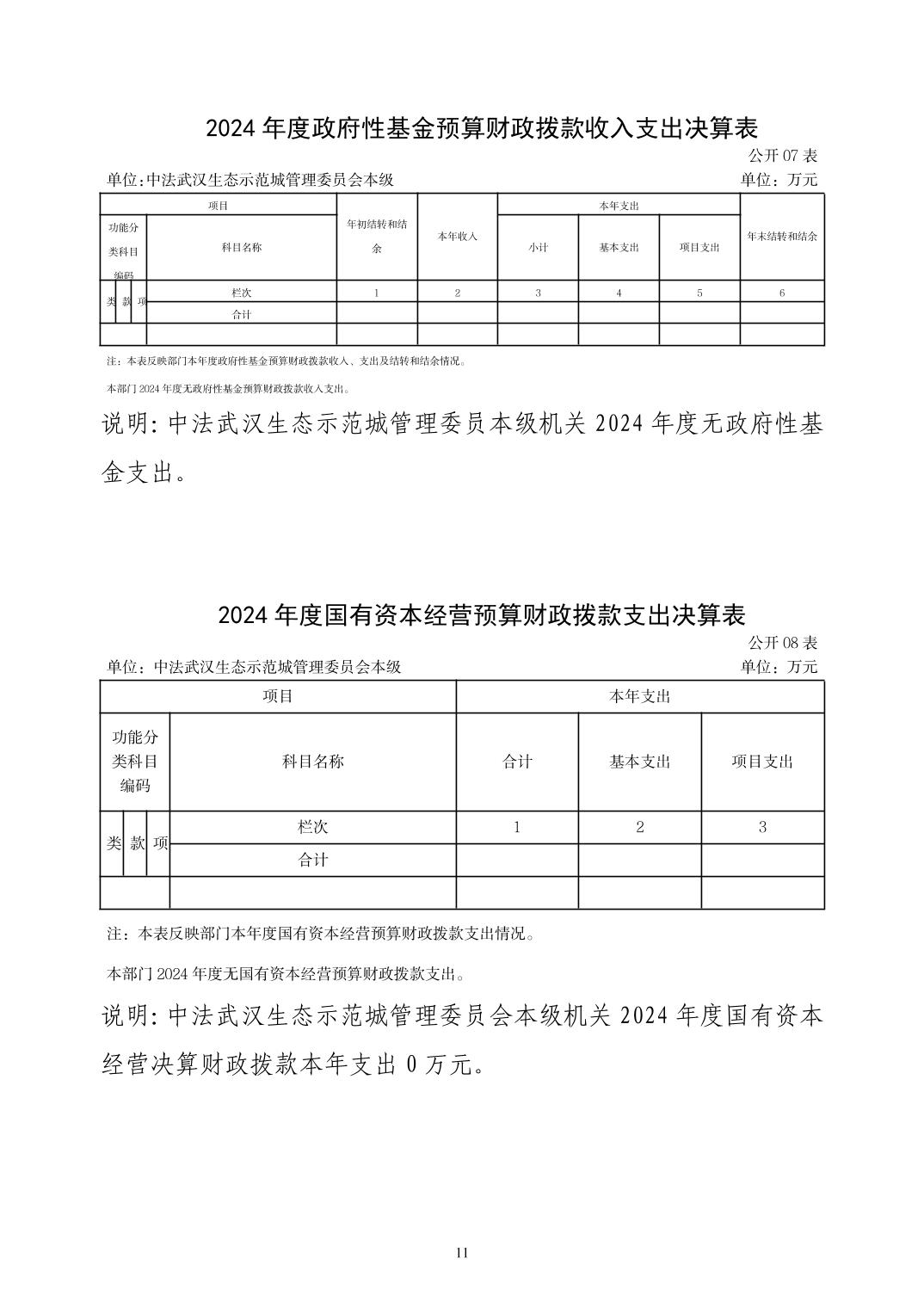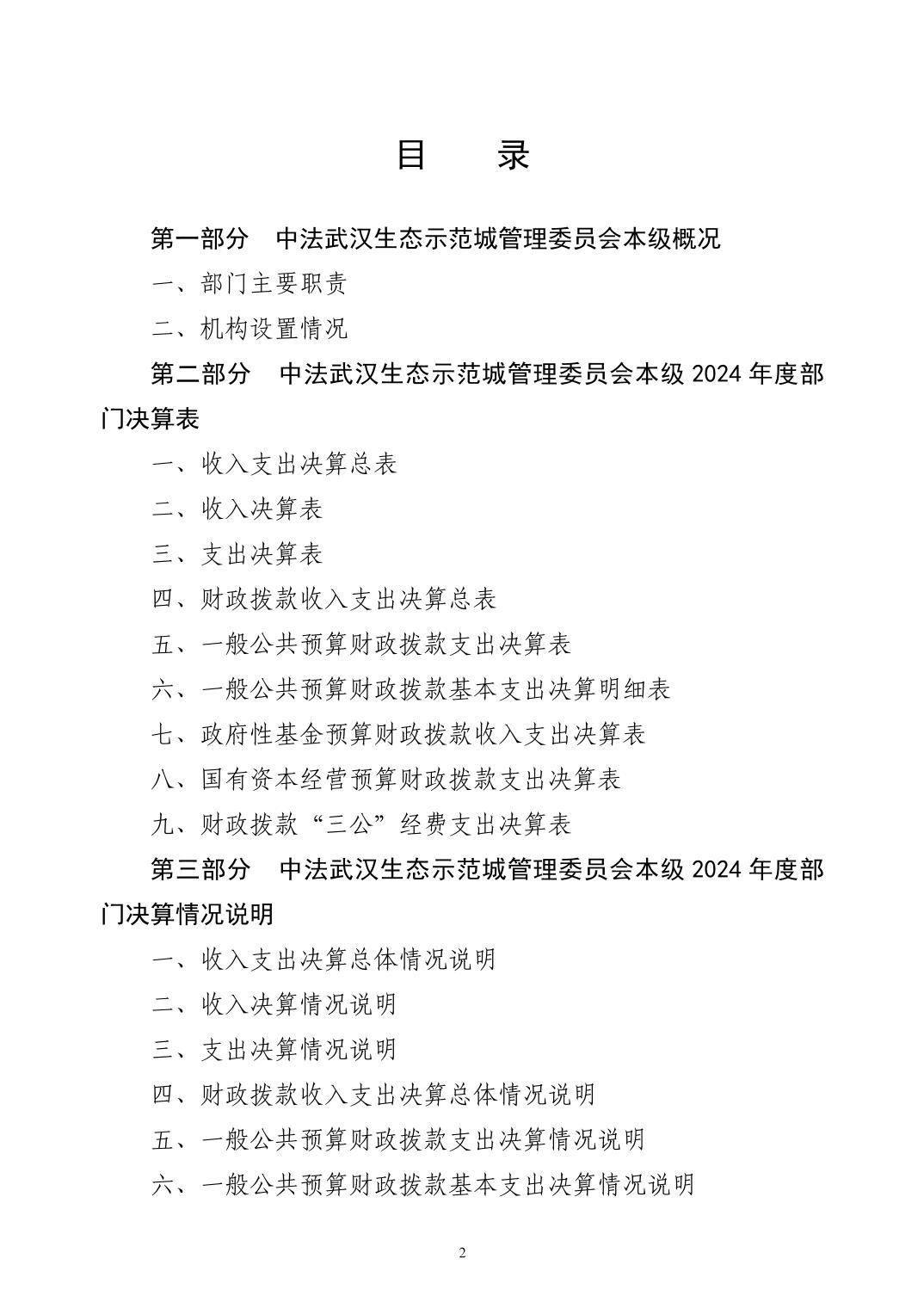 2024年度中法武汉生态示范城管理委员会本级部门决算公开
