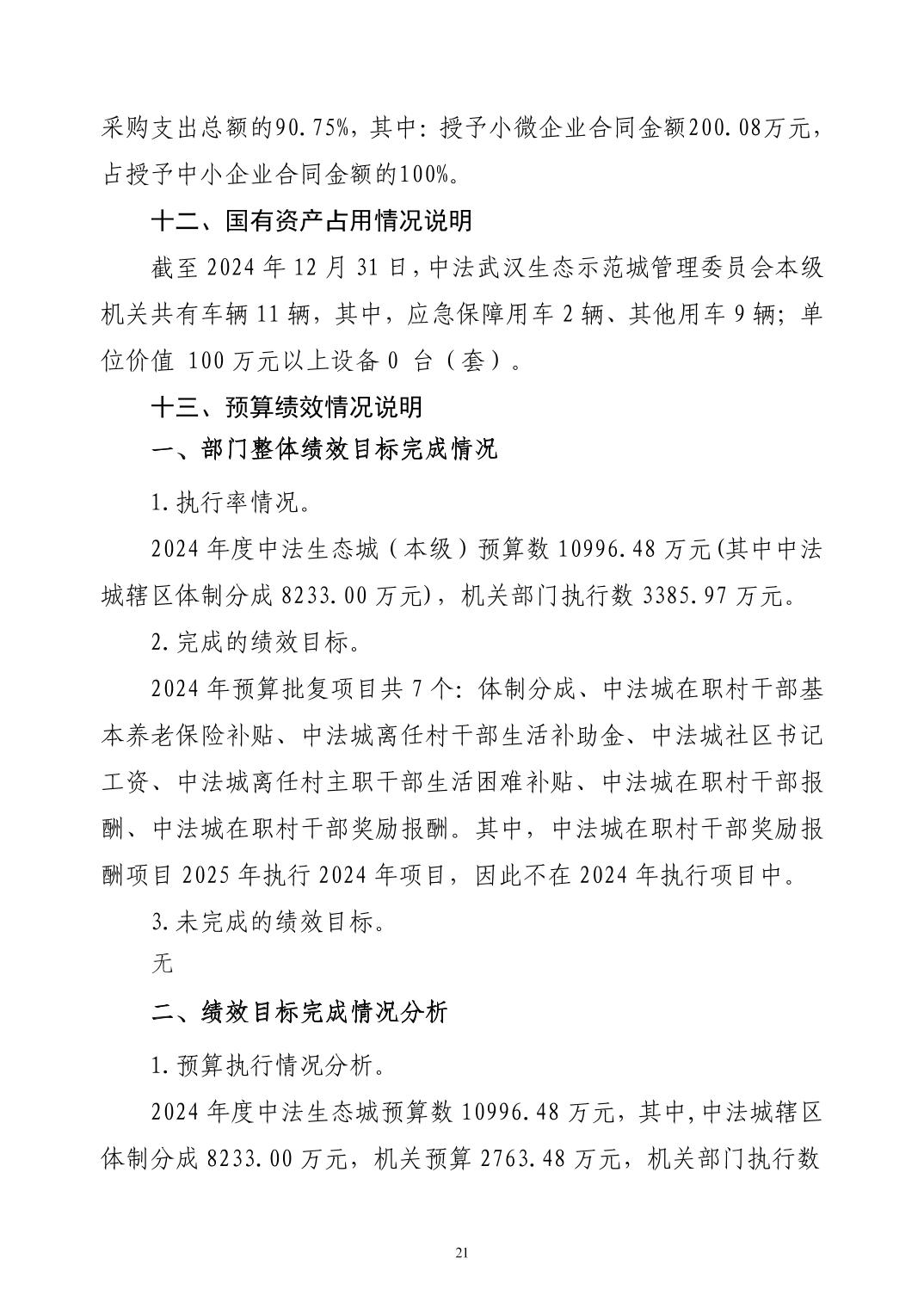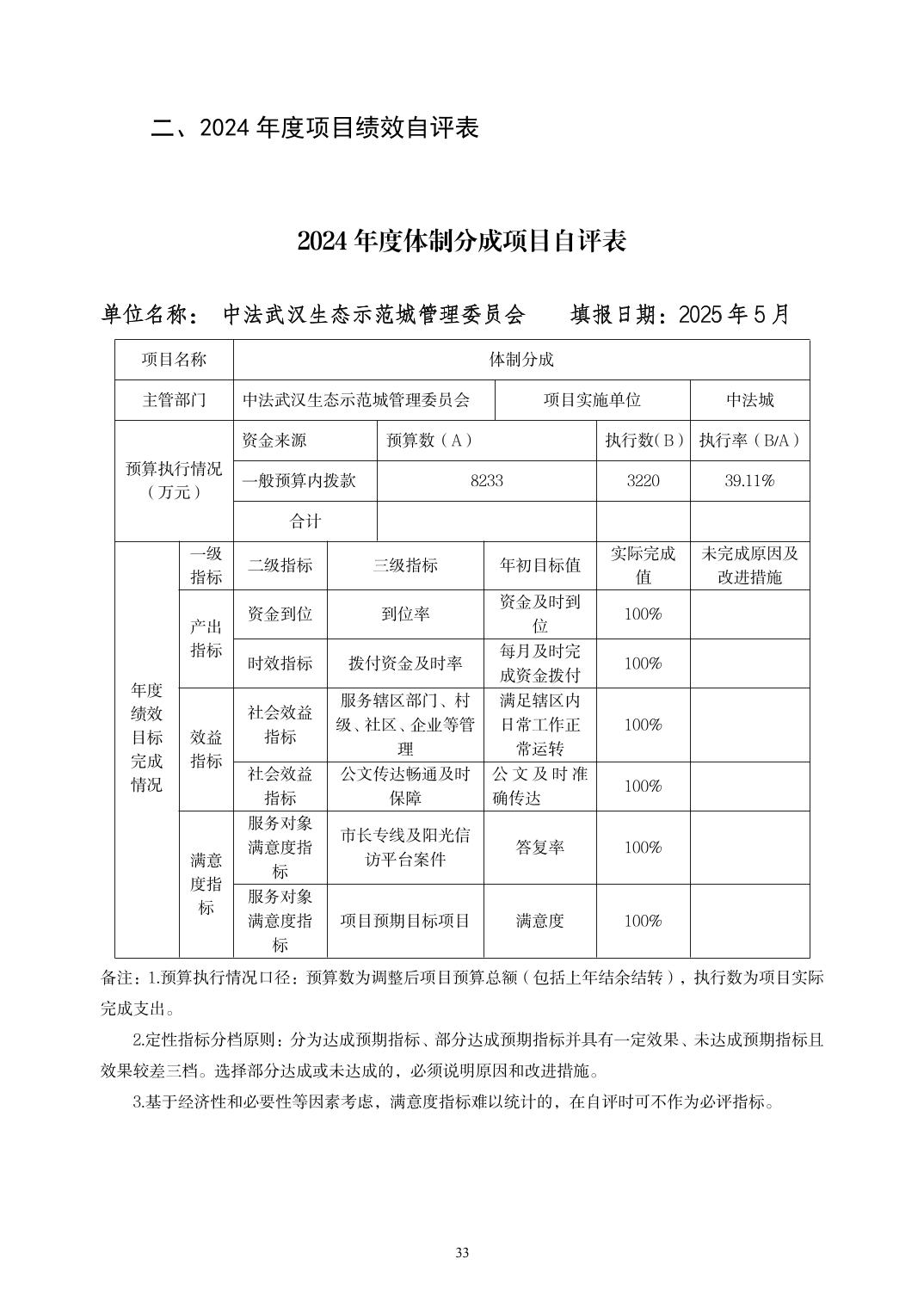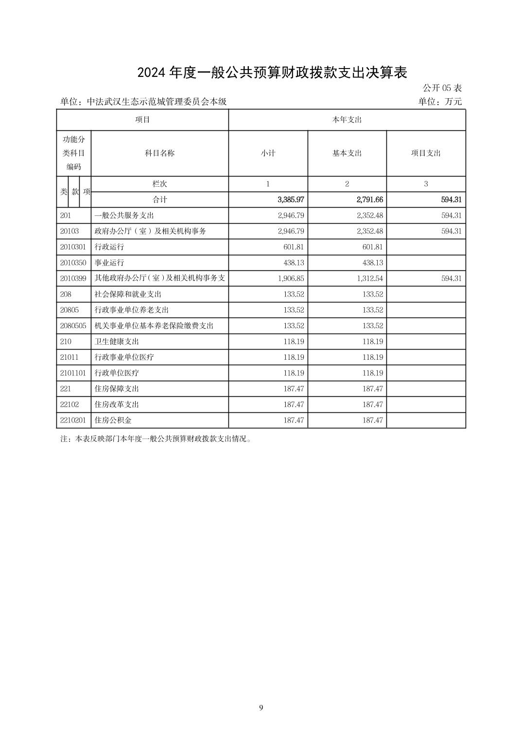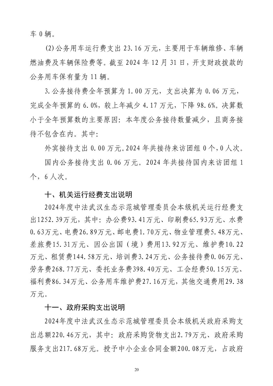 2024年度中法武汉生态示范城管理委员会本级部门决算公开
