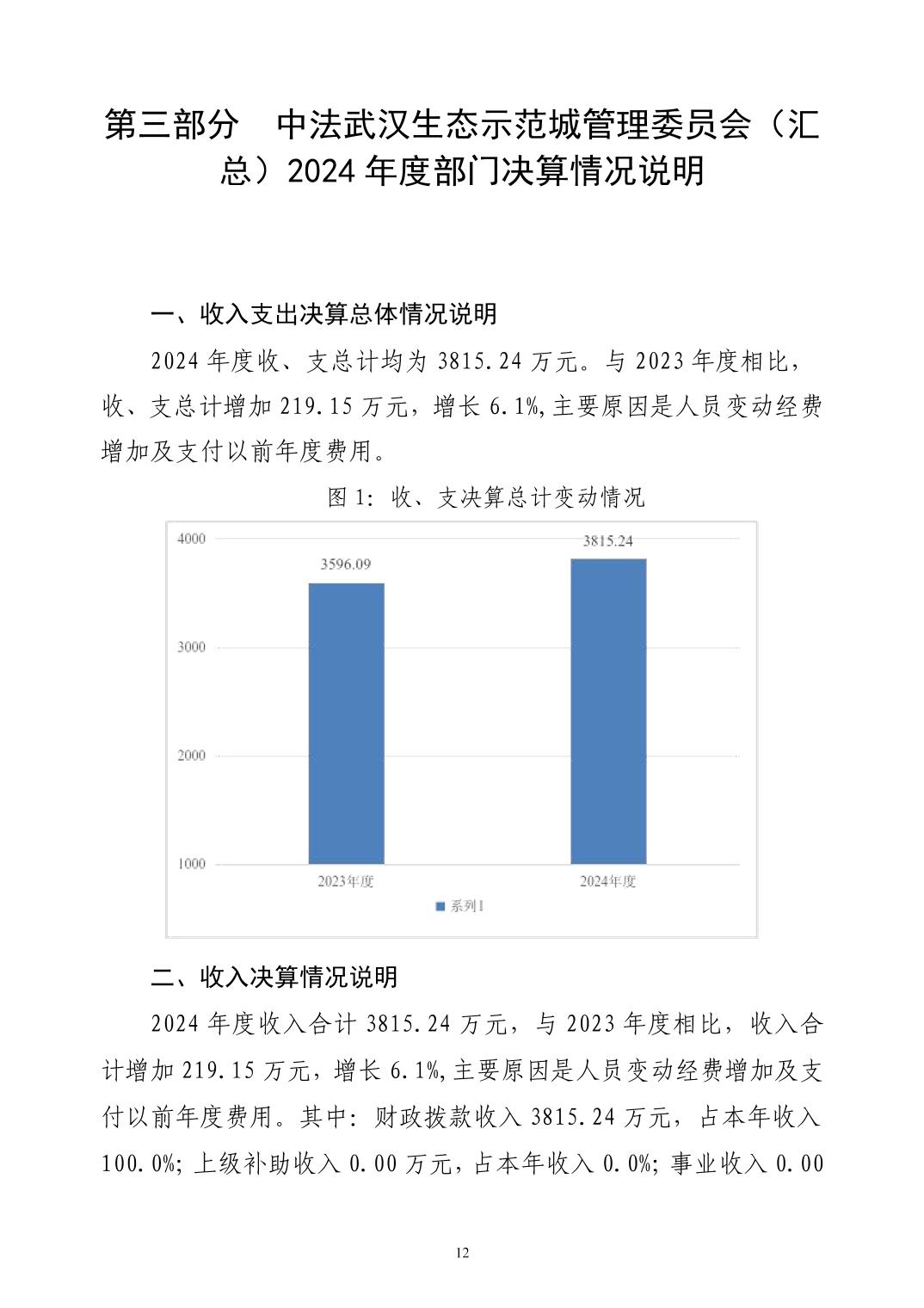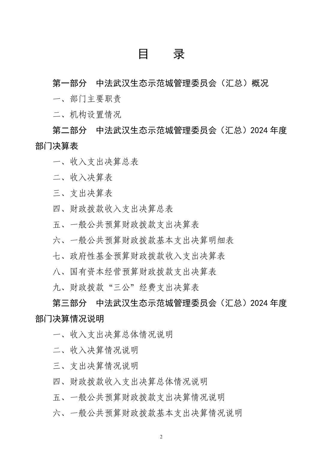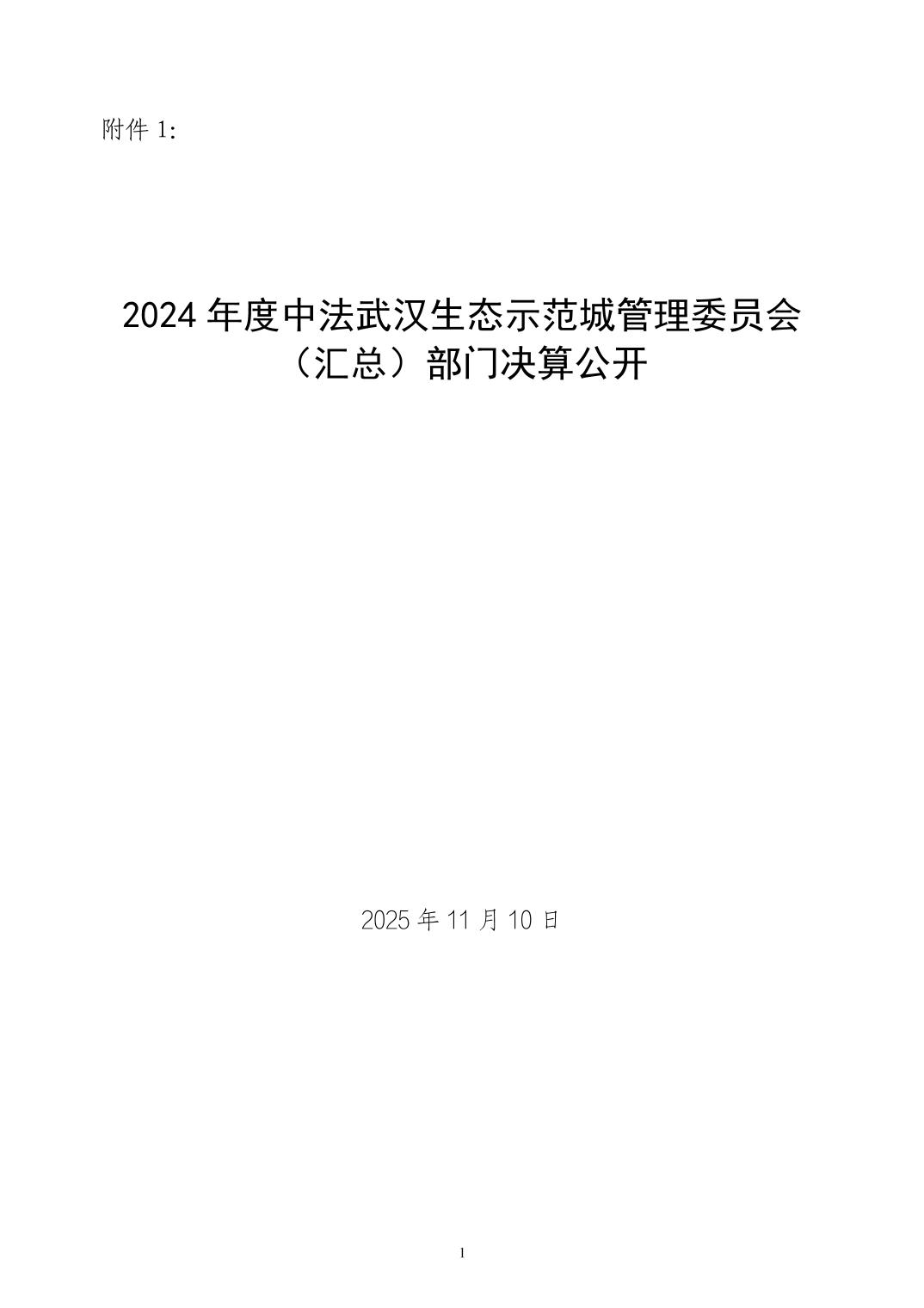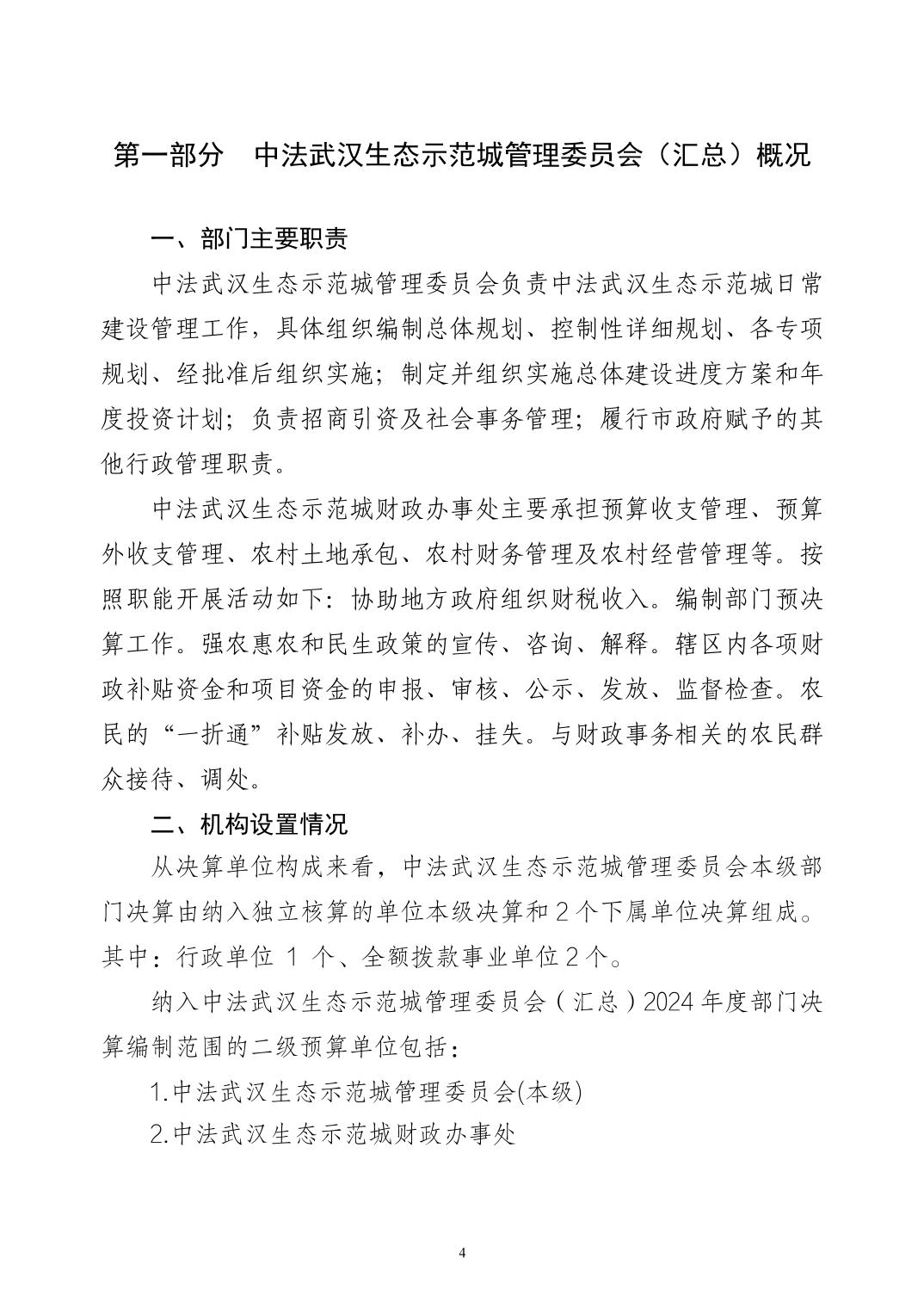 2024年度中法武汉生态示范城管理委员会(汇总)部门决算公开
