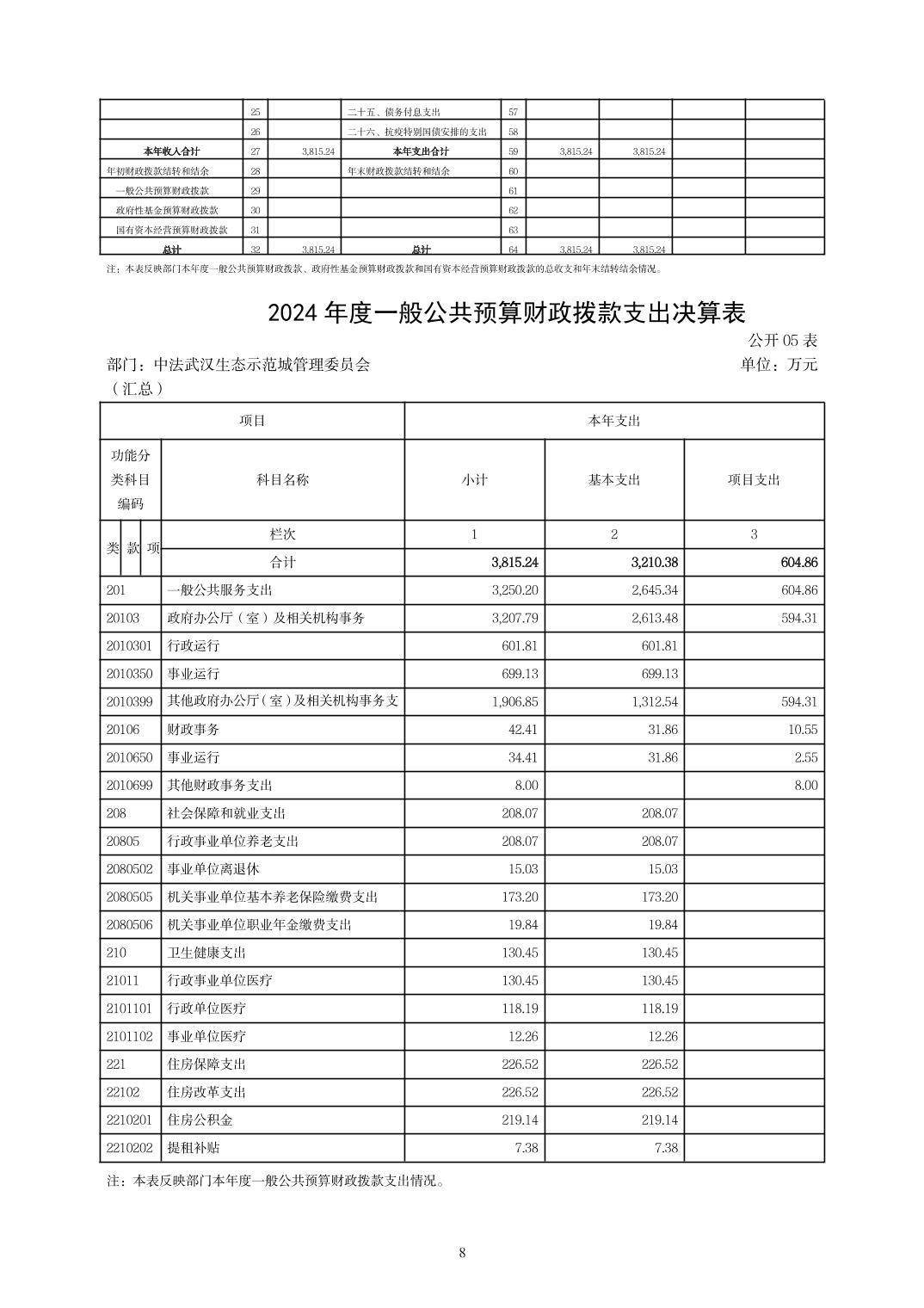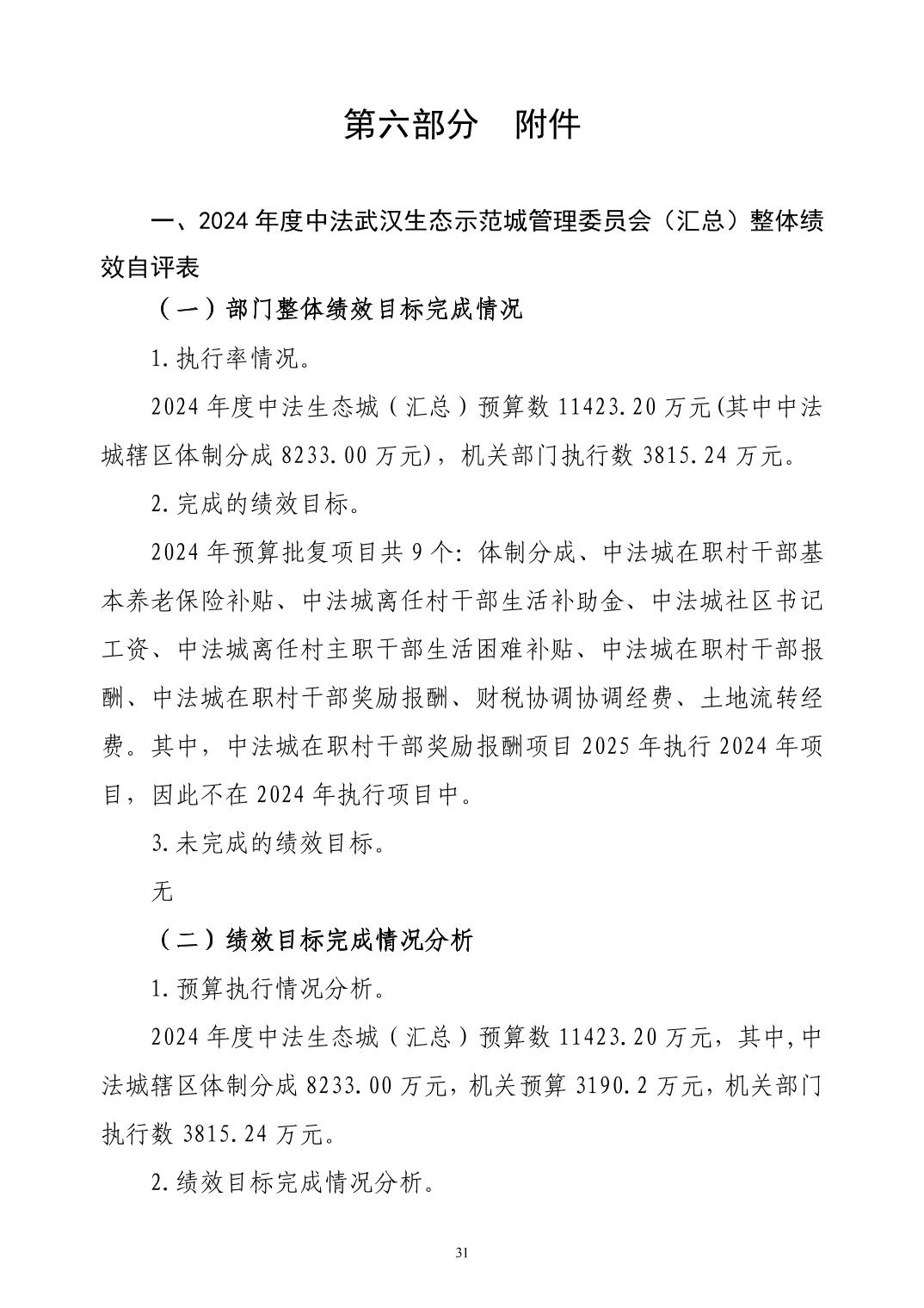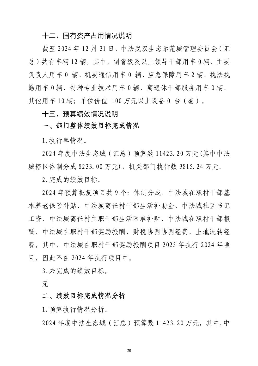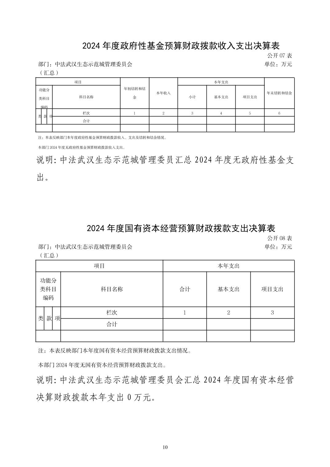 2024年度中法武汉生态示范城管理委员会(汇总)部门决算公开