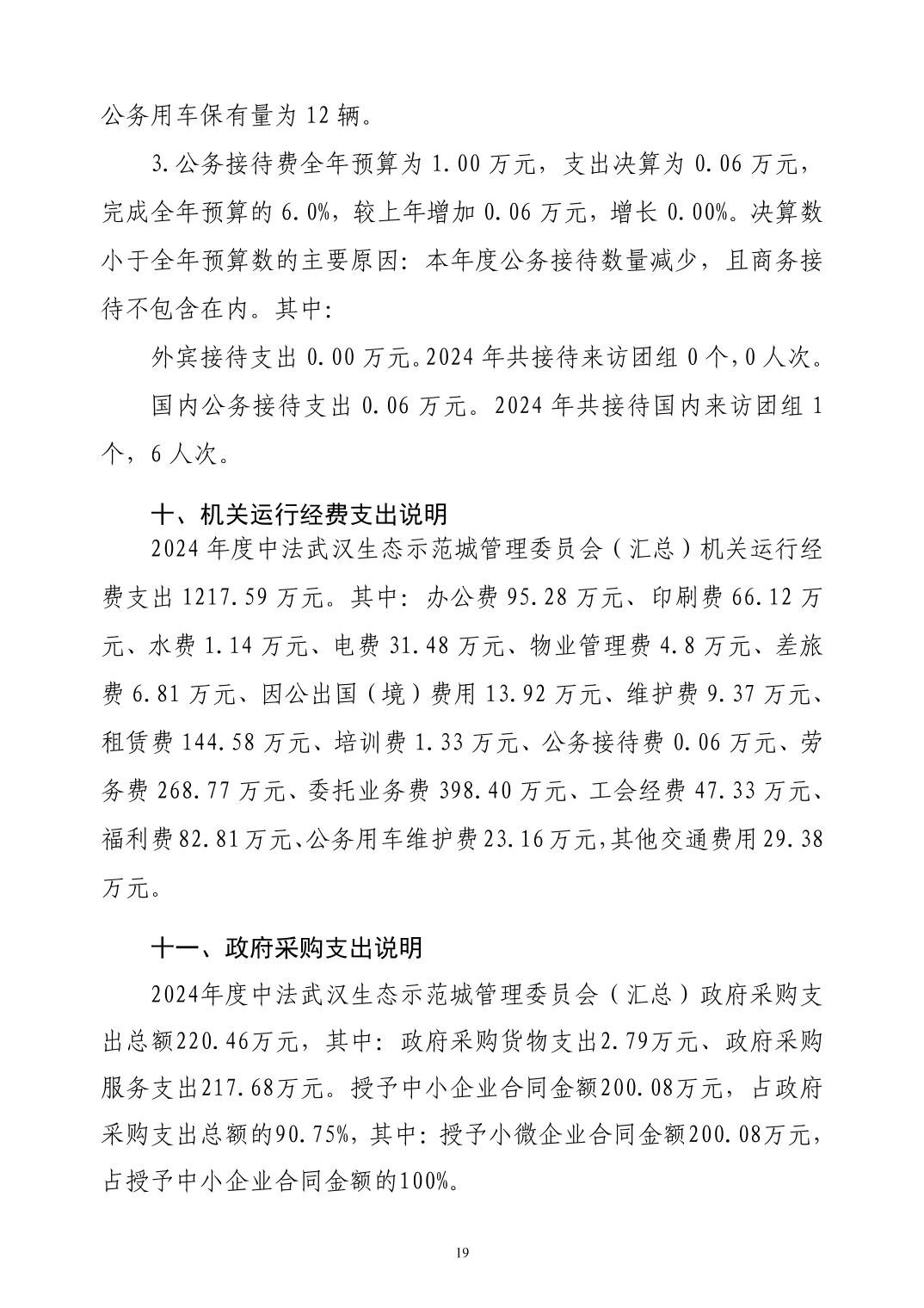 | 发布机构 | 中法武汉生态示范城管理委员会 | 文 号 | 2024年度中法武汉生态示范城管理委员会(汇总)部门决算公开 |