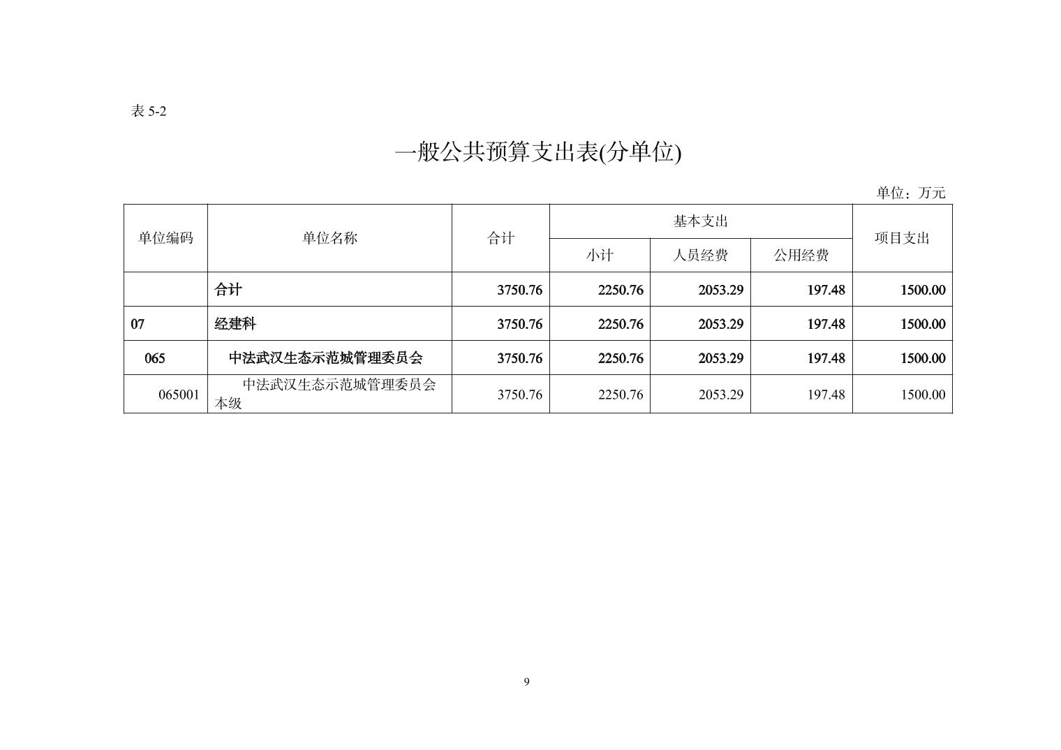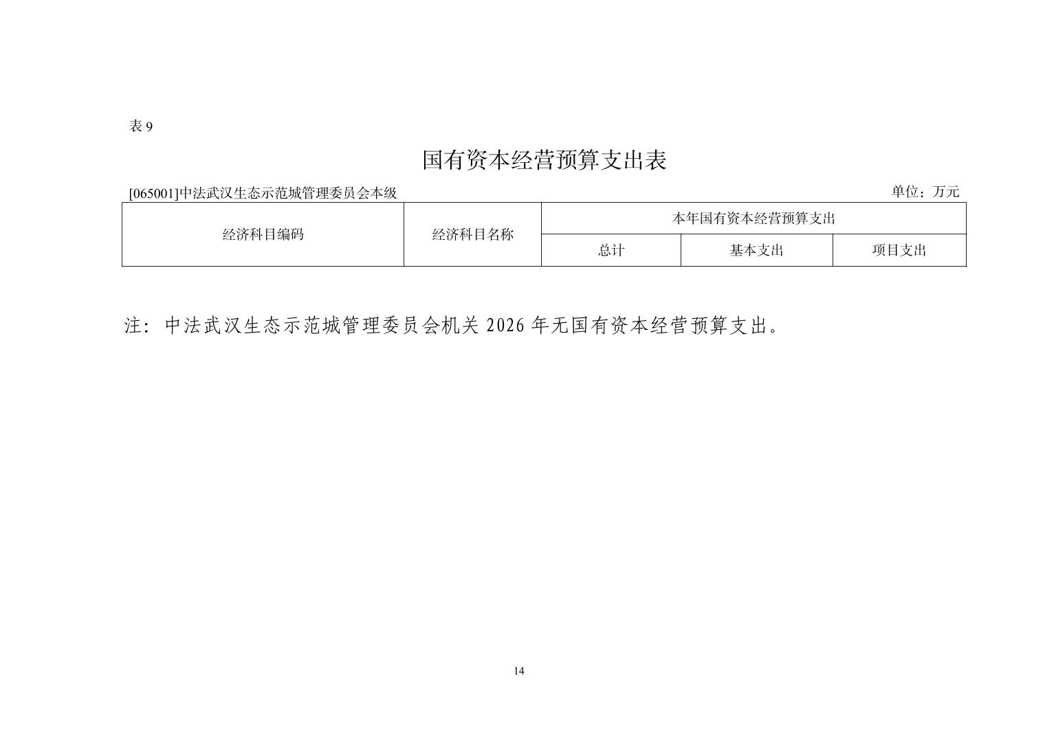 中法武汉生态示范城管理委员会(本级) 2026年部门预算