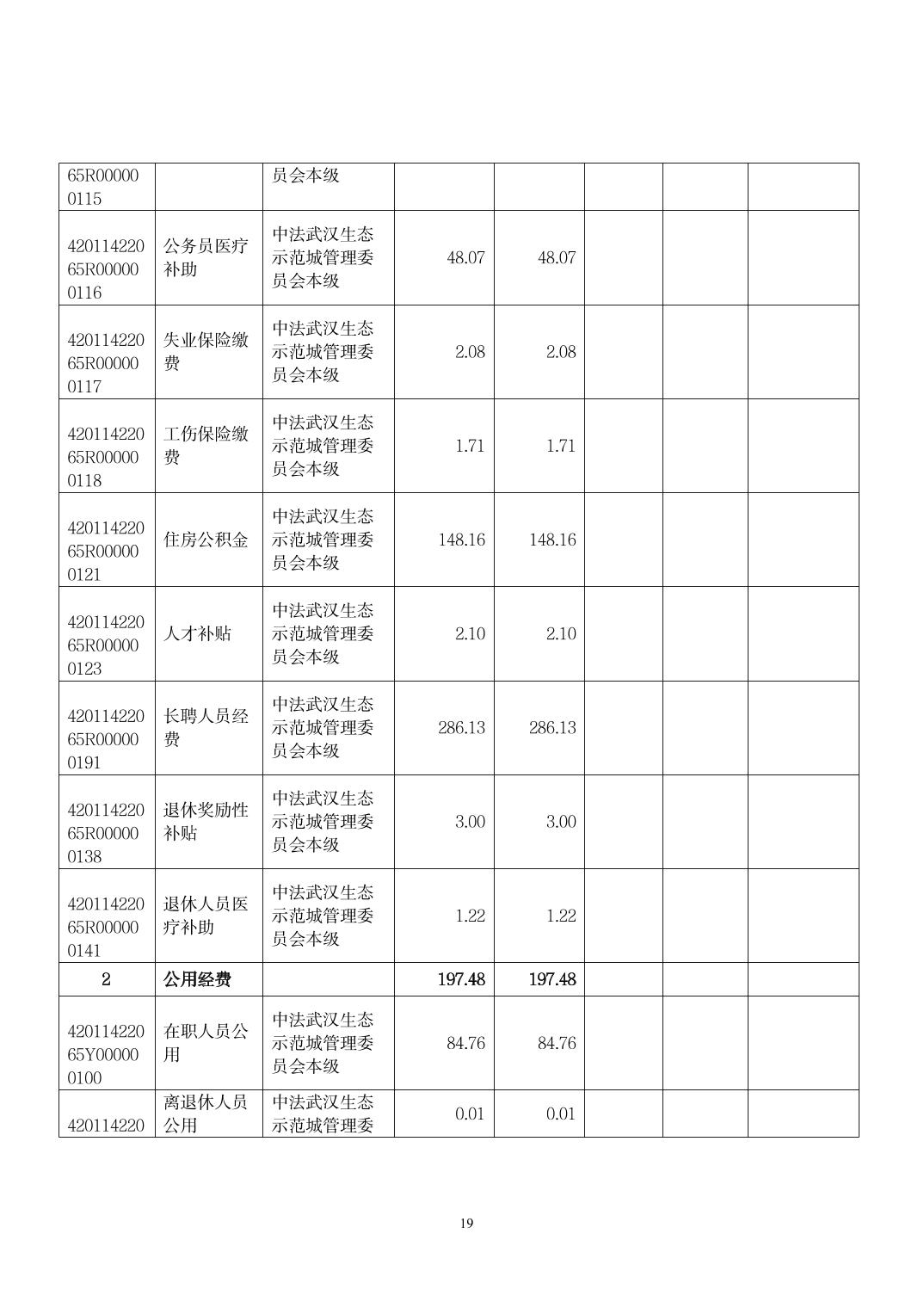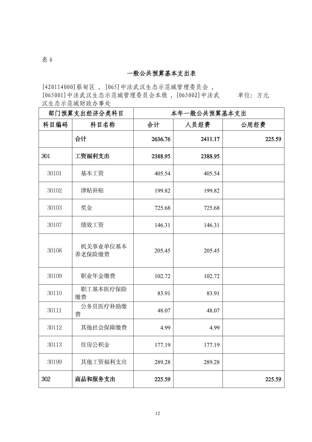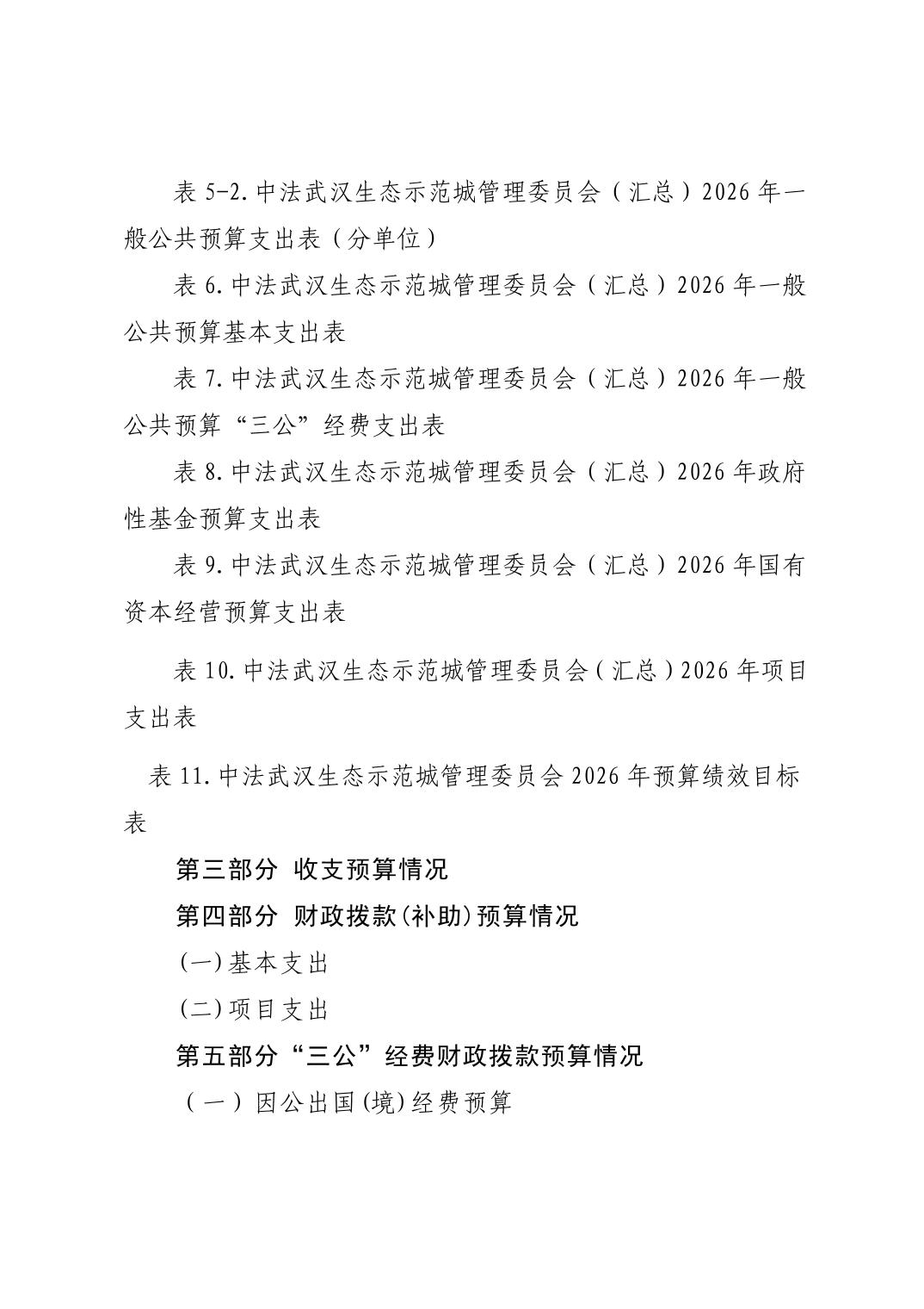 中法武汉生态示范城管理委员会(汇总) 2026年部门预算