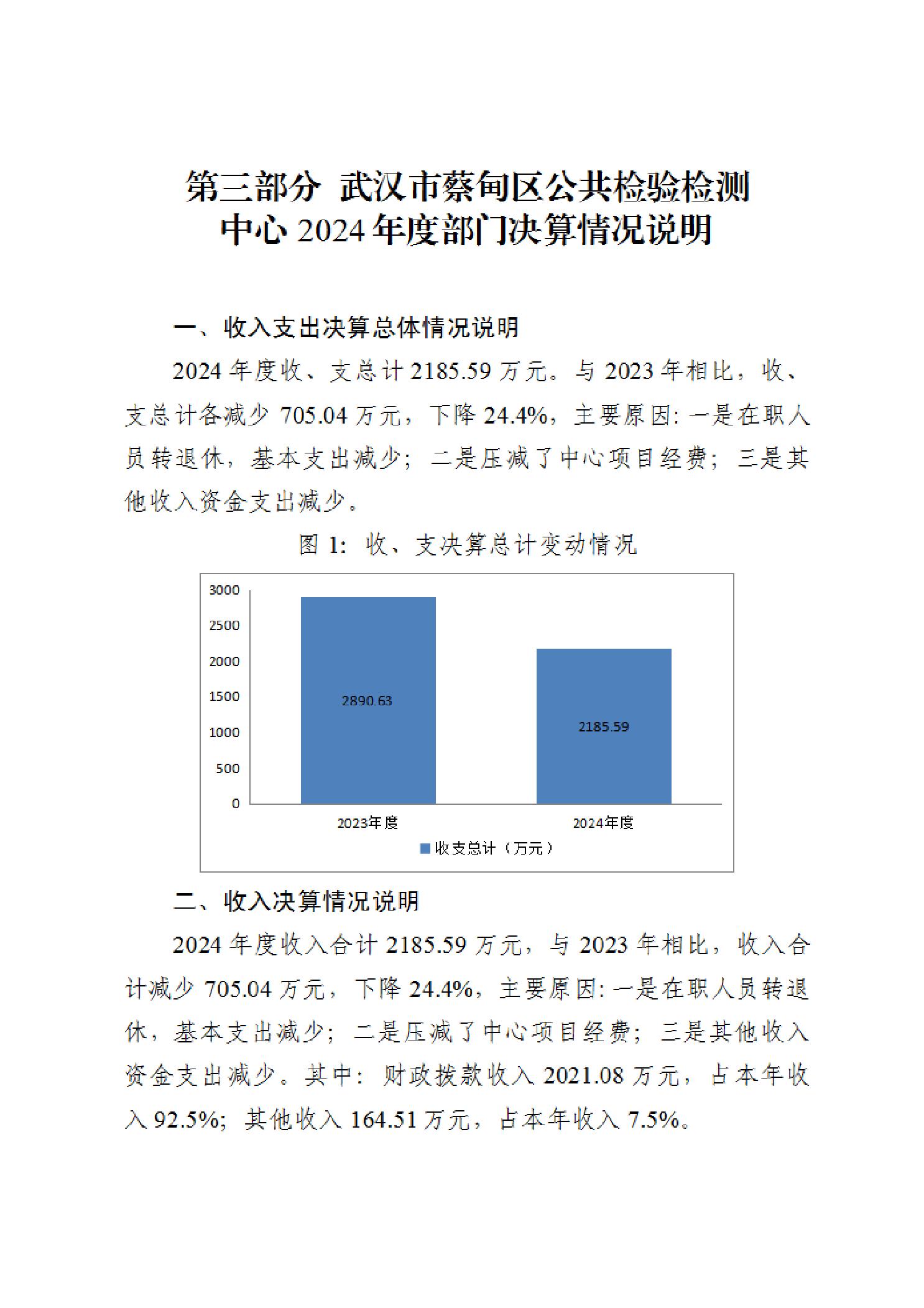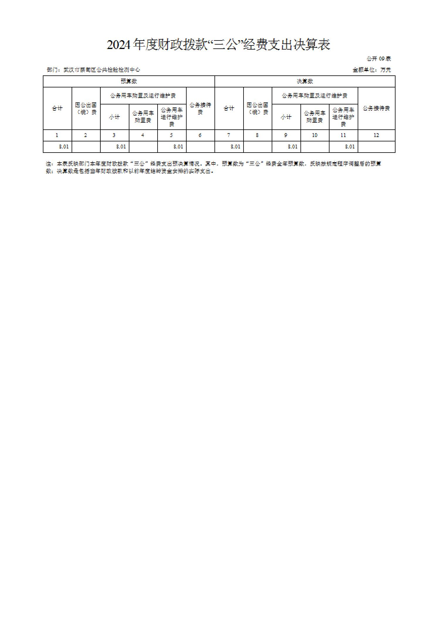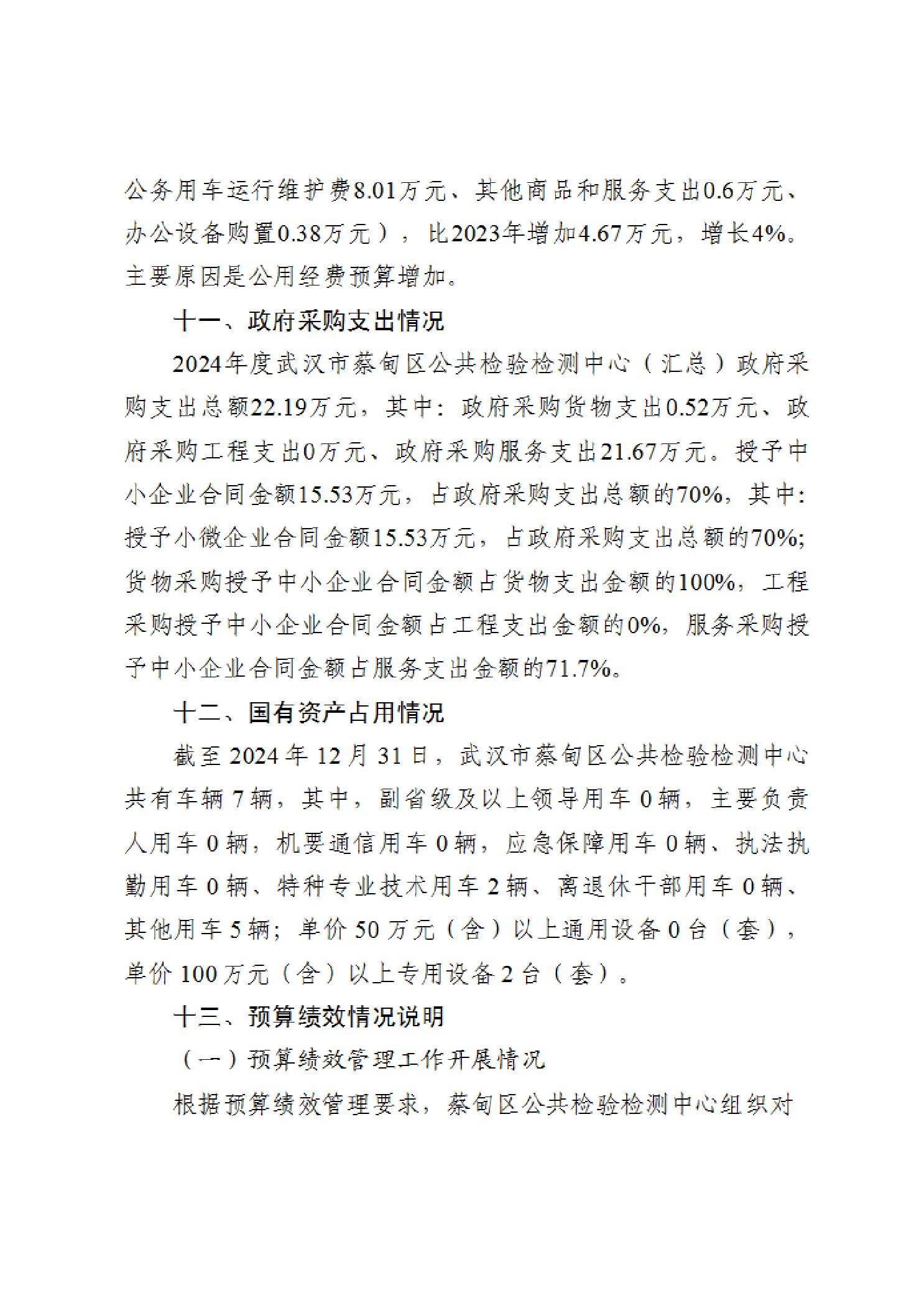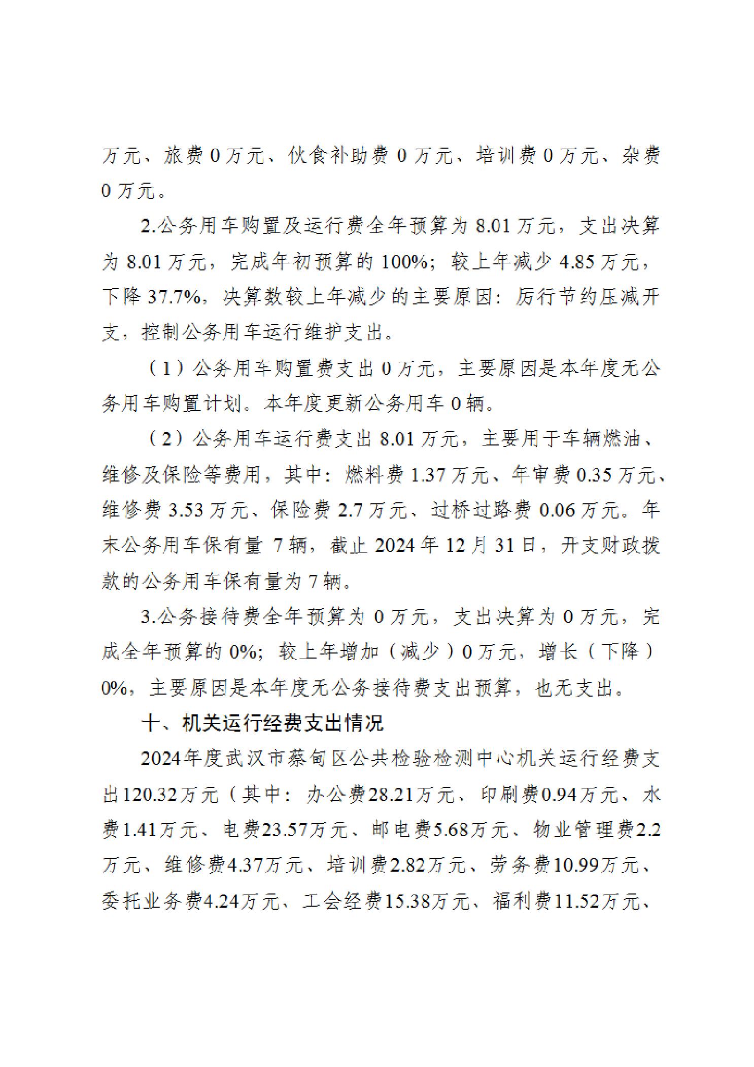 武汉市蔡甸区公共检验检测中心2024年度部门决算公开