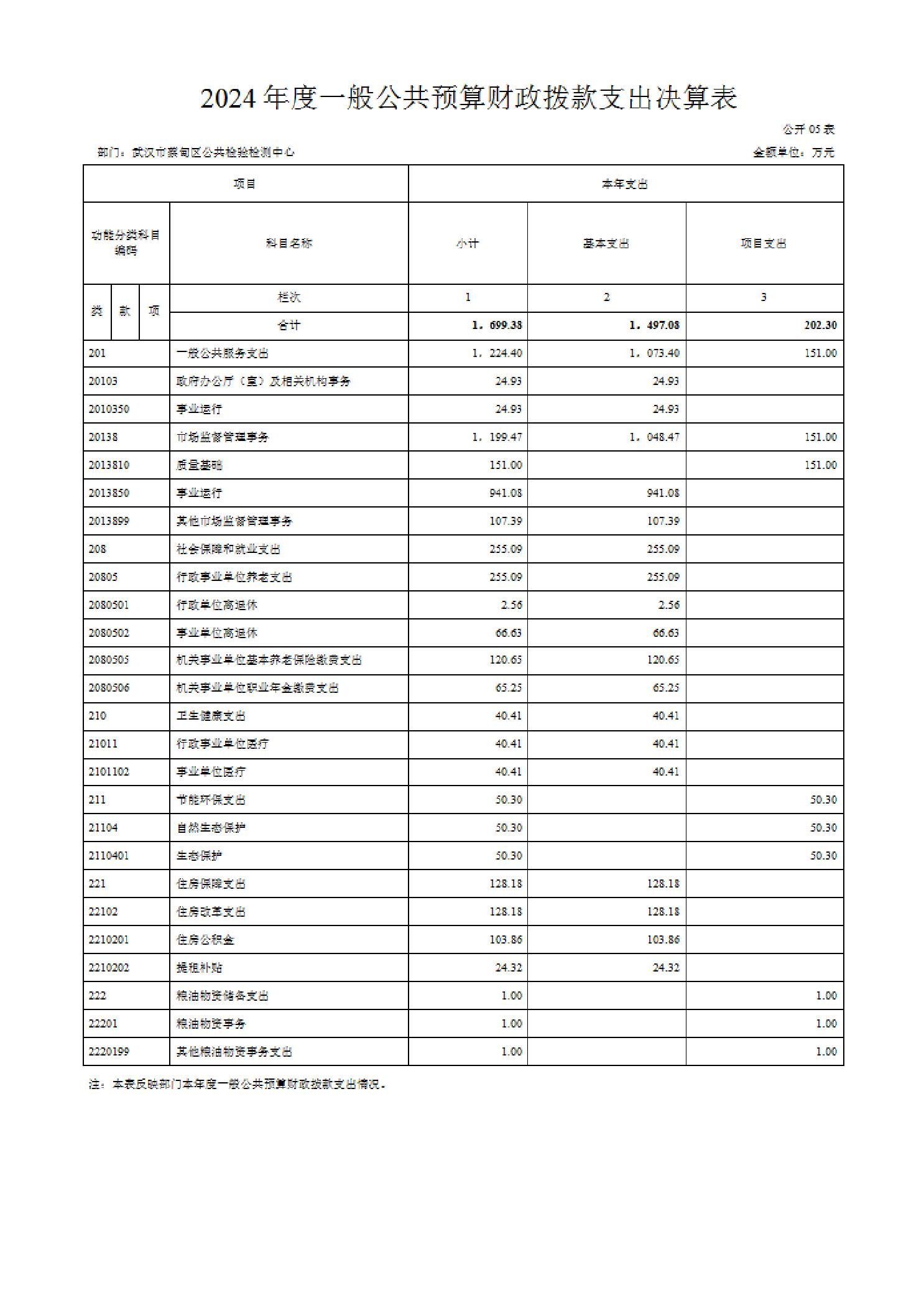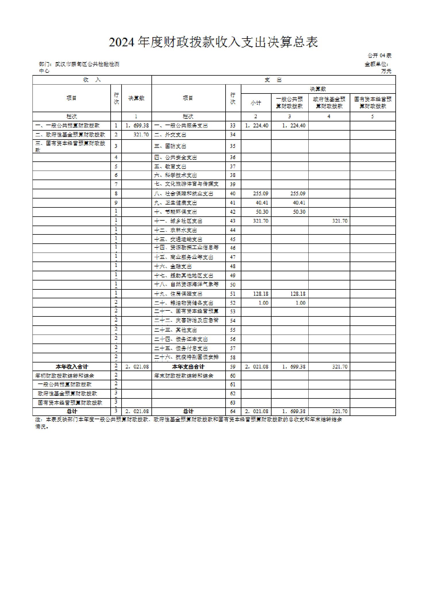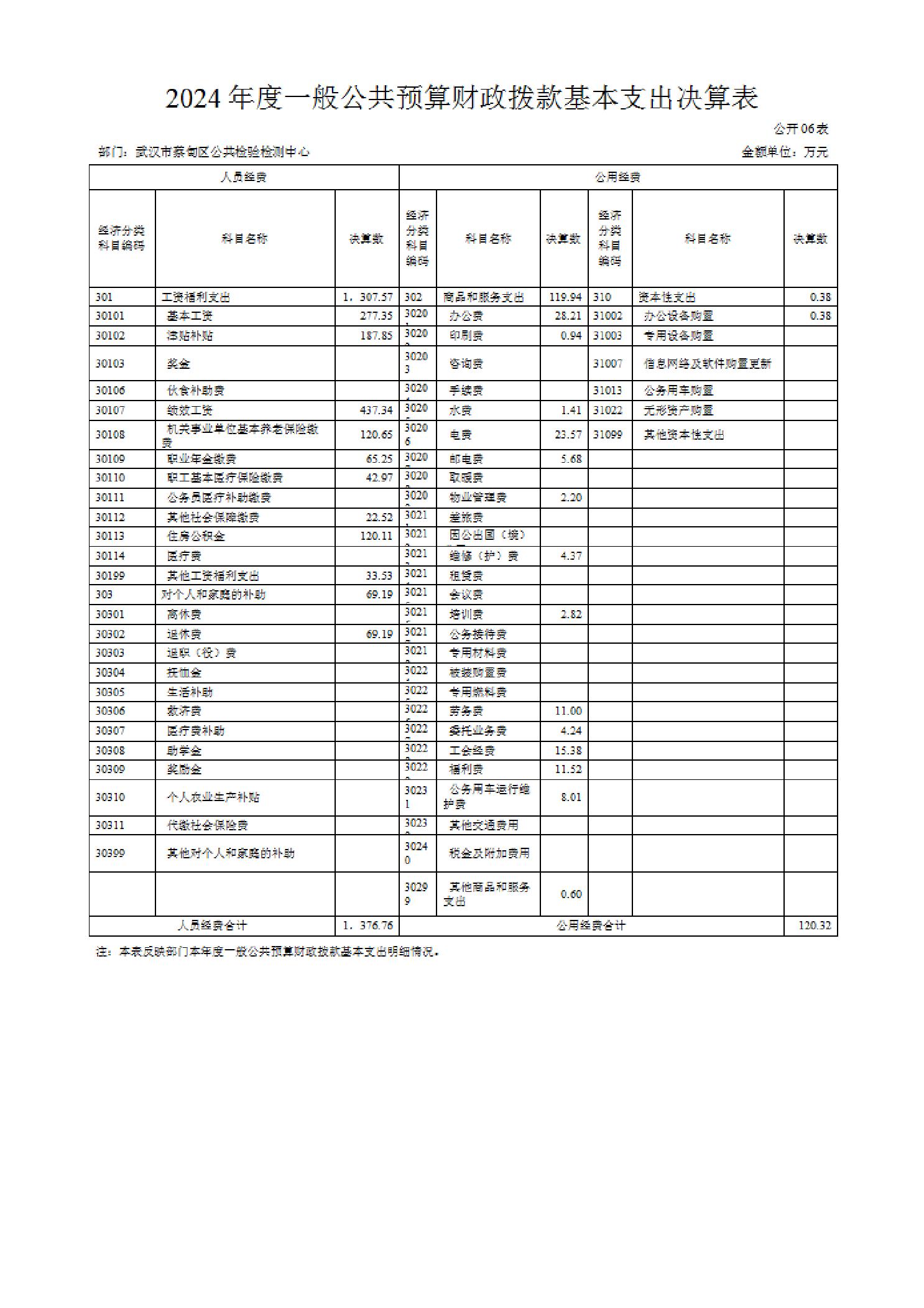 武汉市蔡甸区公共检验检测中心2024年度部门决算公开