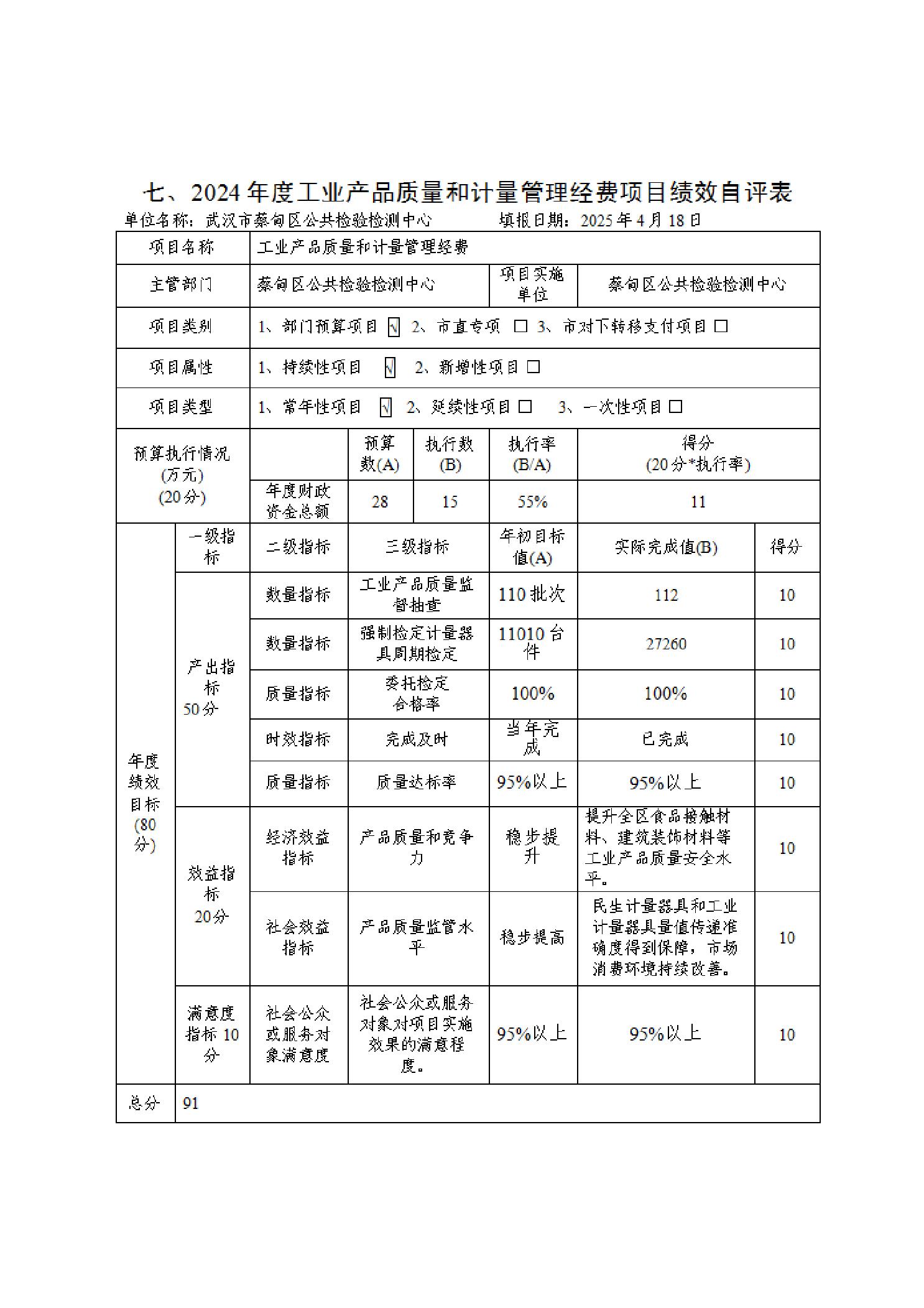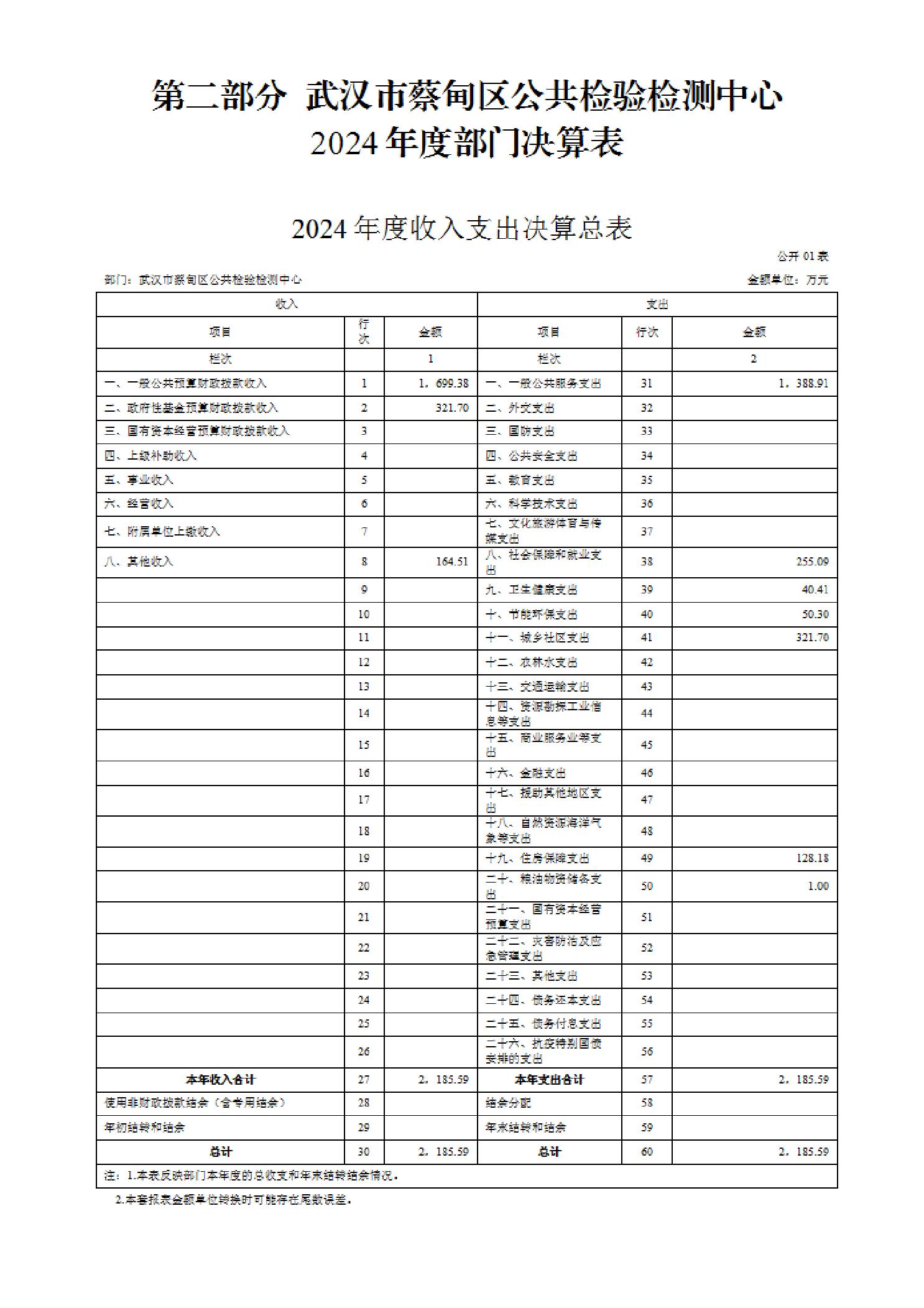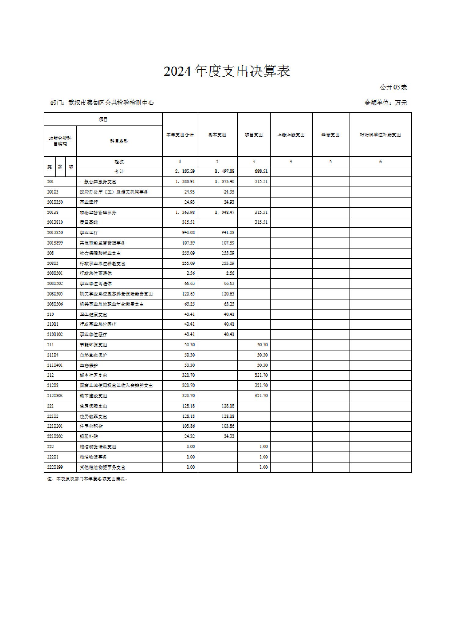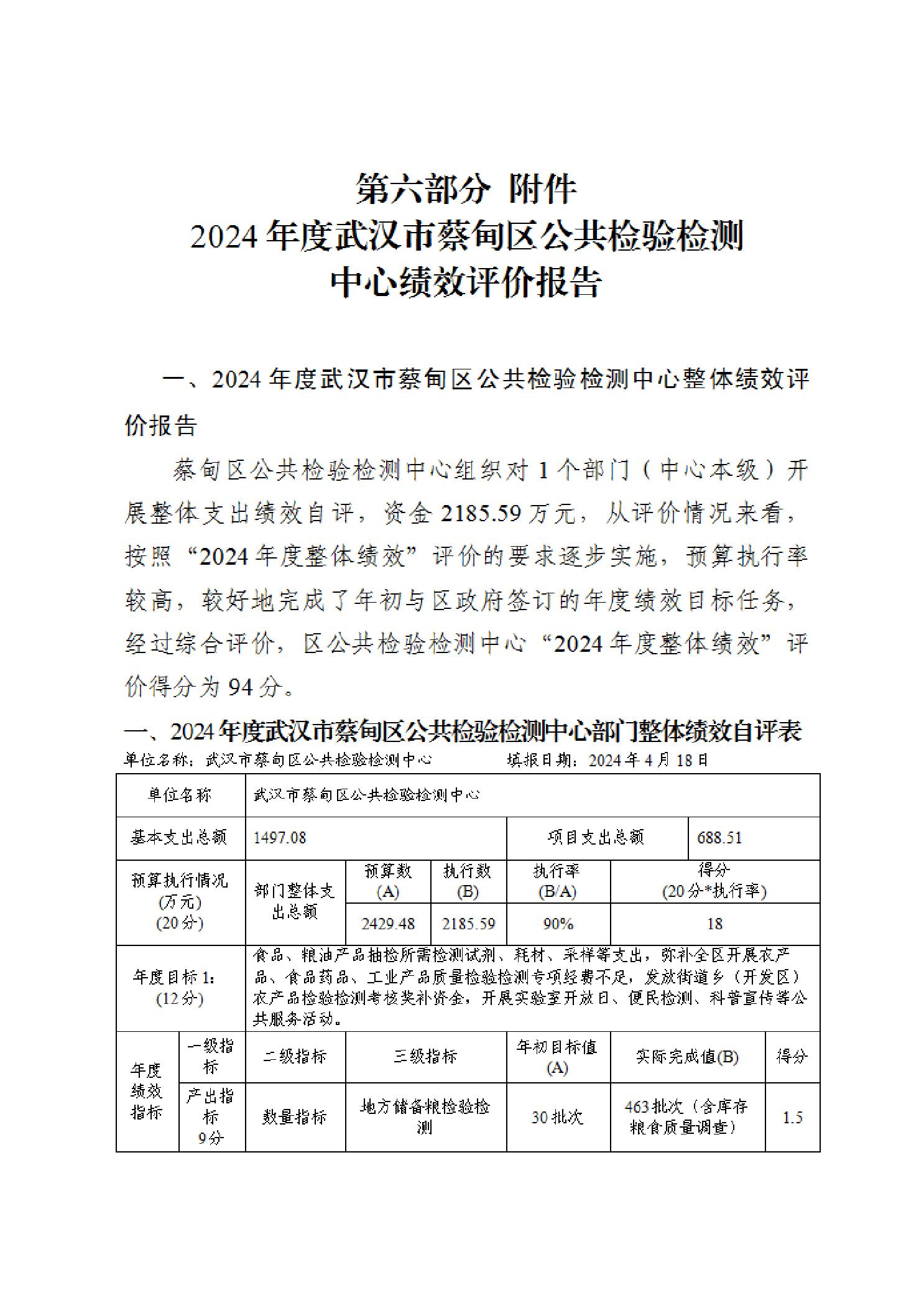武汉市蔡甸区公共检验检测中心2024年度部门决算公开