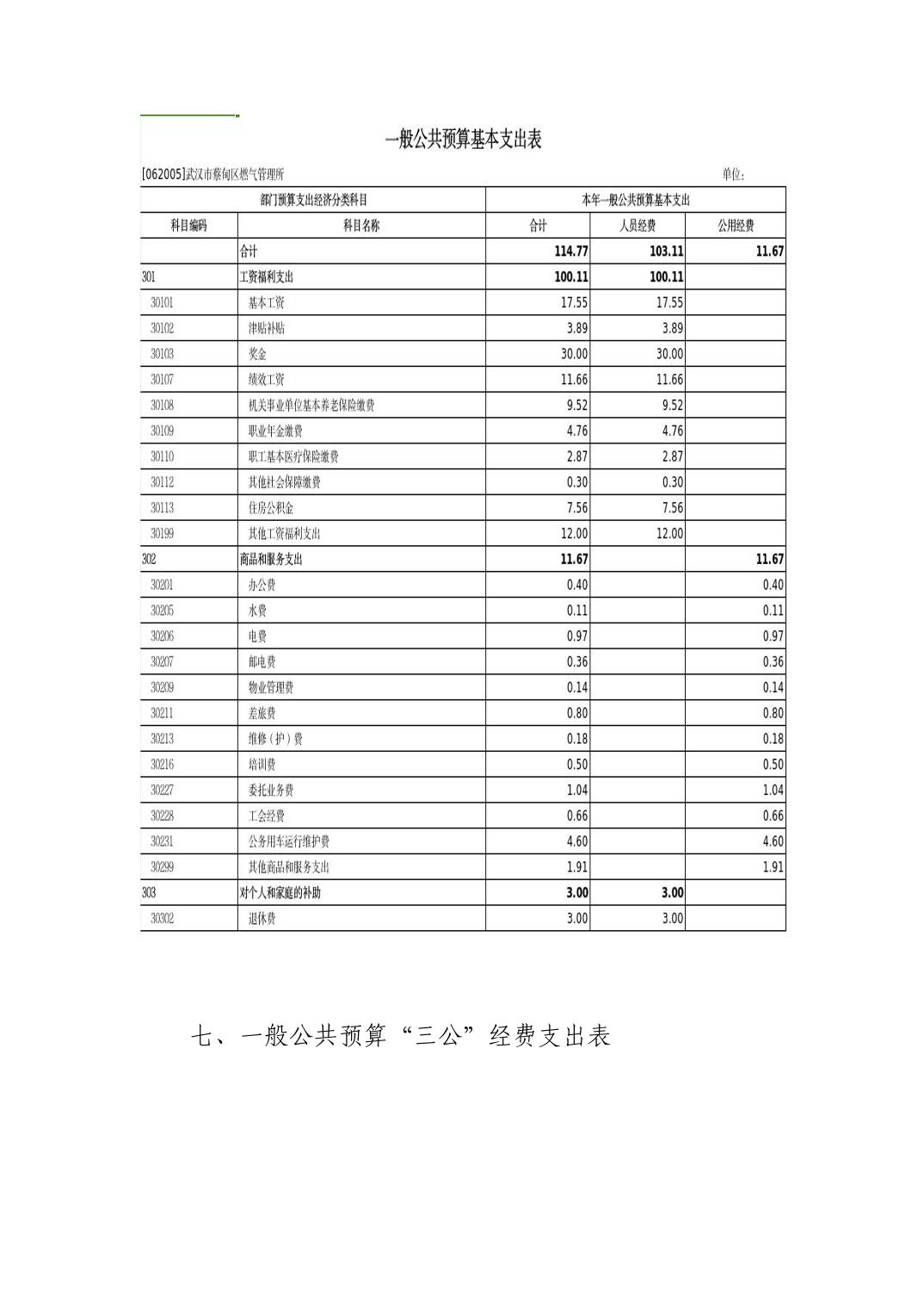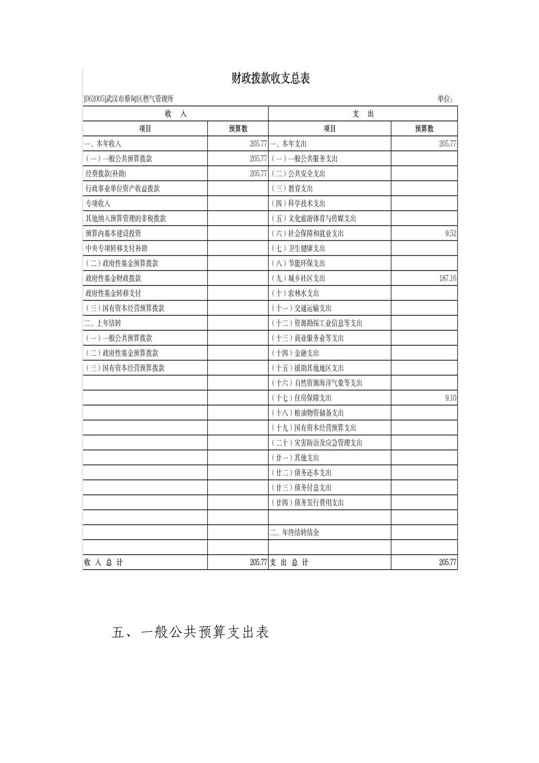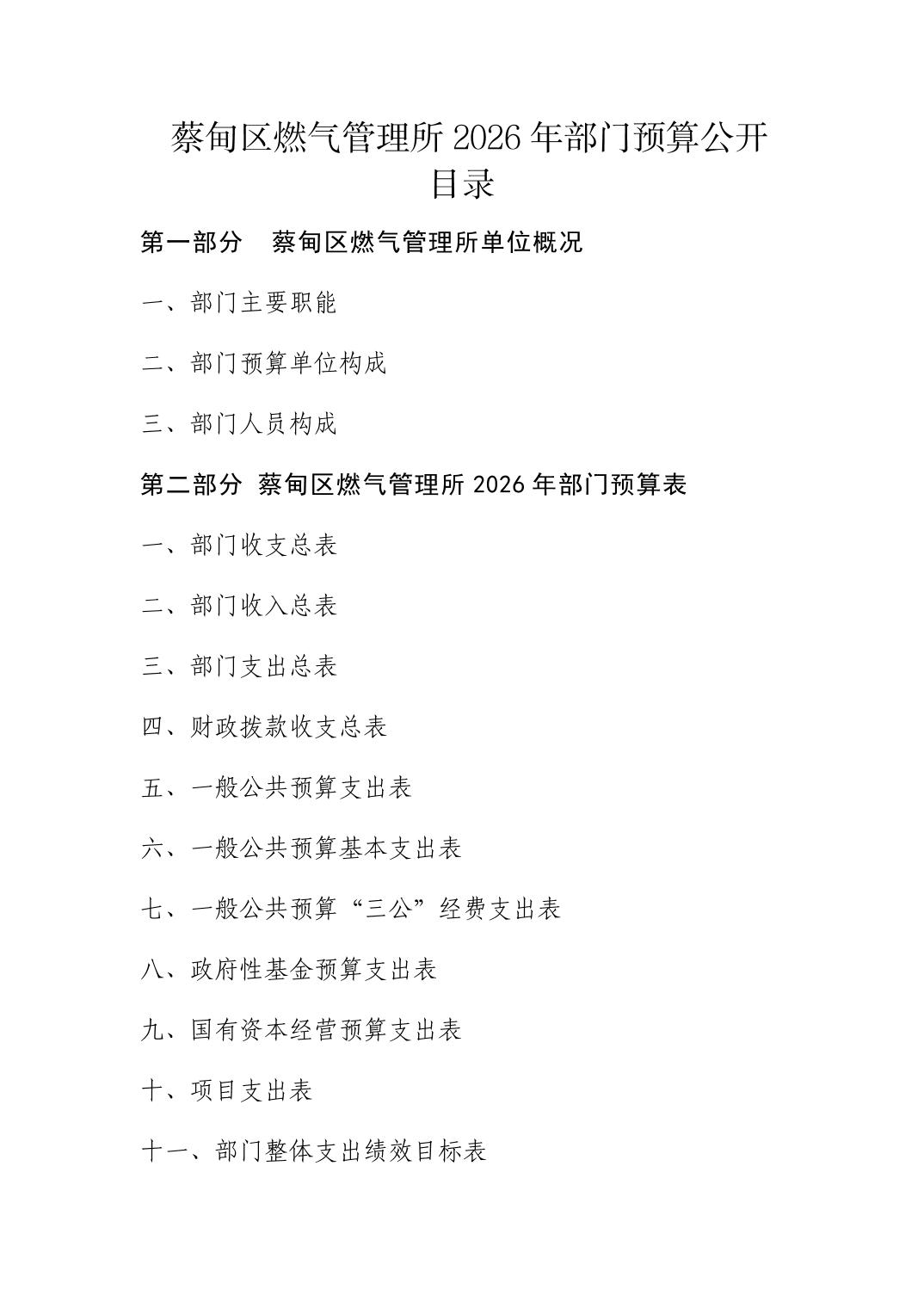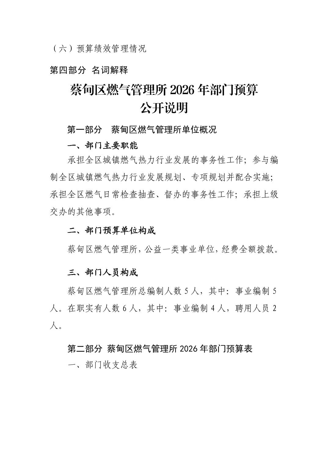 2026年武汉市蔡甸区燃气管理所部门预算公开