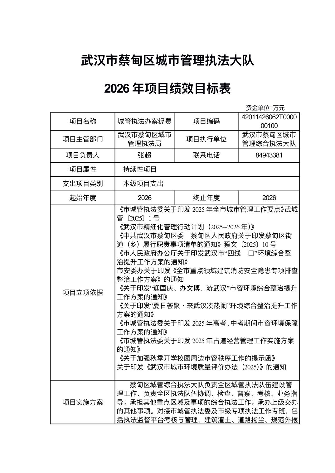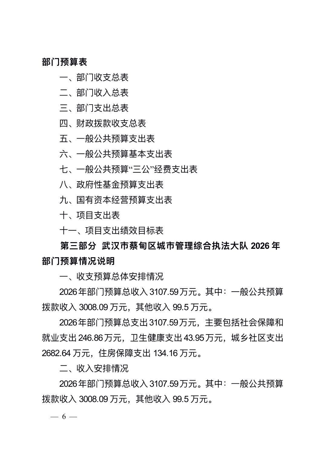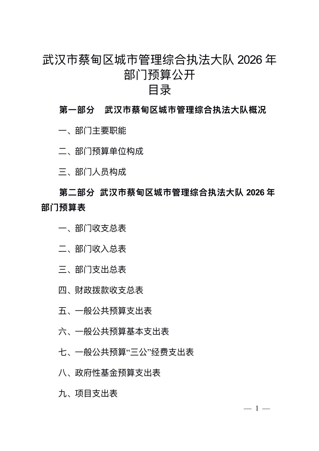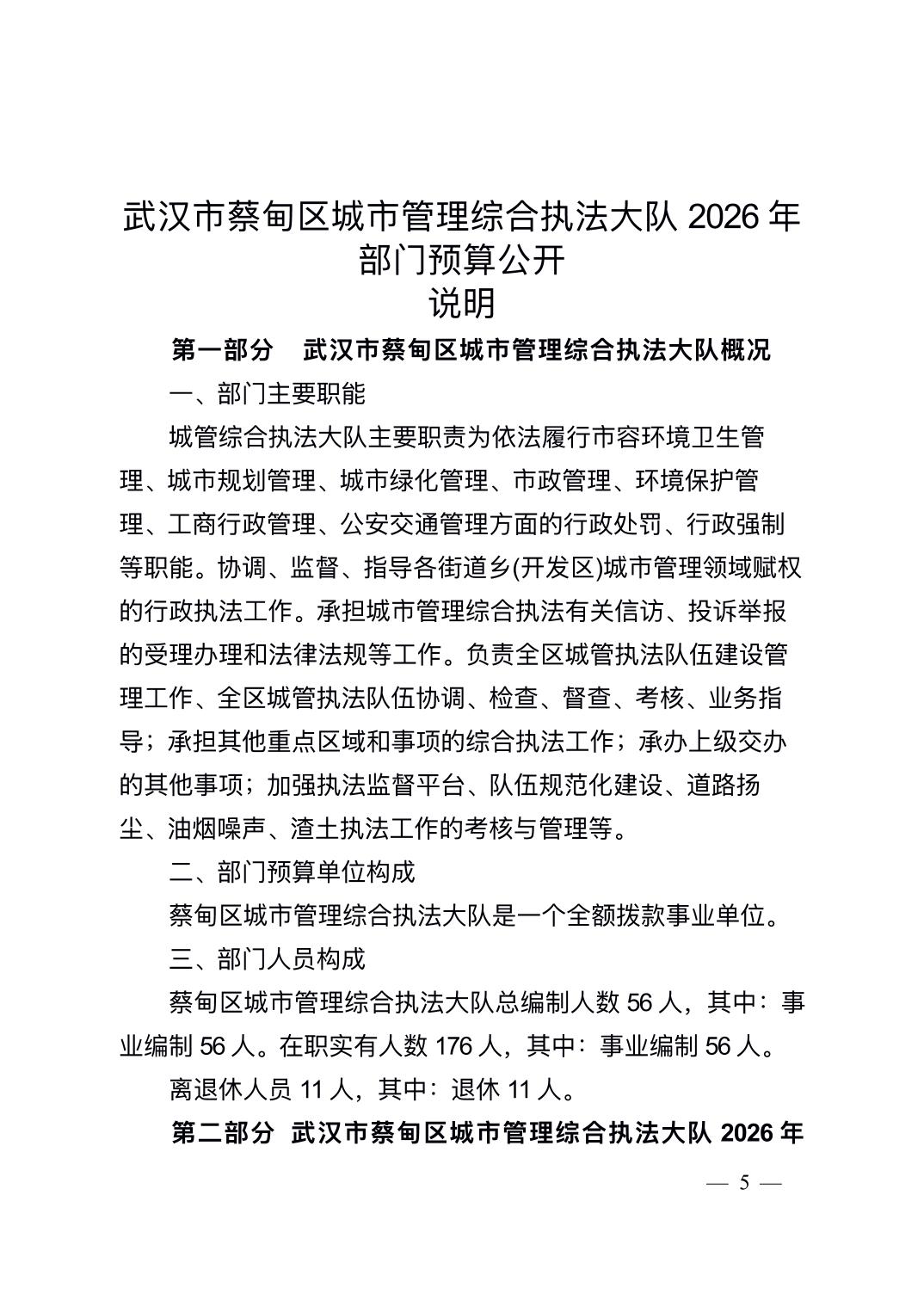 2026年武汉市蔡甸区城市管理综合执法大队部门预算公开