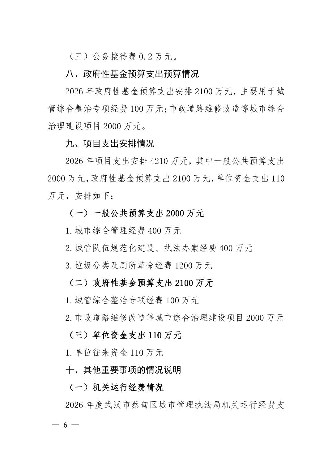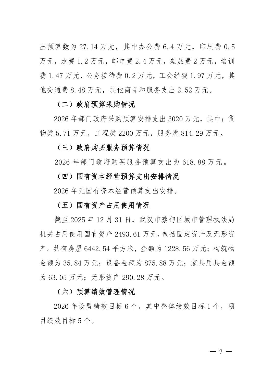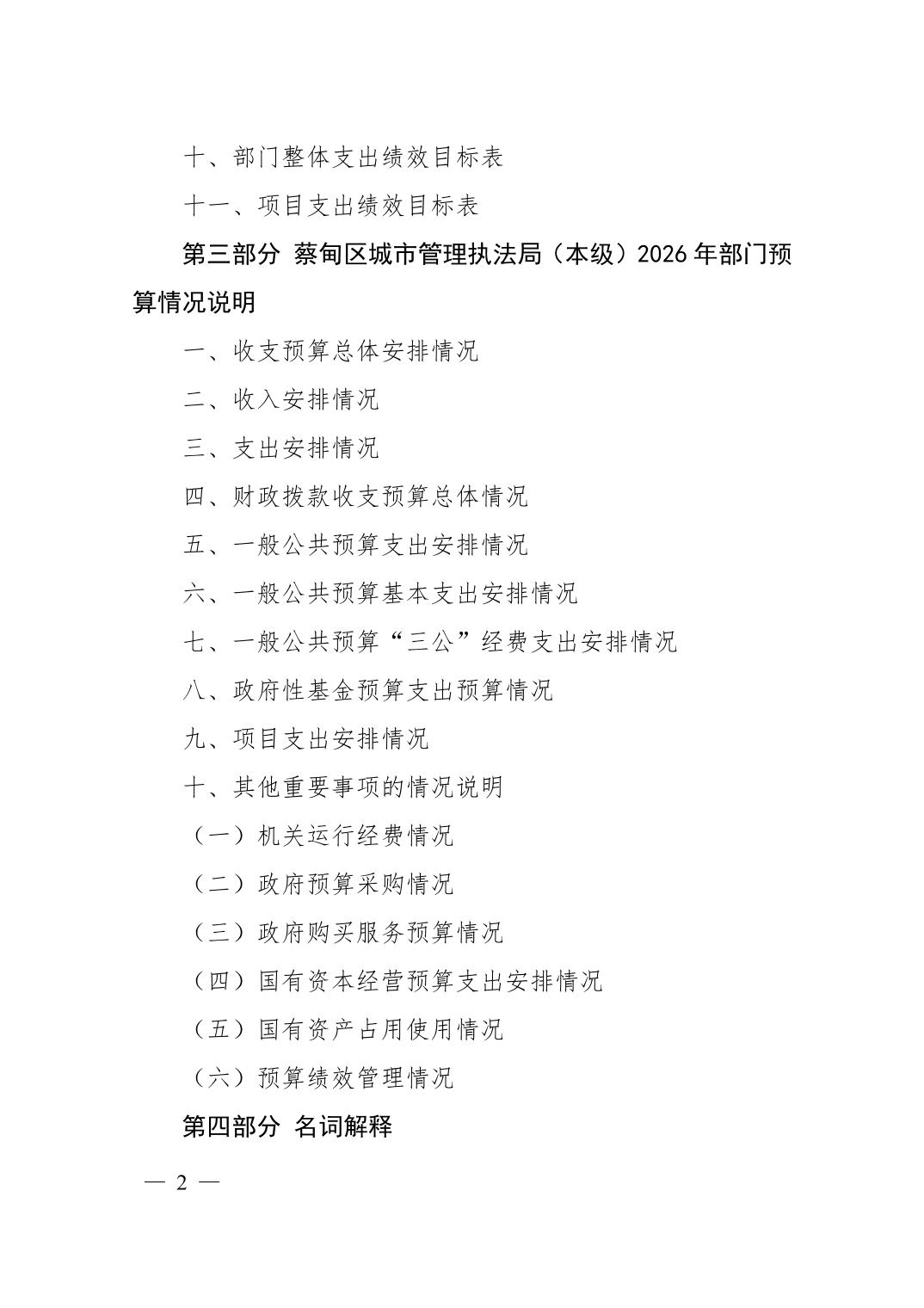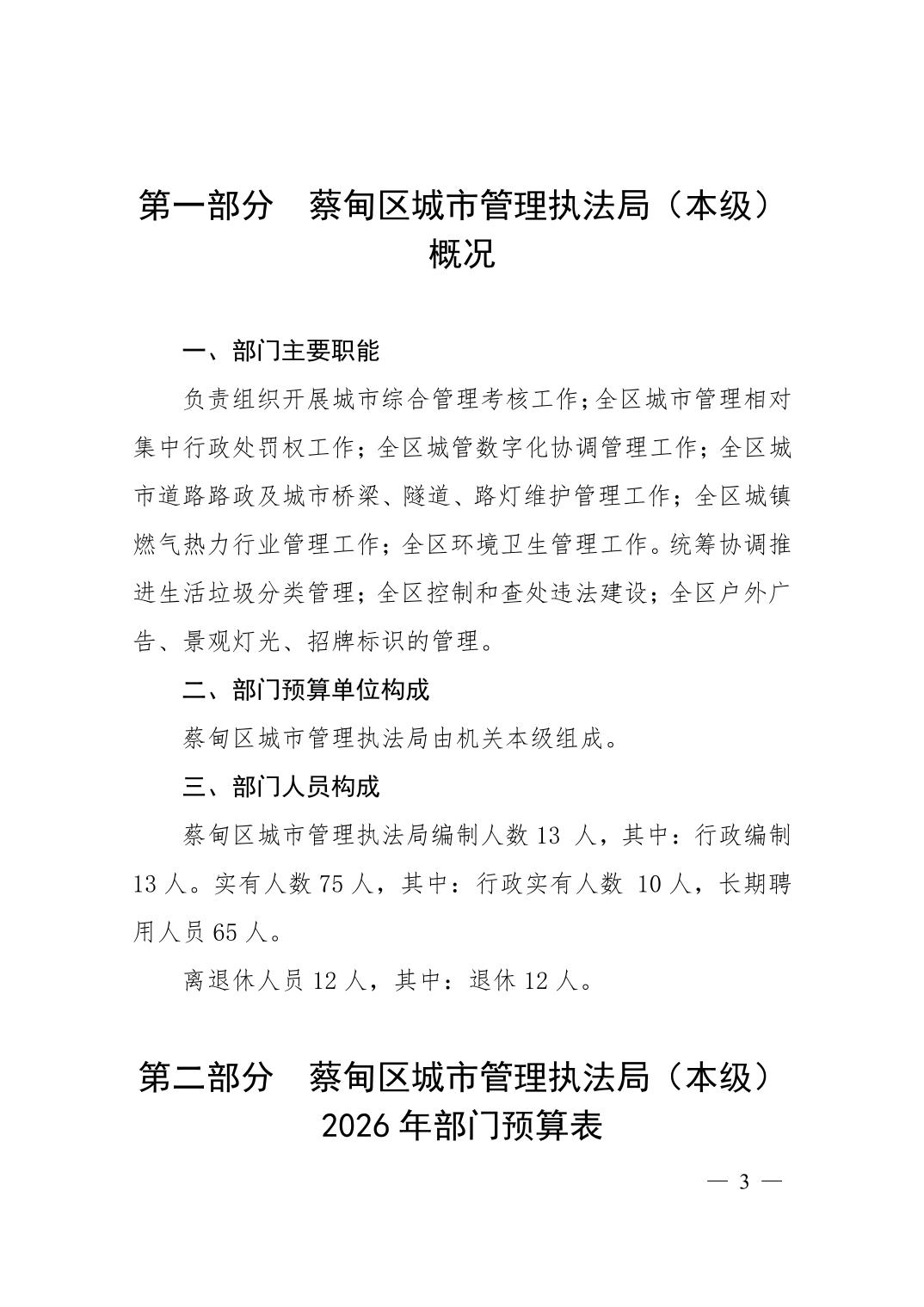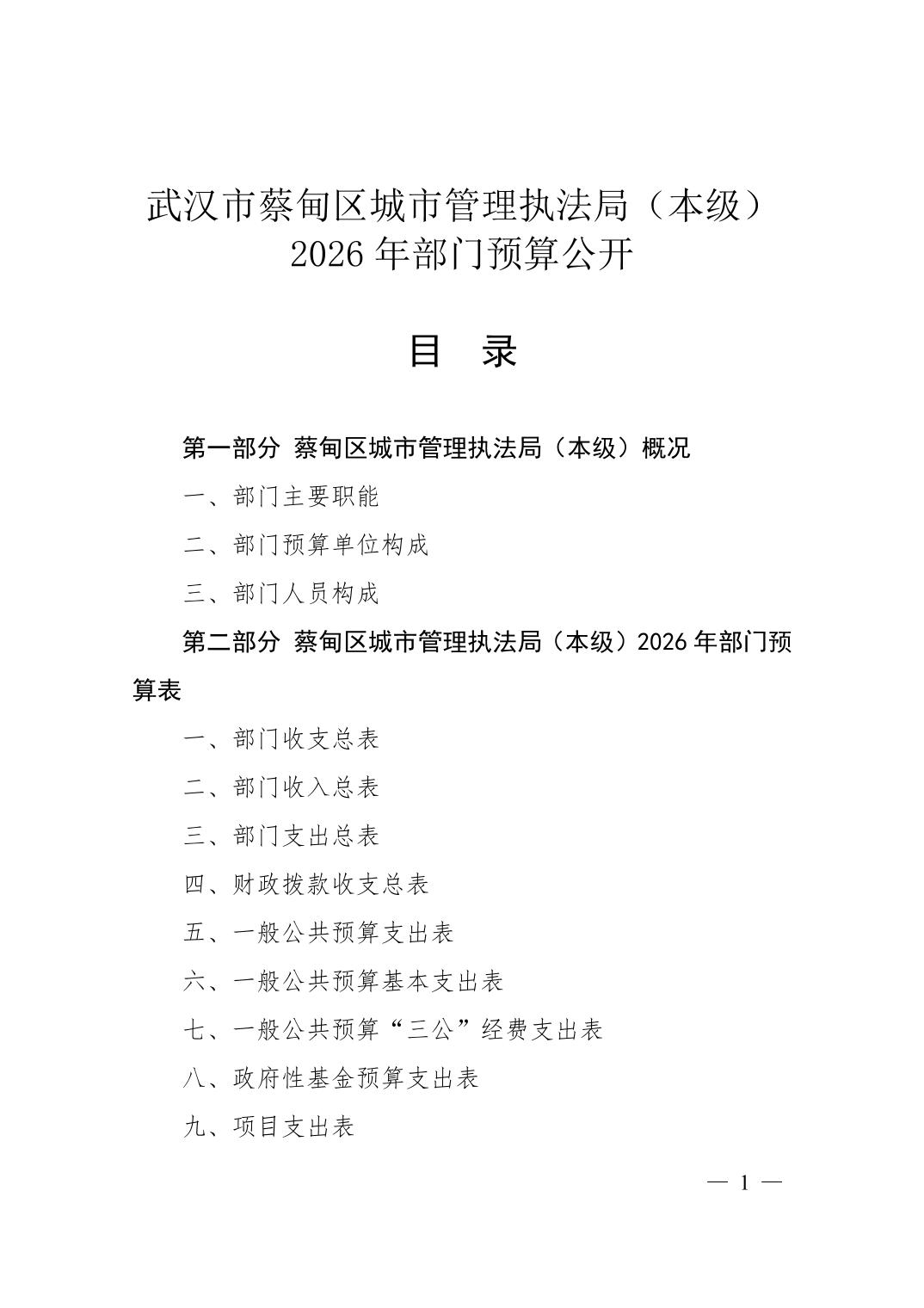 武汉市蔡甸区城市管理执法局(本级)2026年部门预算公开