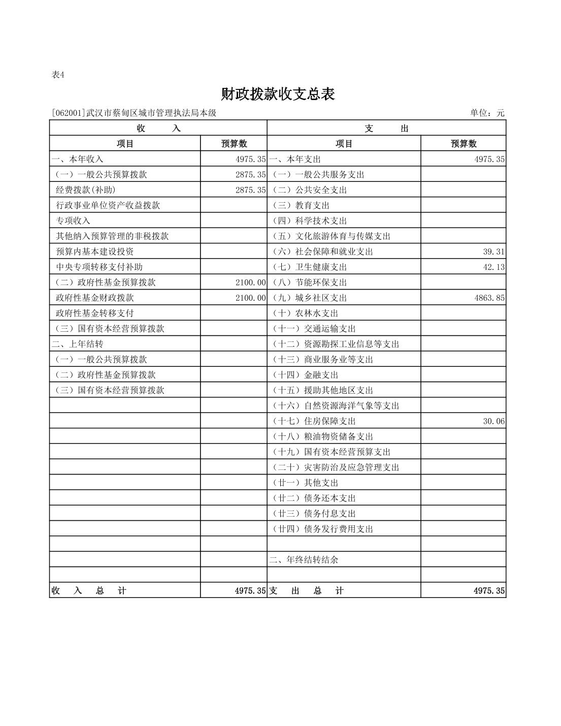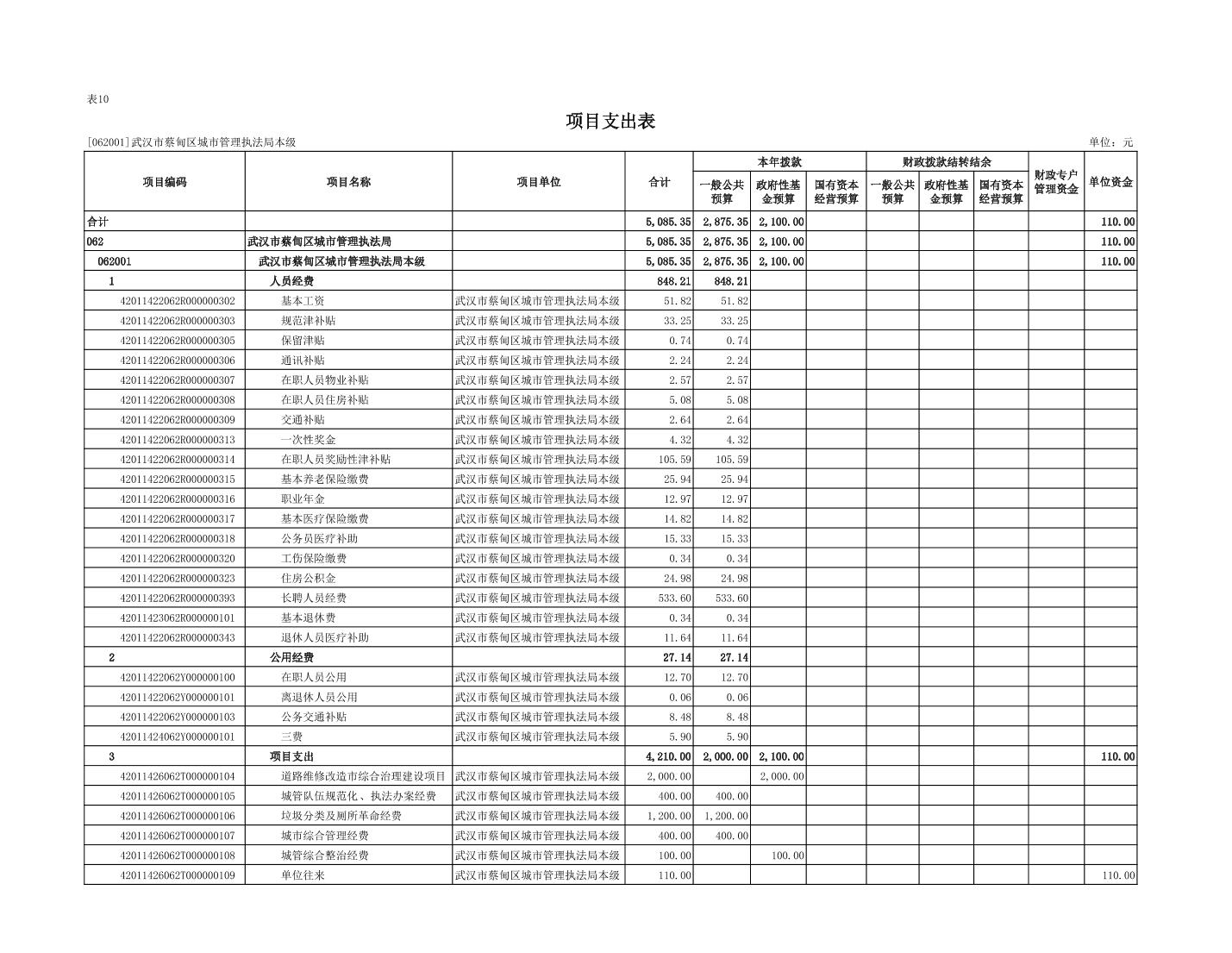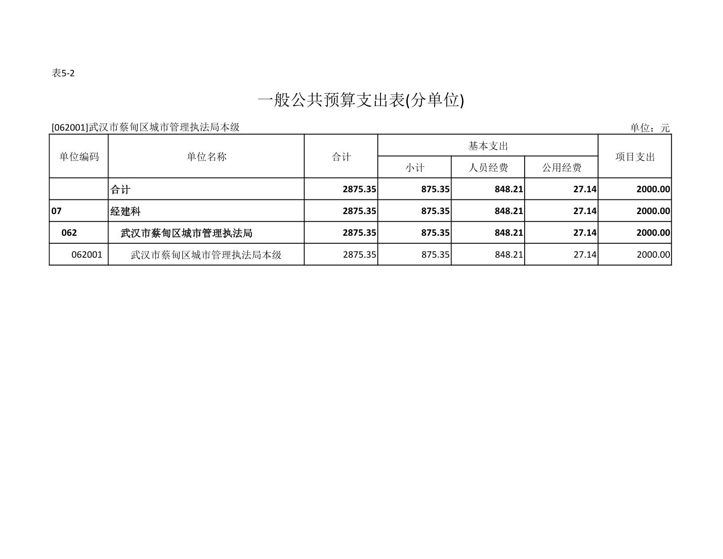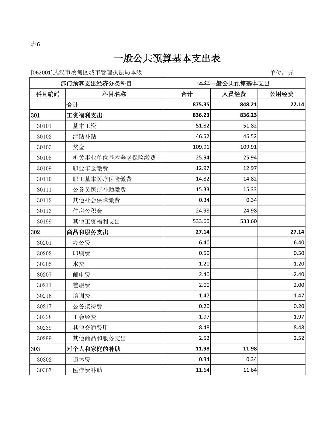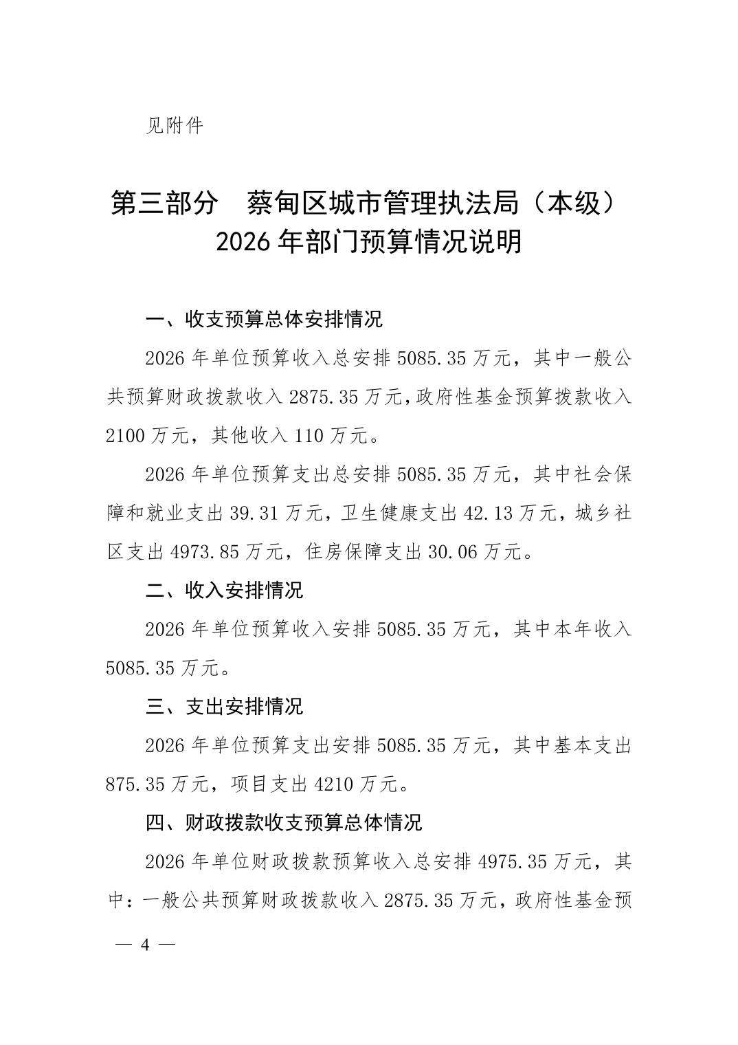 武汉市蔡甸区城市管理执法局(本级)2026年部门预算公开