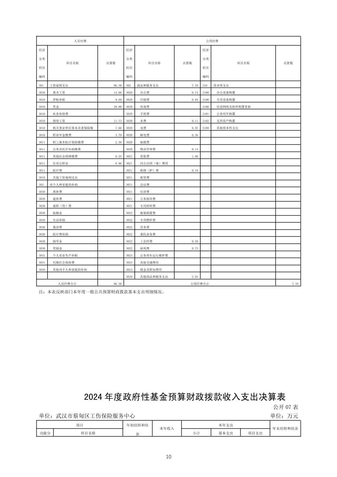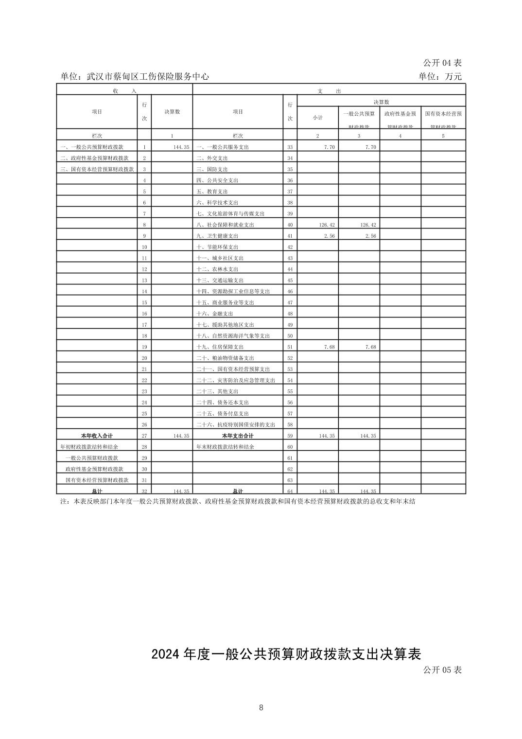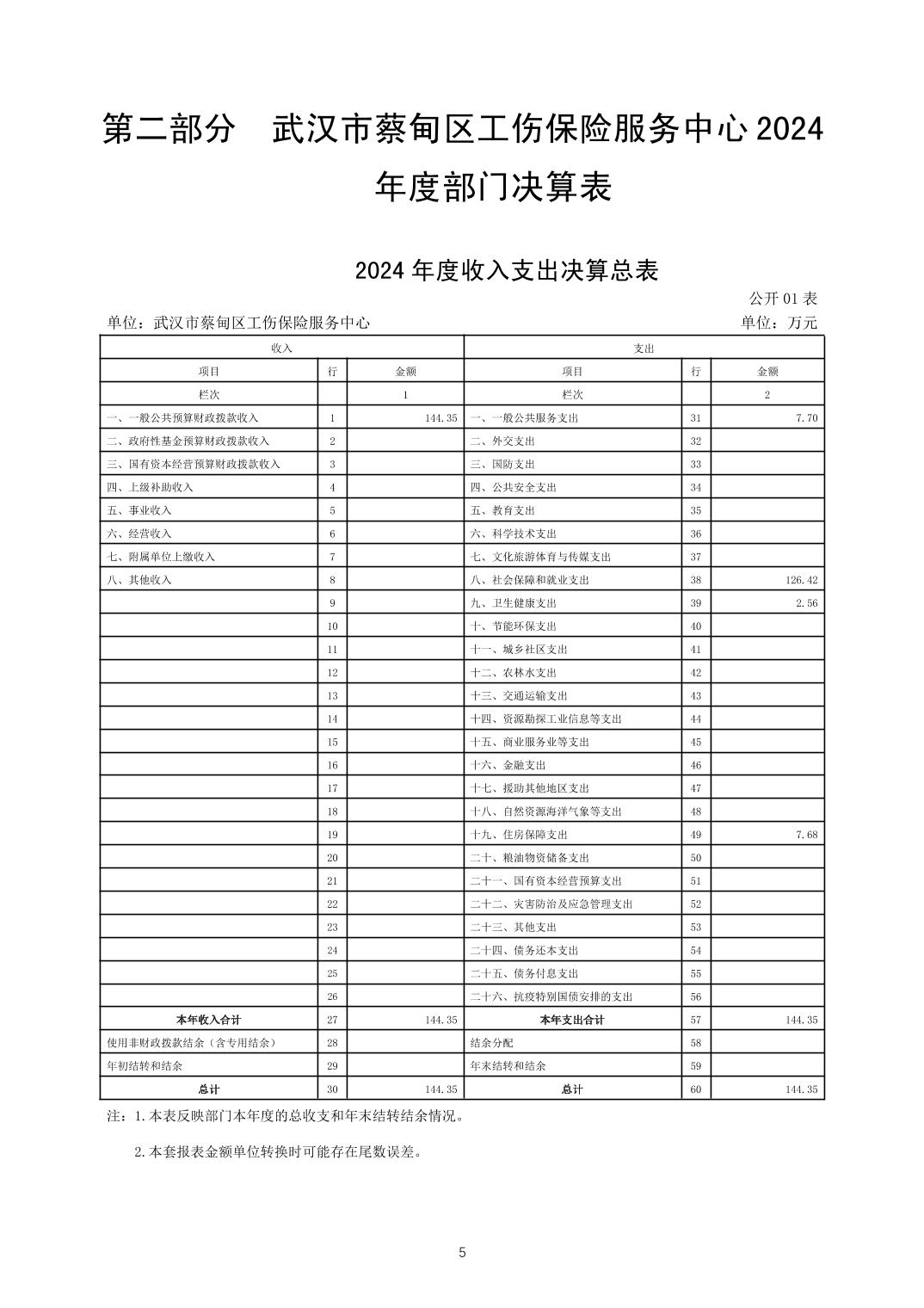 2024年武汉市蔡甸区工伤保险服务中心2024年度部门决算公开文件(武汉市)