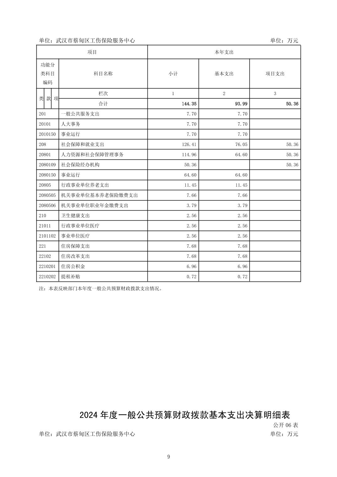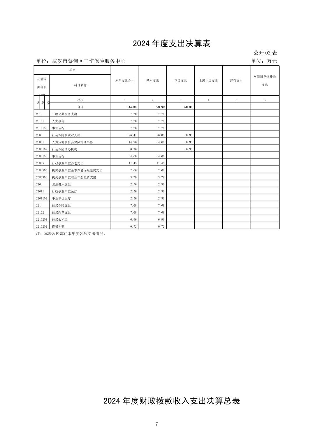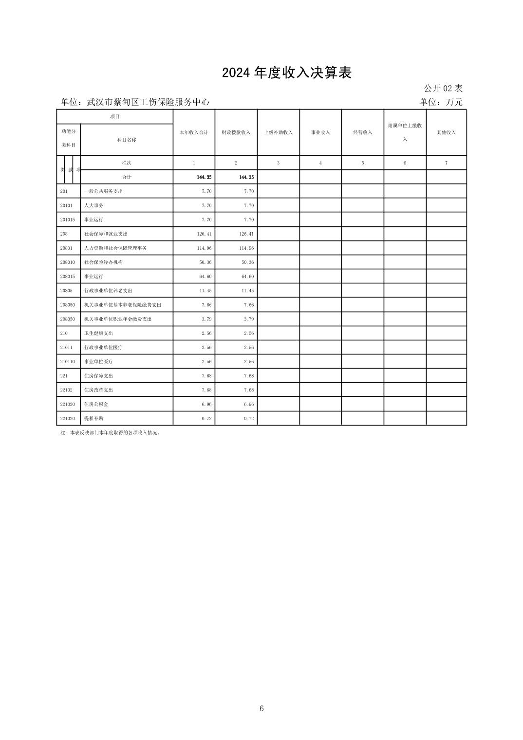 2024年武汉市蔡甸区工伤保险服务中心2024年度部门决算公开文件(武汉市)