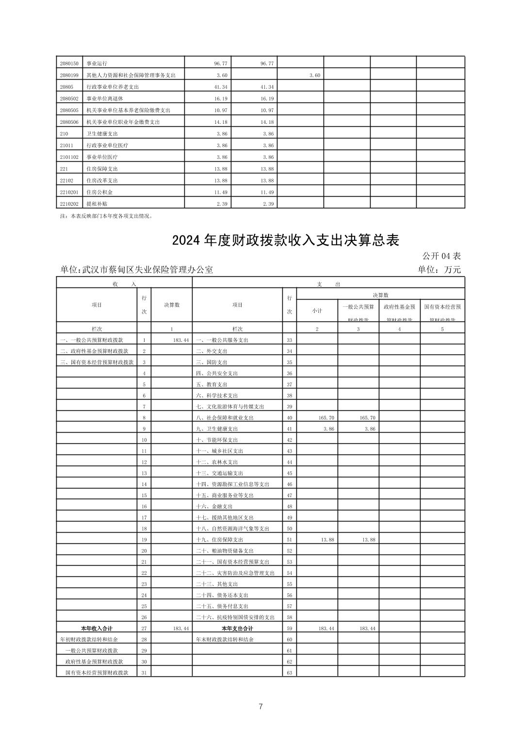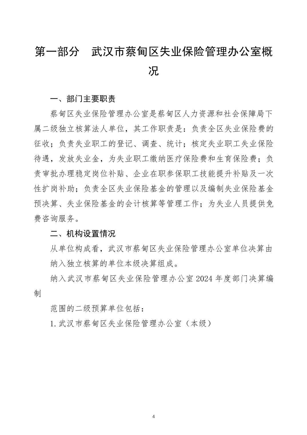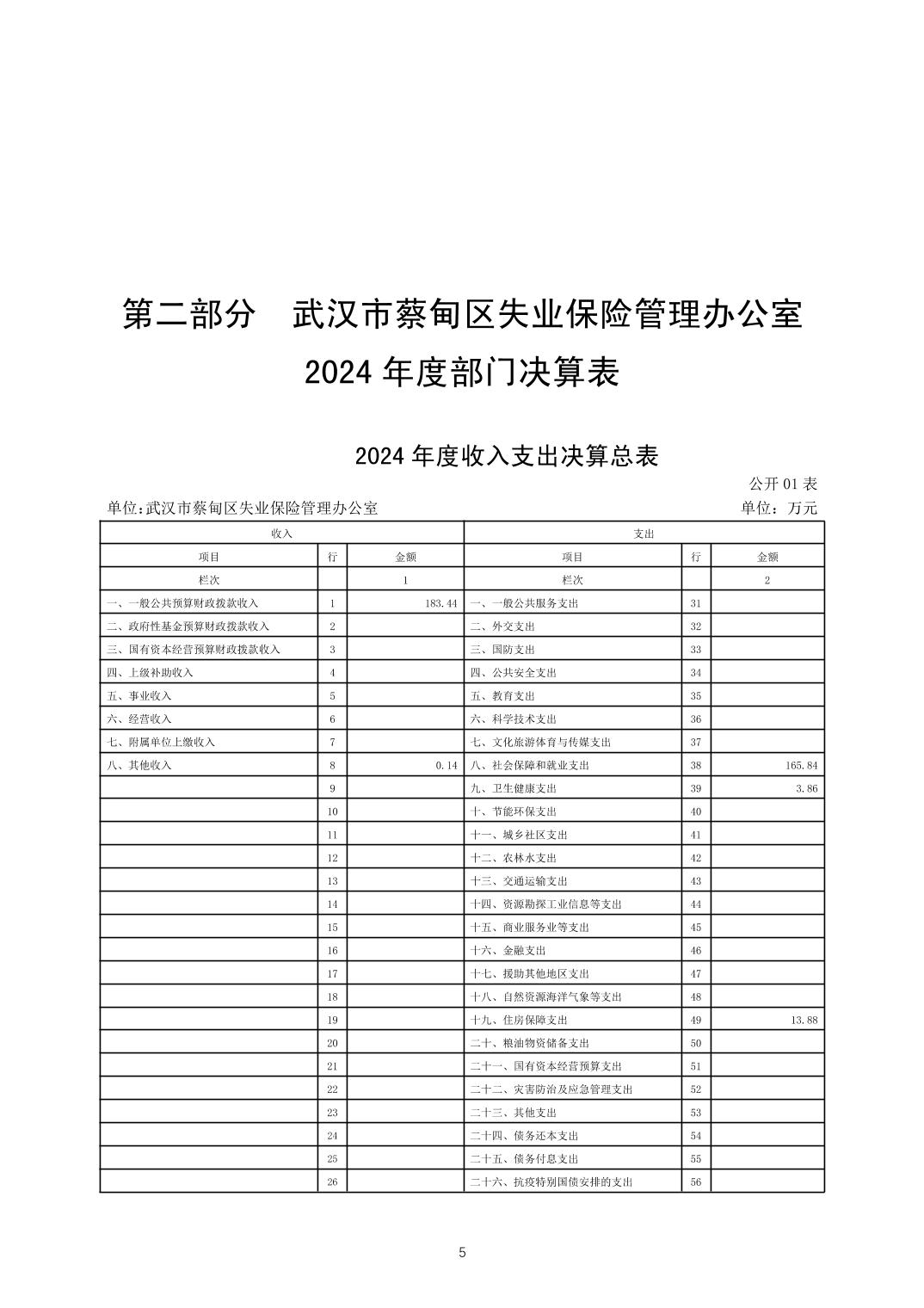 武汉市蔡甸区失业保险管理办公室2024年2024年度部门决算公开文件(武汉市)【 失业办】
