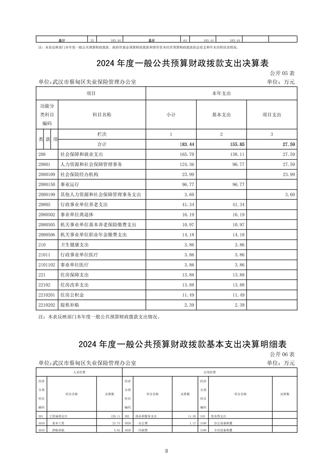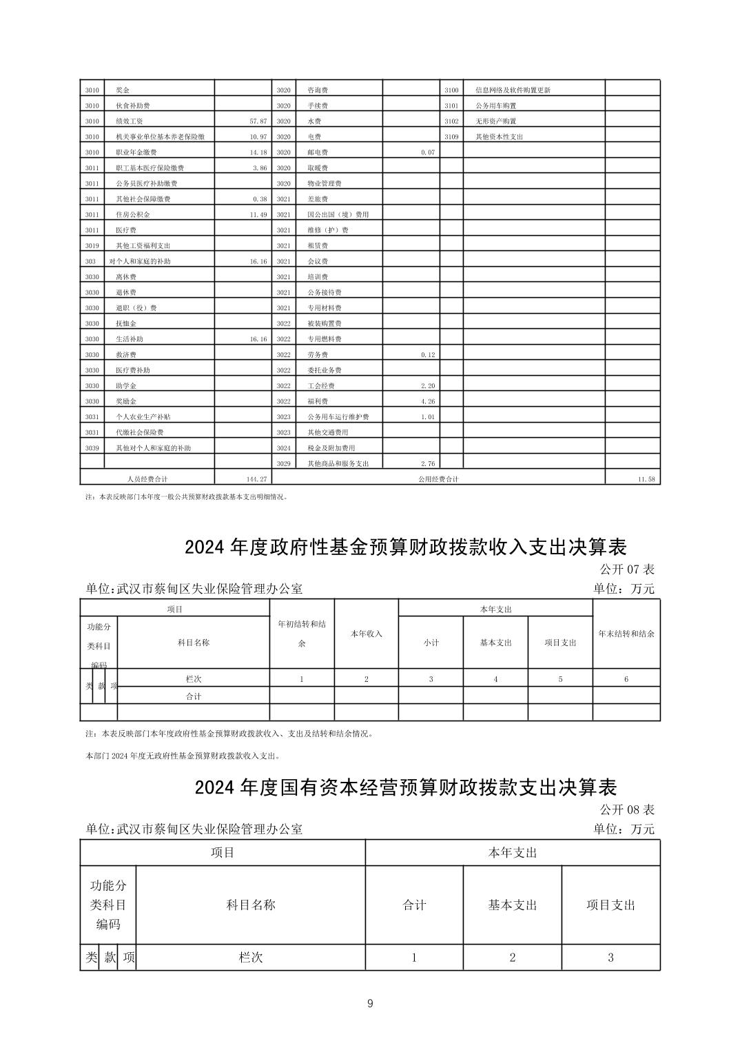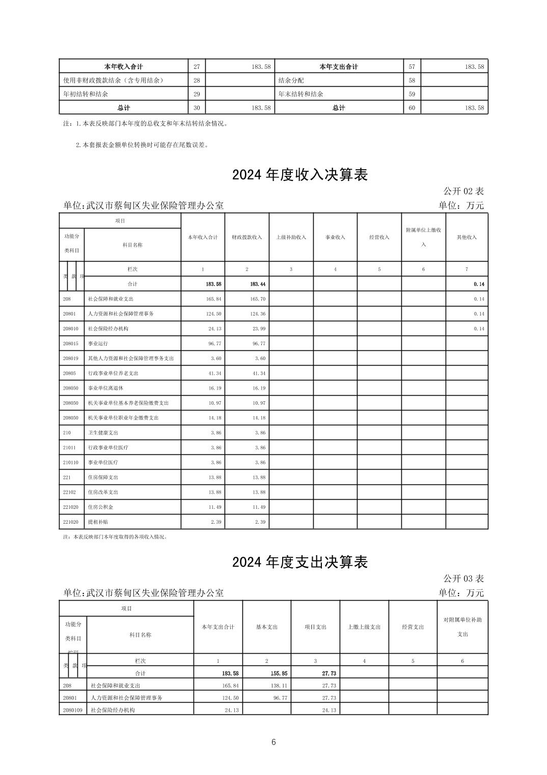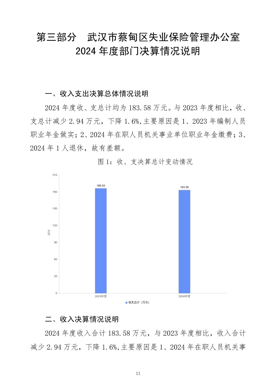 武汉市蔡甸区失业保险管理办公室2024年2024年度部门决算公开文件(武汉市)【 失业办】