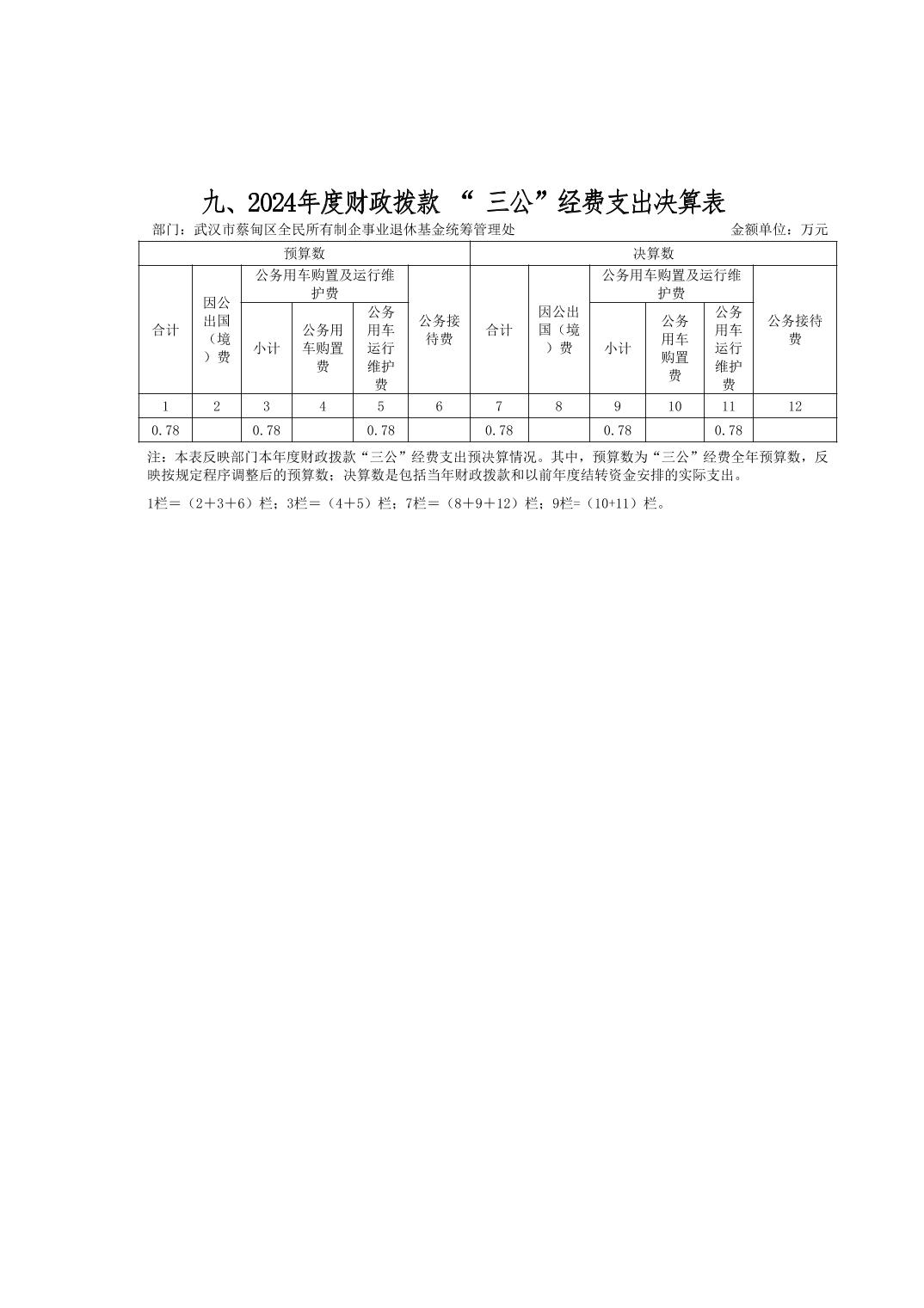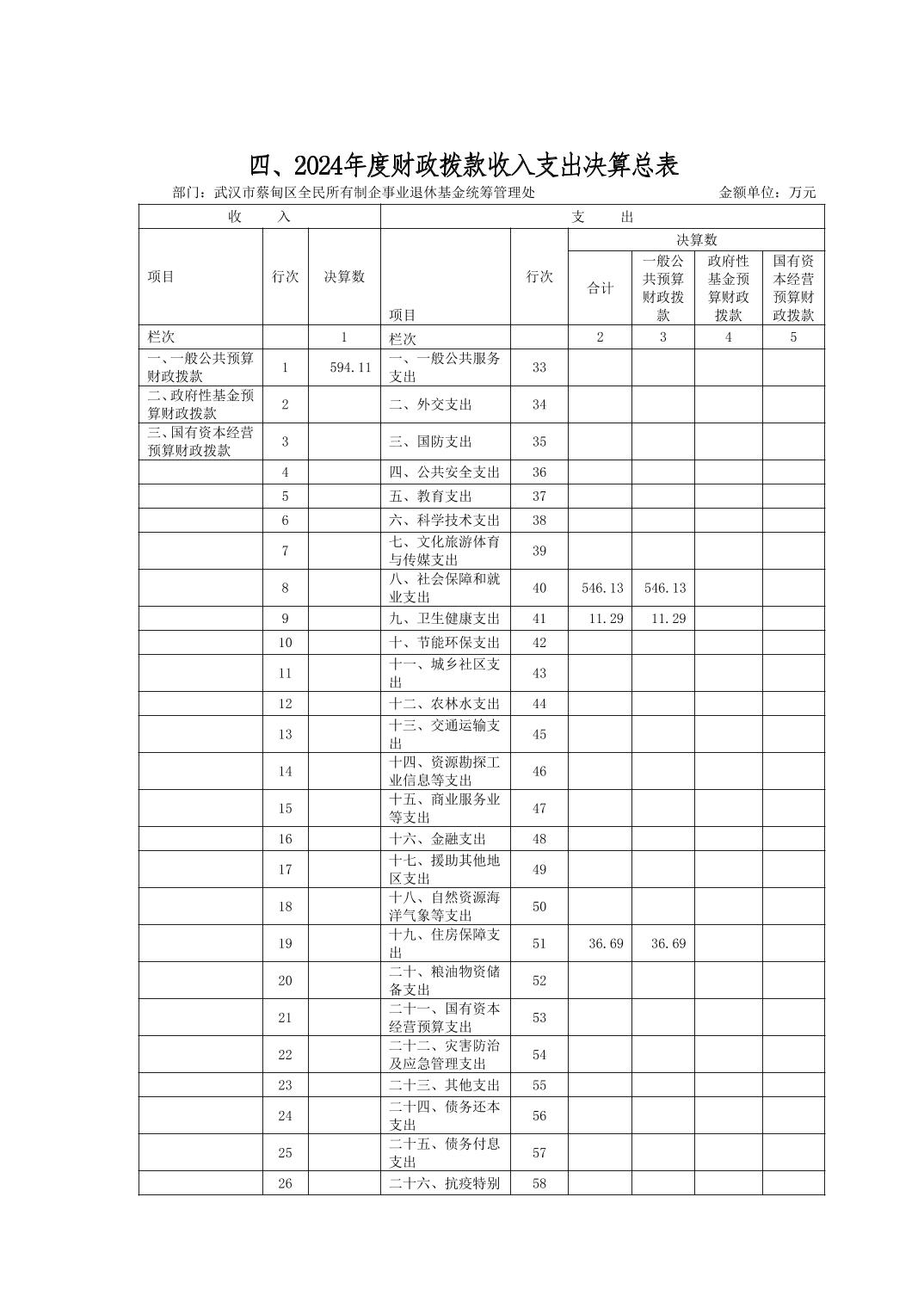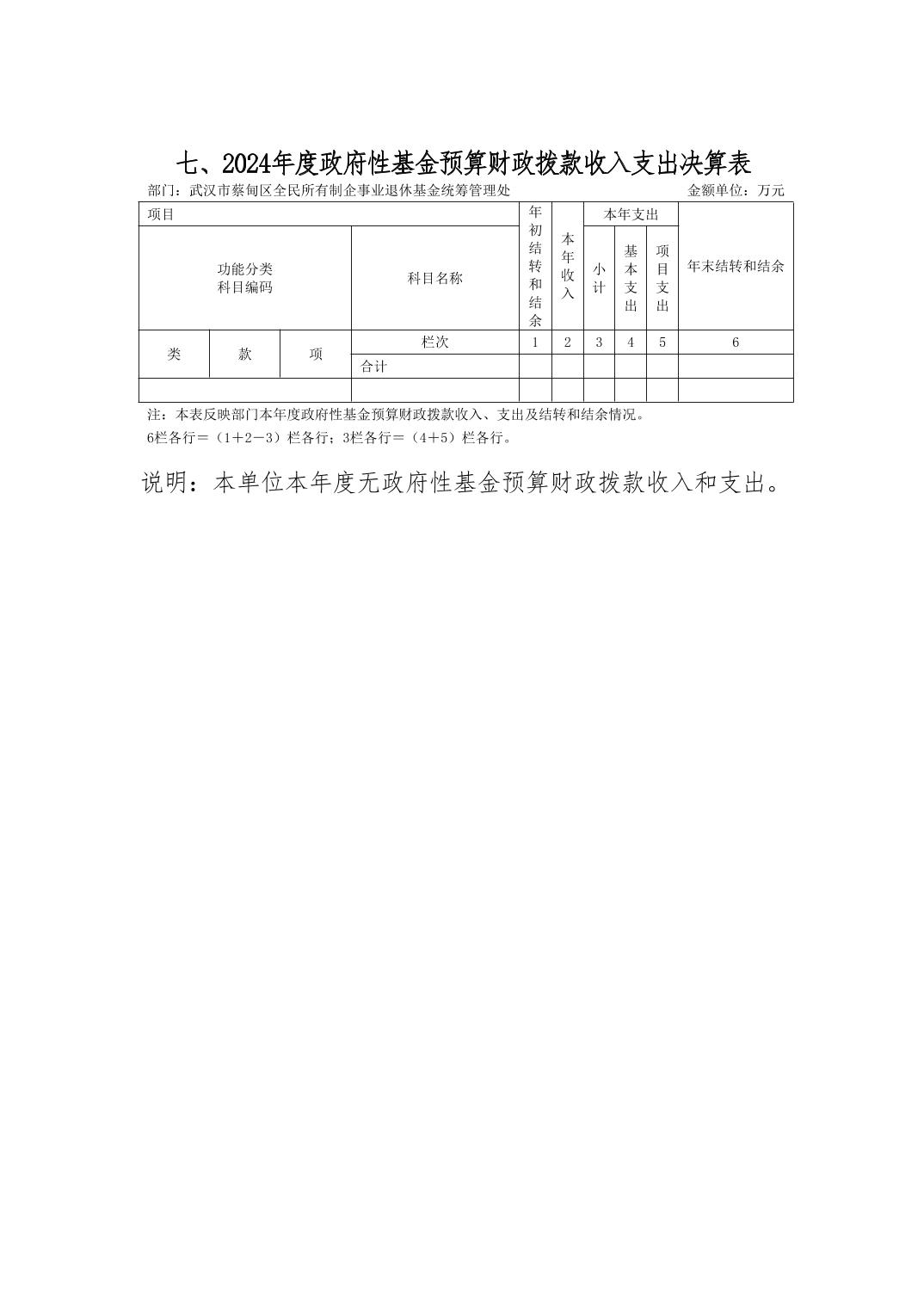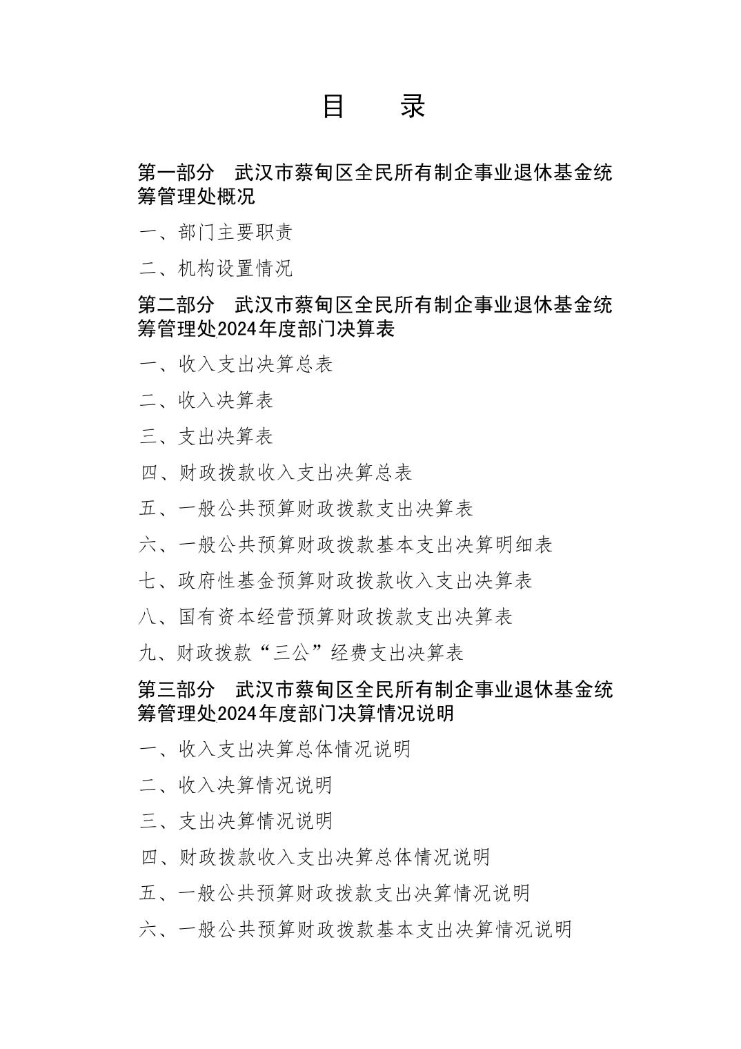 武汉市蔡甸区全民所有制企事业退休基金统筹管理处2024年决算公开文字报告