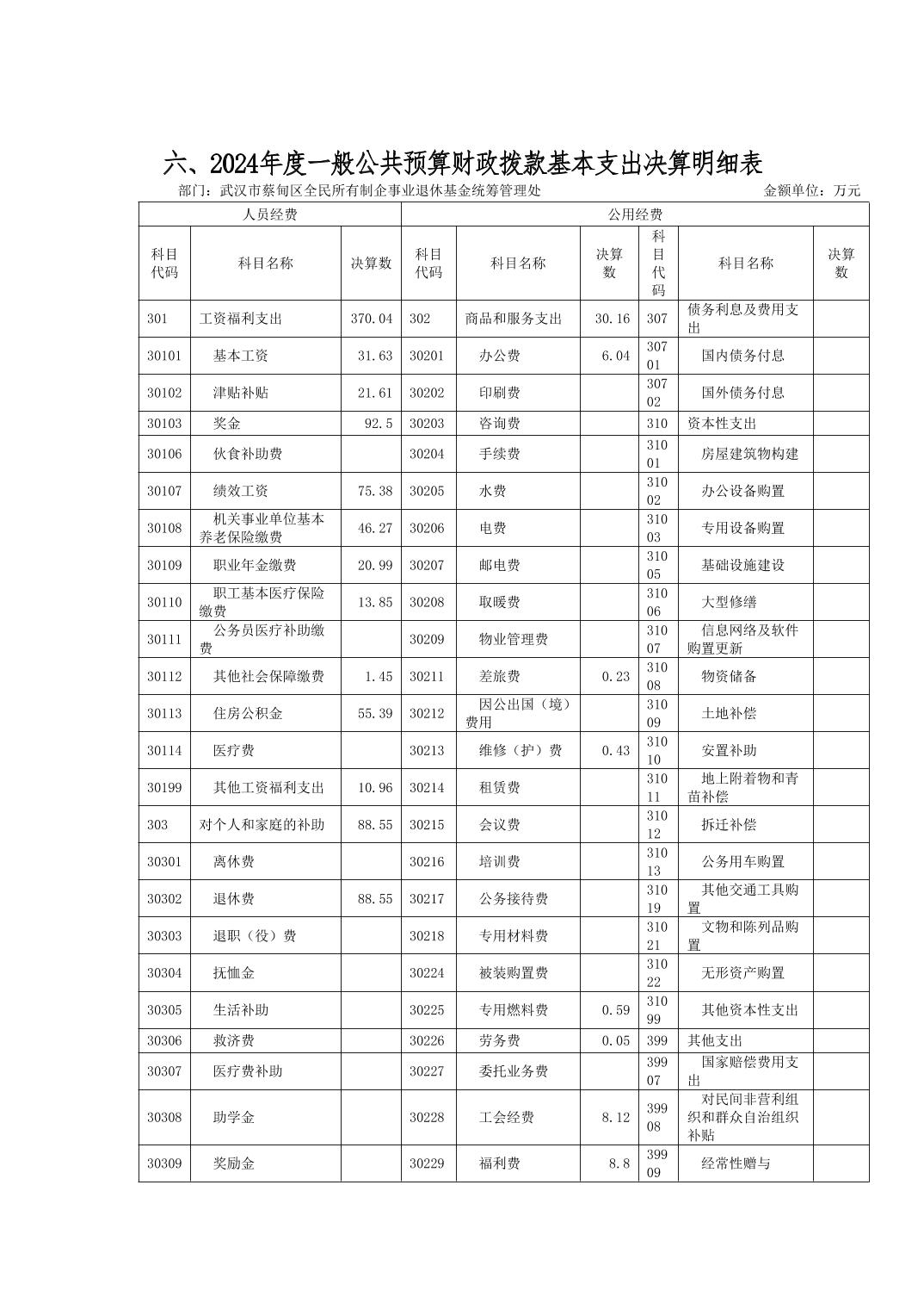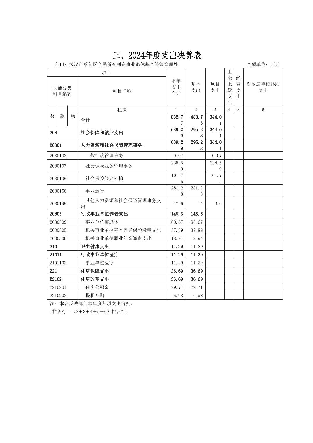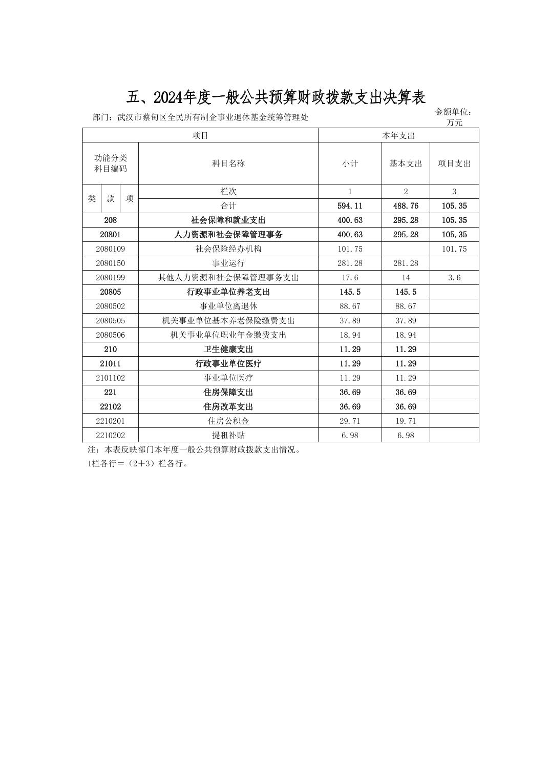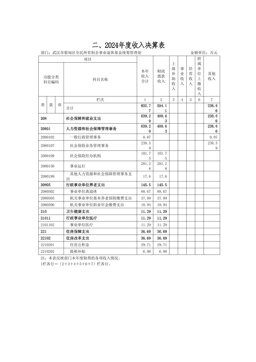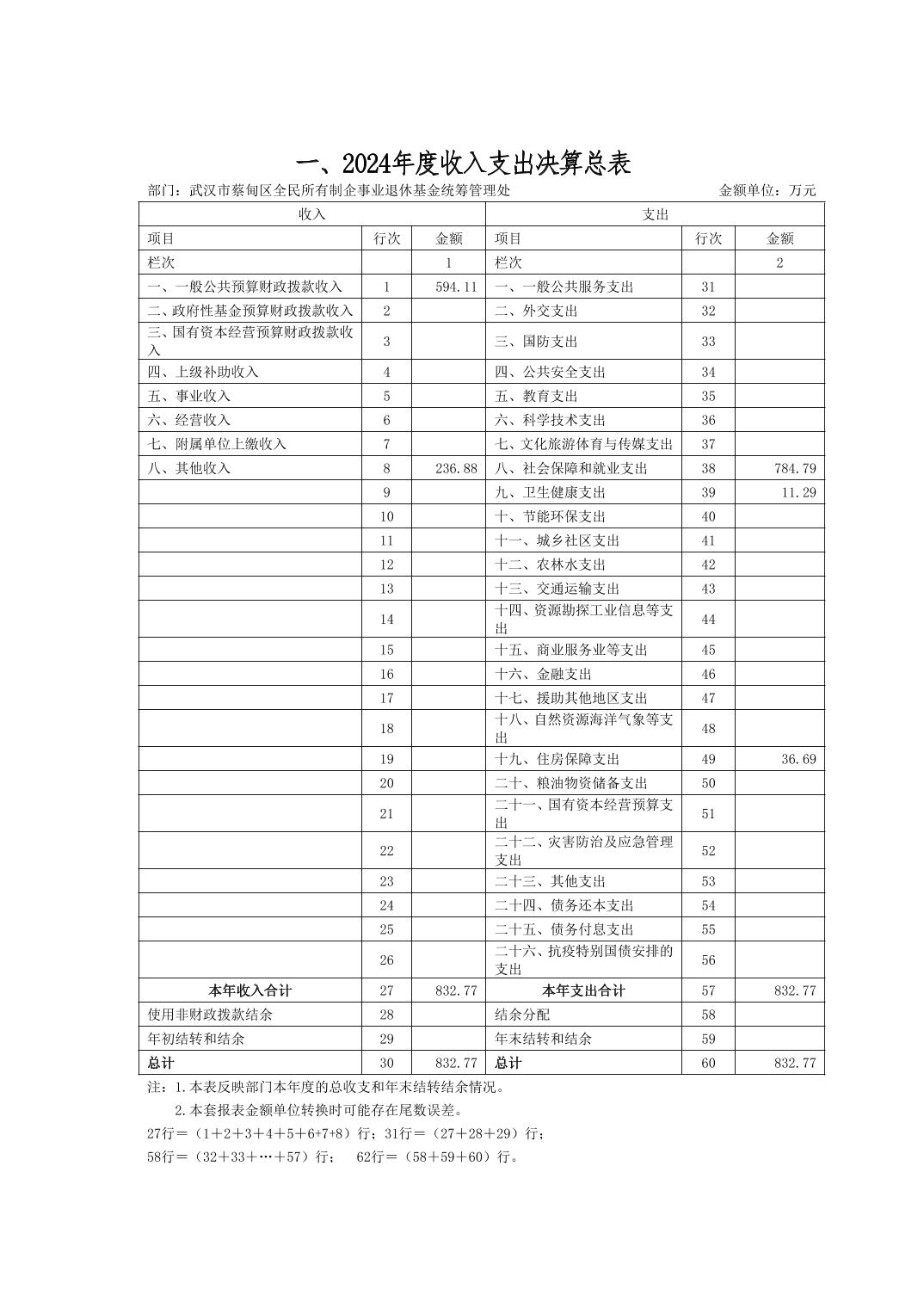 武汉市蔡甸区全民所有制企事业退休基金统筹管理处2024年决算公开文字报告