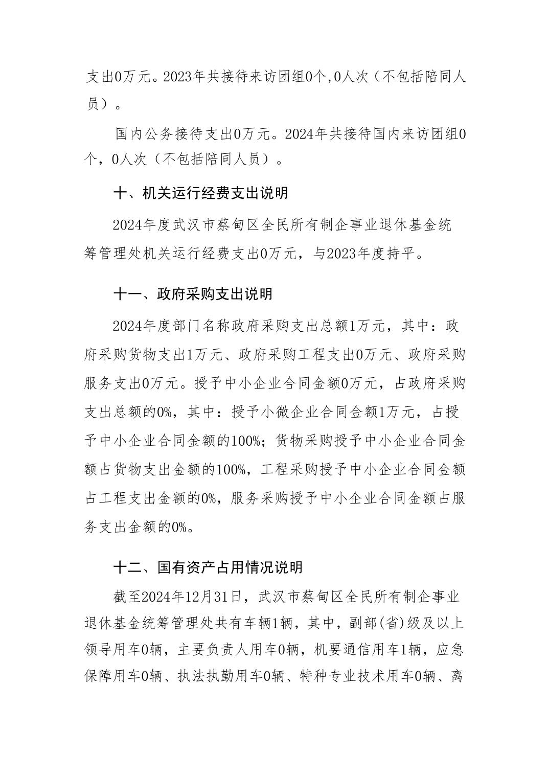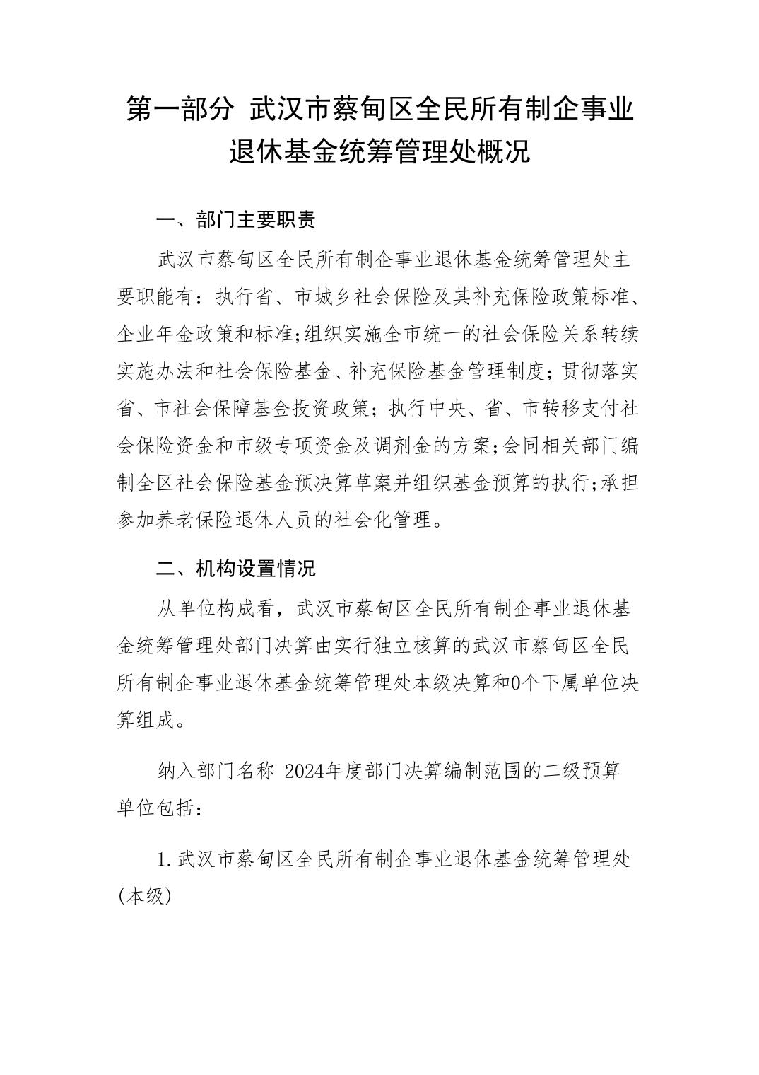 武汉市蔡甸区全民所有制企事业退休基金统筹管理处2024年决算公开文字报告.pdf