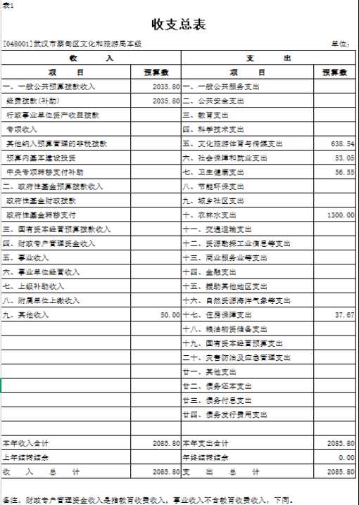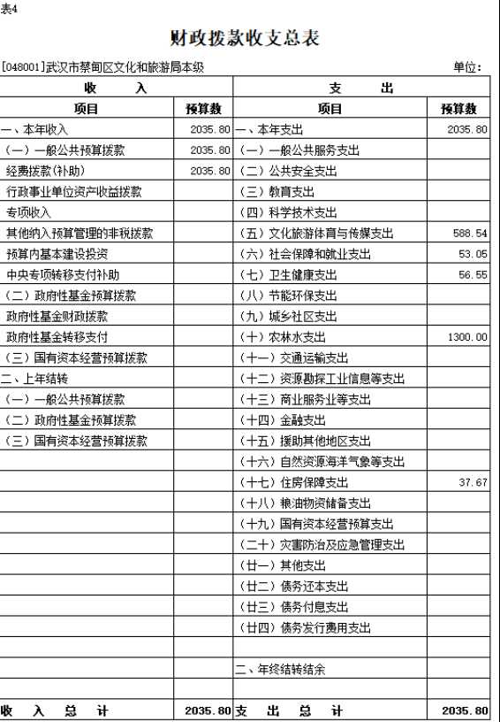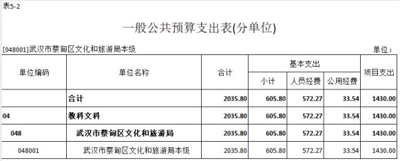 武汉市蔡甸区文化和旅游局2026年预算公开