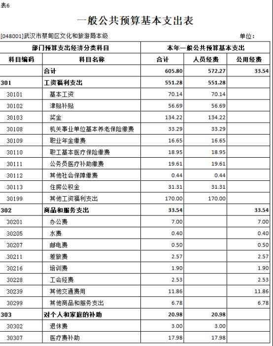 2026年一般公共预算基本支出605.8万元,其中人员经费6万元,公用经费33.54万元。人员经费主要包括工资福利支出类605.8万元,商品和服务支出33.54万元,对个人和家庭的补助20.98万元。