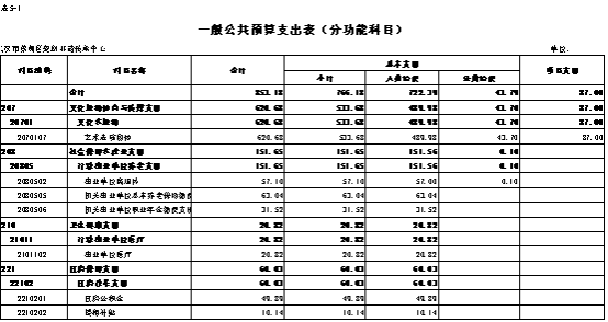 2026年部门预算总支出1271.94万元,其中:一般公共预算总支出853.18万元,主要包括文化旅游体育与传媒支出基本支出620.68万元(其中艺术表演团体支出含人员经员和公用经费533.68万元,项目支出87万元),社会保障和就业支出151.65万元,卫生健康支出20.82万元,住房保障支出60.03万元,单位离退休支出57.1万元。