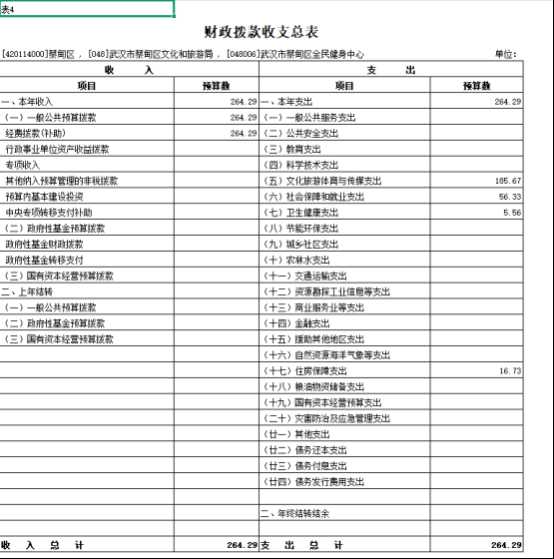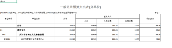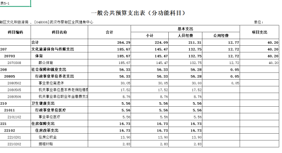 2026年一般公共预算总支出264.29万元,主要包括文化旅游体育与传媒支出基本支出195.67万元,社会保障和就业支出56.33万元,医疗卫生健康支出5.56万元,住房保障支出16.73万元。