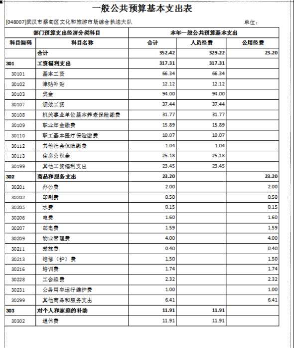 武汉市蔡甸区文化和旅游市场综合执法大队2026年预算公开